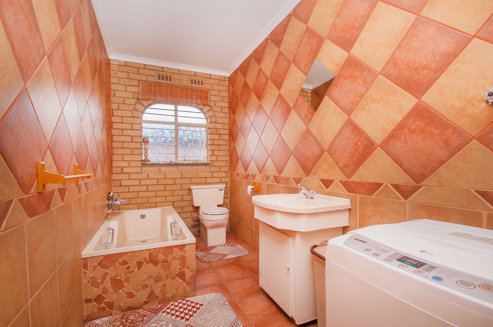 Second bathroom offers a bath and dedicated space for a washing machine