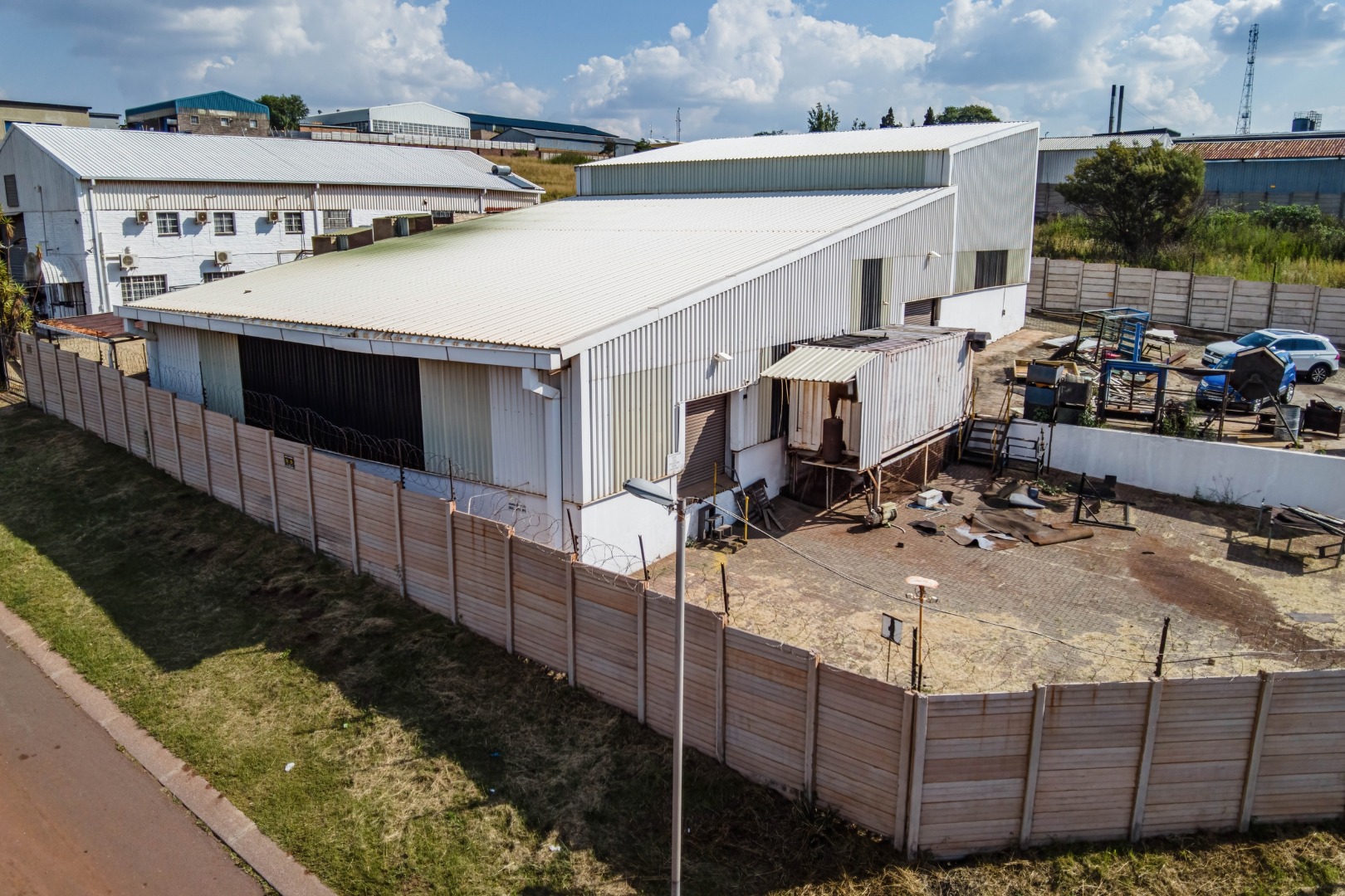 Situated on a large ±2,154m² corner stand, the property offers excellent accessibility with multiple entrance gates and well-designed yard space, making it ideal for manufacturing, engineering, logistics, or warehousing operations.