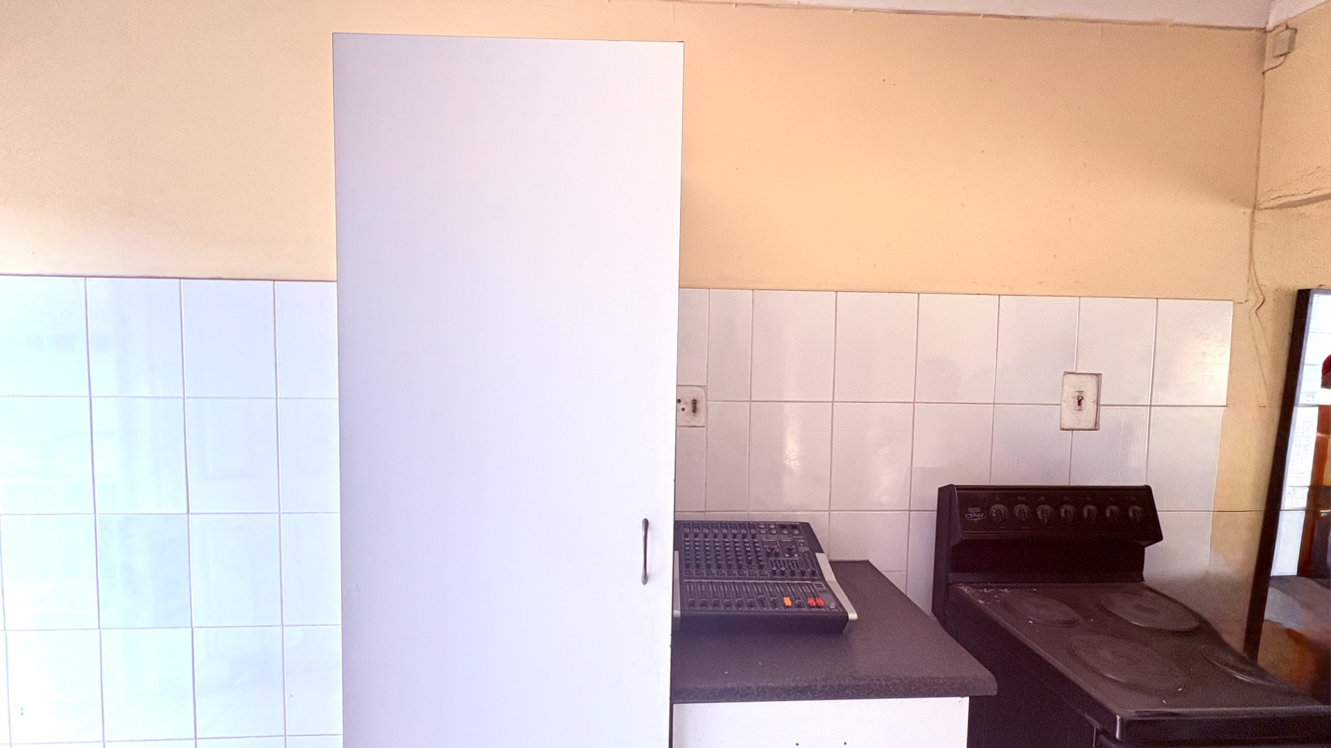 Inside, this 67 sqm apartment comprises two bedrooms, one bathroom, a functional kitchen, and a lounge area. The kitchen is equipped with an electric stove and oven, complemented by a tiled backsplash, though it requires modernization and repair. The lounge and hallway feature durable tiled flooring, with the lounge benefiting from natural light through a large window. The two bedrooms offer private spaces, while the single bathroom serves the unit. Both areas, consistent with the property's current condition, present an opportunity for a complete refresh to enhance comfort and aesthetic appeal.