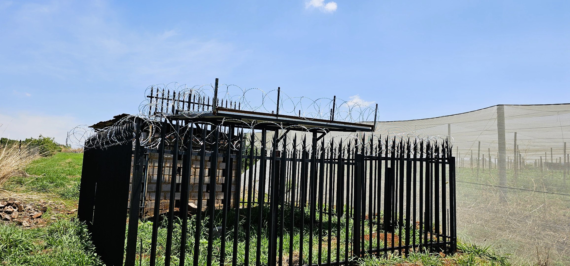 • Secure working zone with diamond mesh fencing and razor wire, enclosing the tunnels, barn, and ablutions for added protection of valuable crops and infrastructure