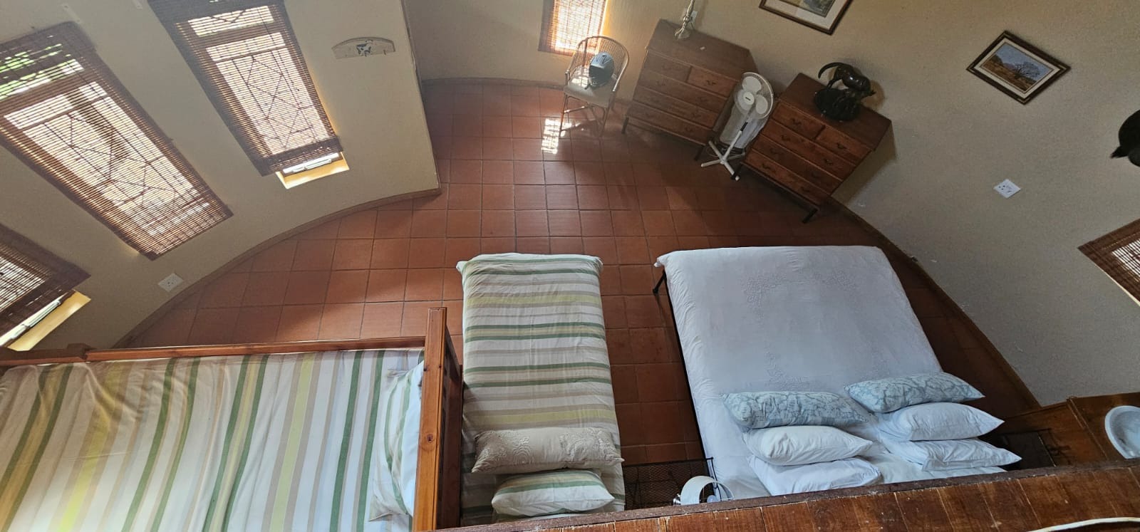 Attached to the main house is a second section featuring a double-volume open ceiling, with a ground-floor bedroom and bathroom and a loft bedroom above—ideal for family or guests.