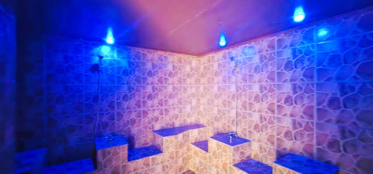 • Luxury spa with treatment rooms, bathrooms, office, patio, heated pool, rasul chamber, and floating bath.