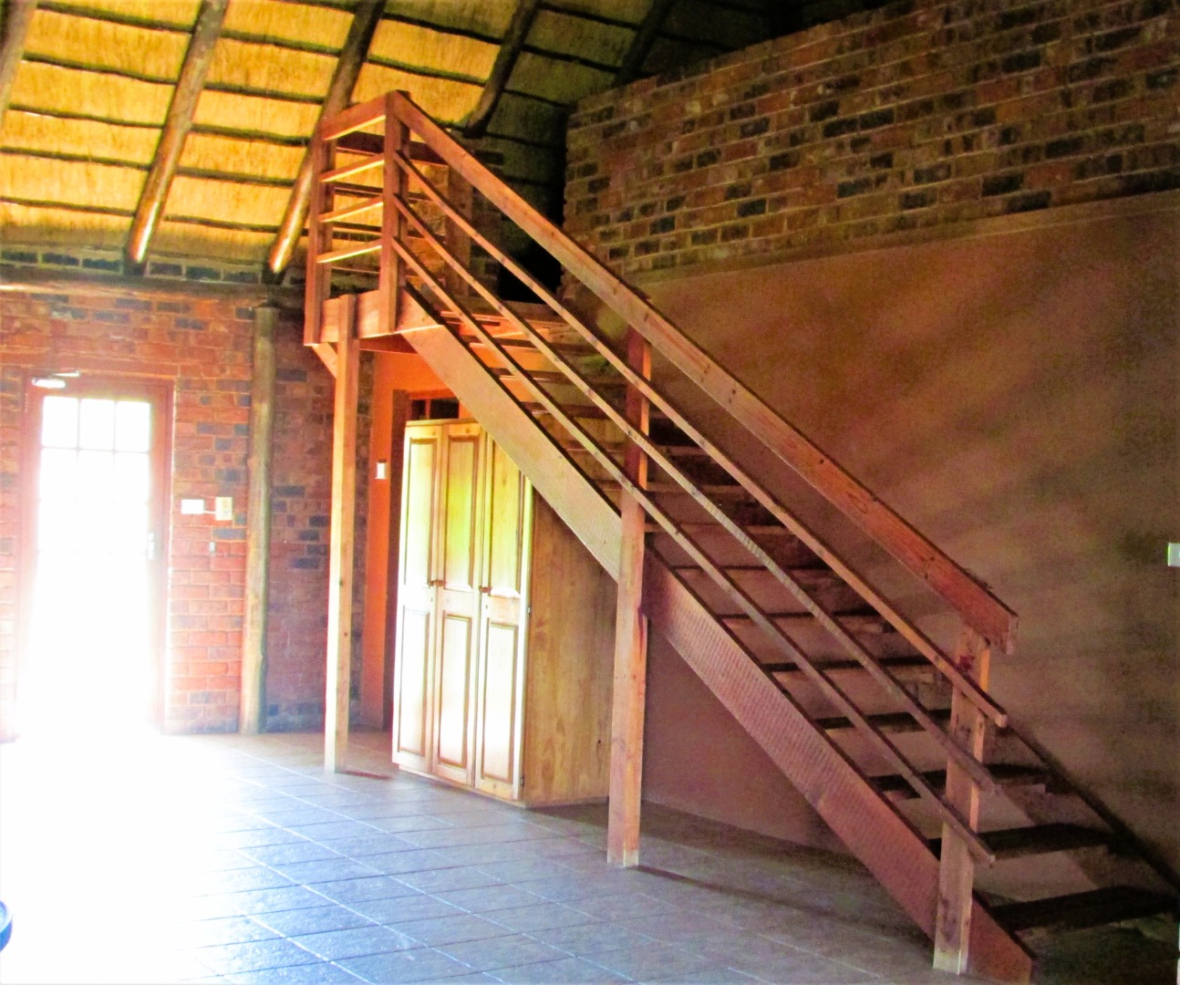 • Open-plan kitchen, dining, lounge & TV room with air-conditioning, sleeper wood cupboards, and gas stove.