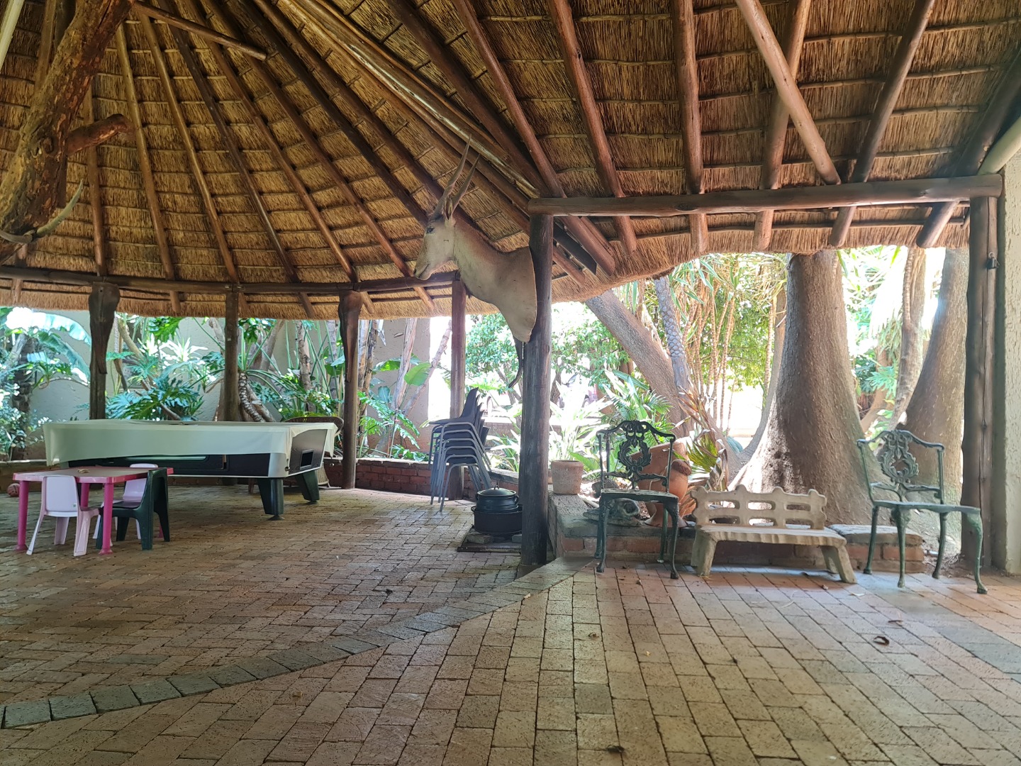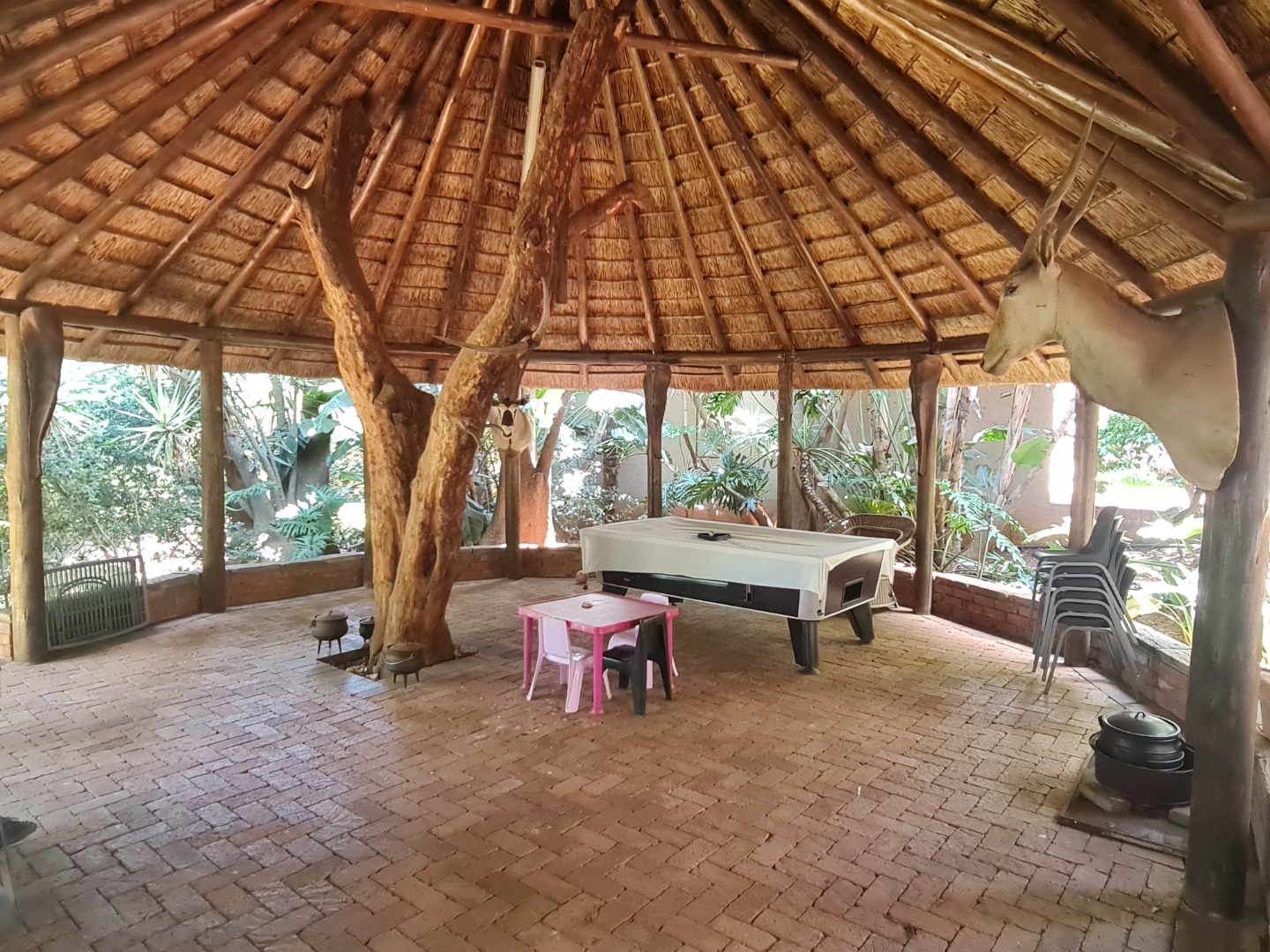 2 Thatch lapas, Sparkling pool and koi pond, Double automated garage and shaded carport for 4 cars