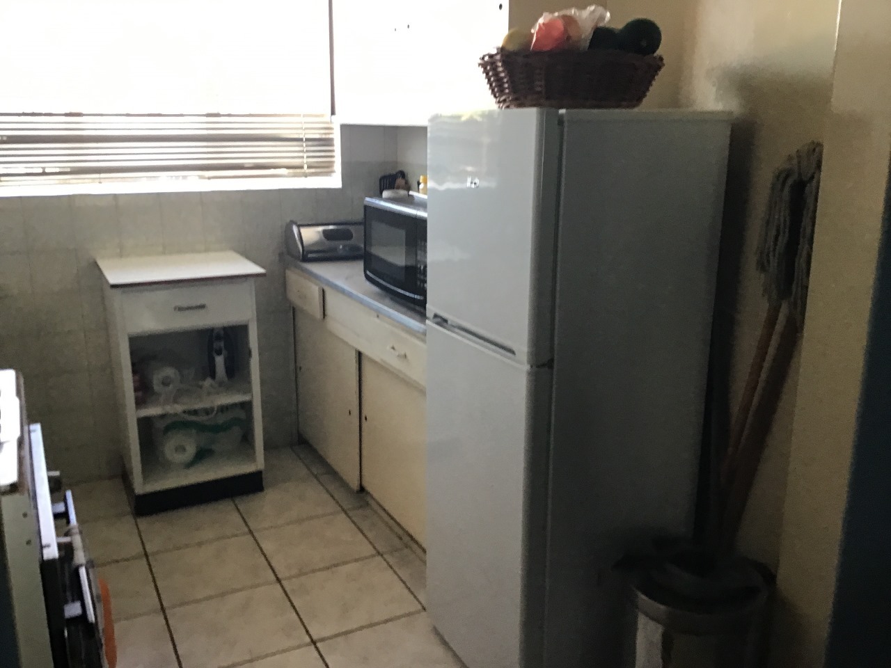 1 Bedroom with tiled floors and built in cupboards, Full Bathroom, Tiled Lounge and Kitchen with gas stove.