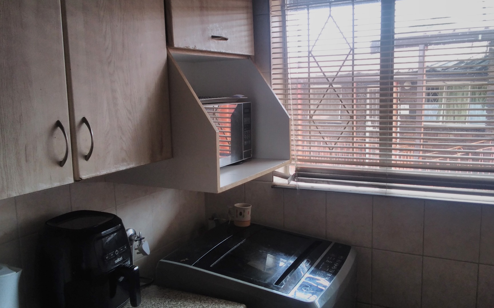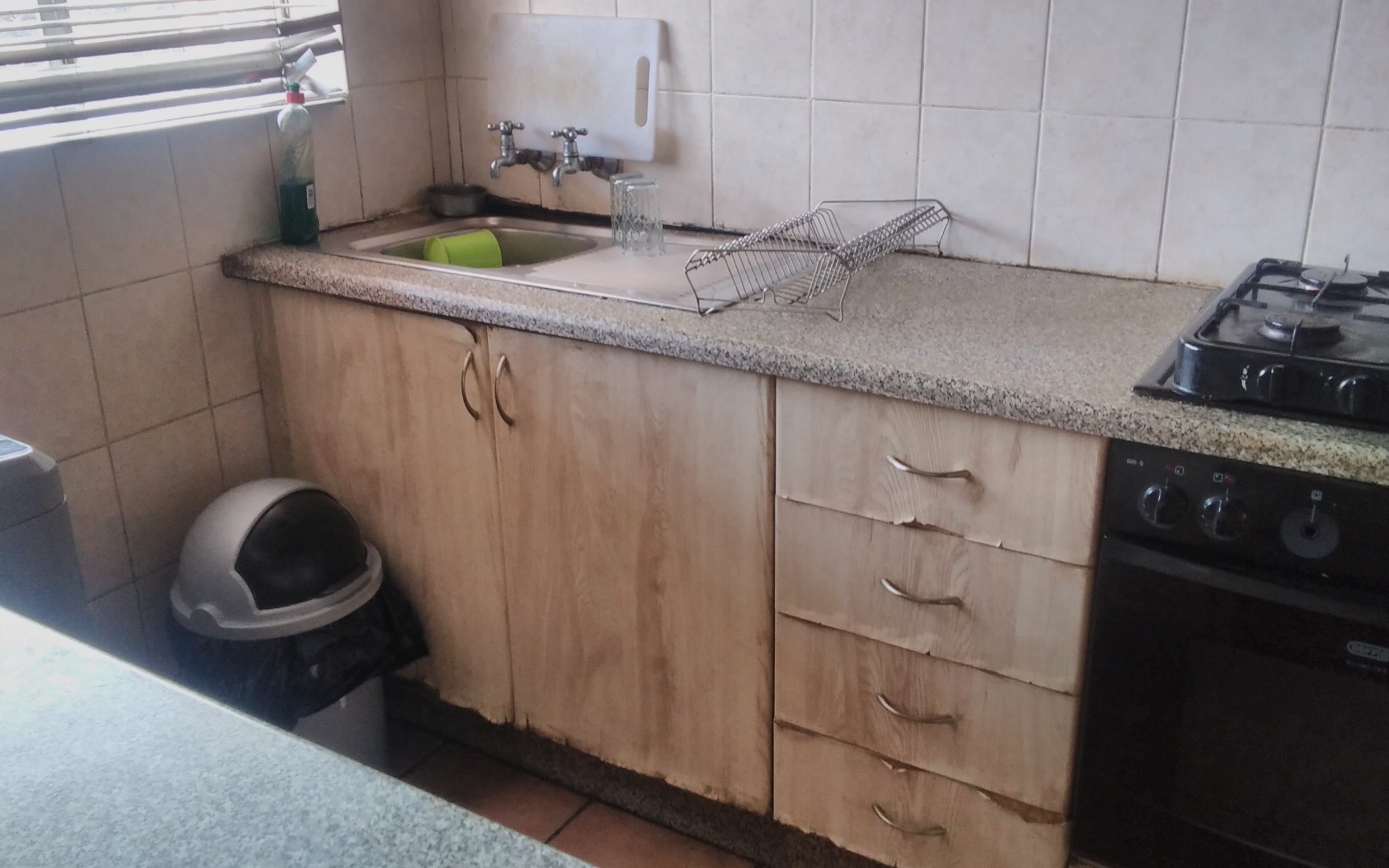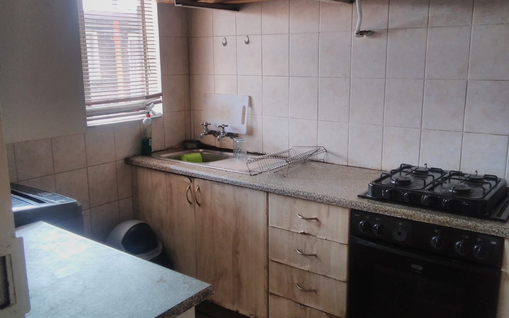 Open-plan lounge and dining area. Living area fully tiled for easy maintenance Separate Kitchen (needs some TLC – an opportunity to add your own touch!)
