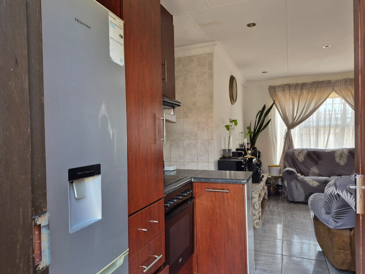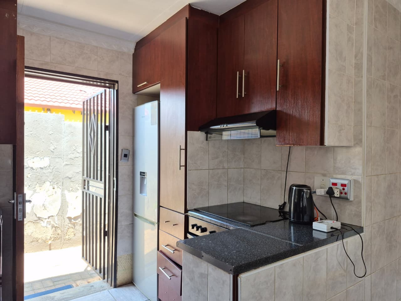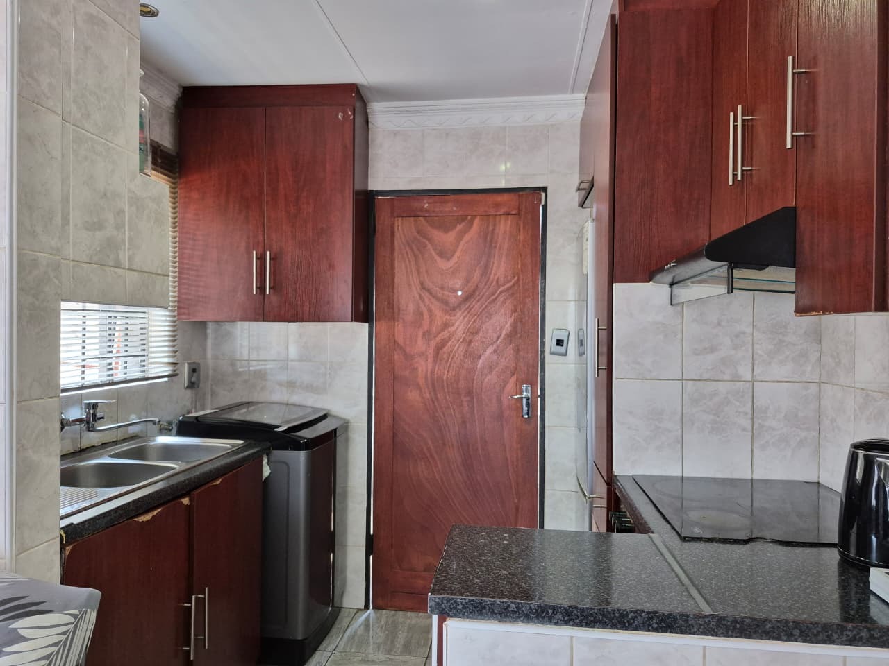 Discover this secure 3-bedroom home in Mindalore, Krugersdorp. The property boasts a robust dark metal gate with anti-climb spikes and a brick-paved driveway, ensuring a secure and neat entrance. A high perimeter wall with security spikes further enhances safety, offering peace of mind for residents.