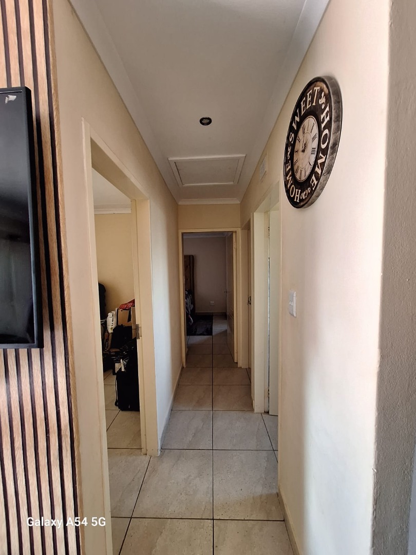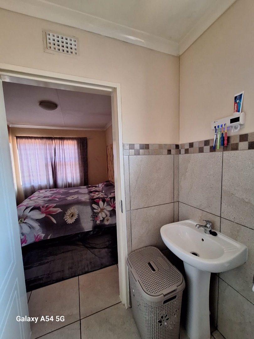 This home offers three comfortable bedrooms and a single well-appointed bathroom, catering to practical family needs. Sustainability is enhanced by a solar water heater on the roof, contributing to energy efficiency. The property is secured with security gates at the main entrance and features concrete boundary fencing, providing privacy and peace of mind.