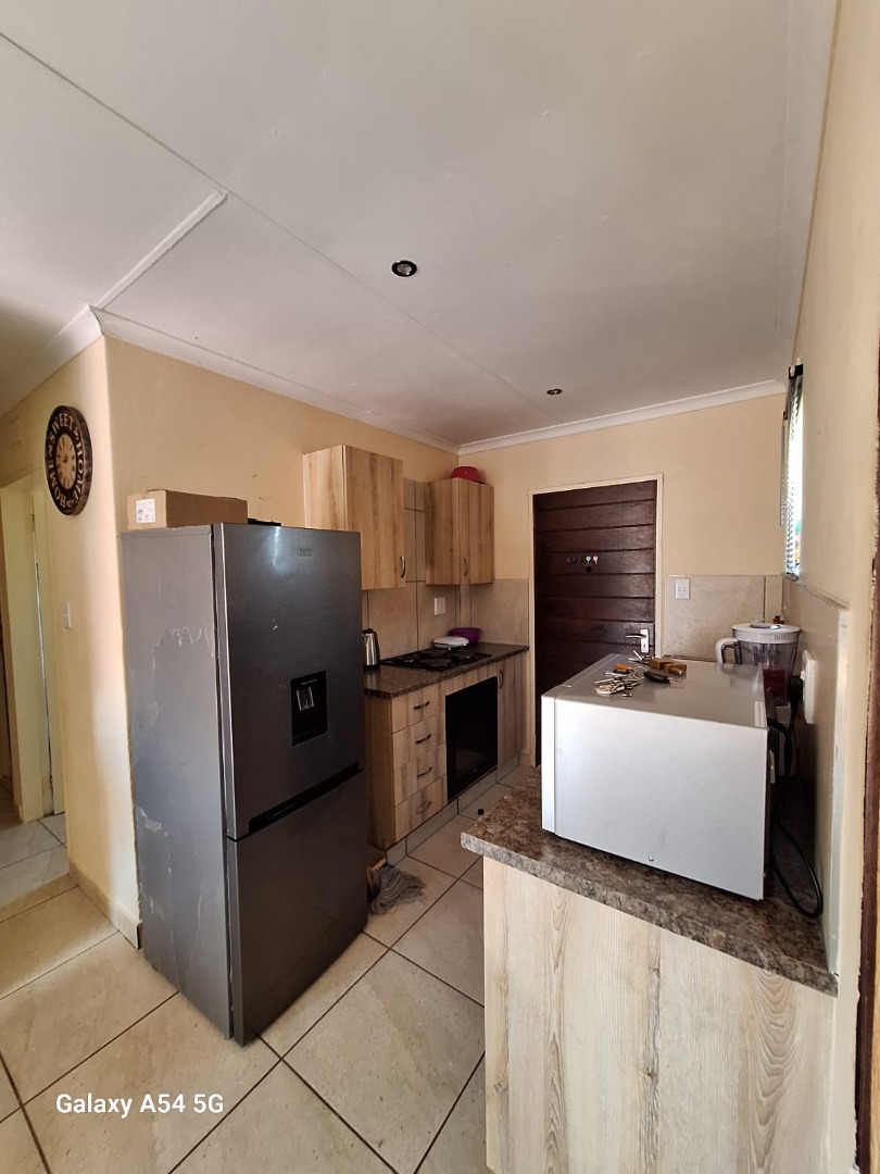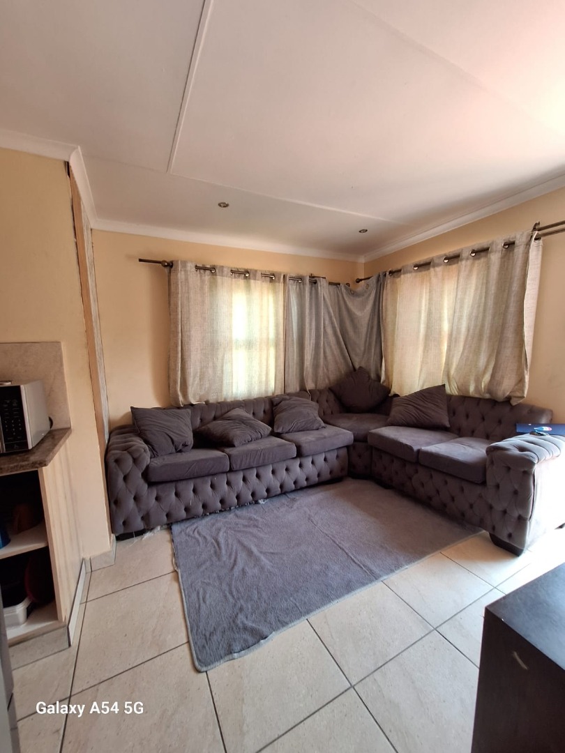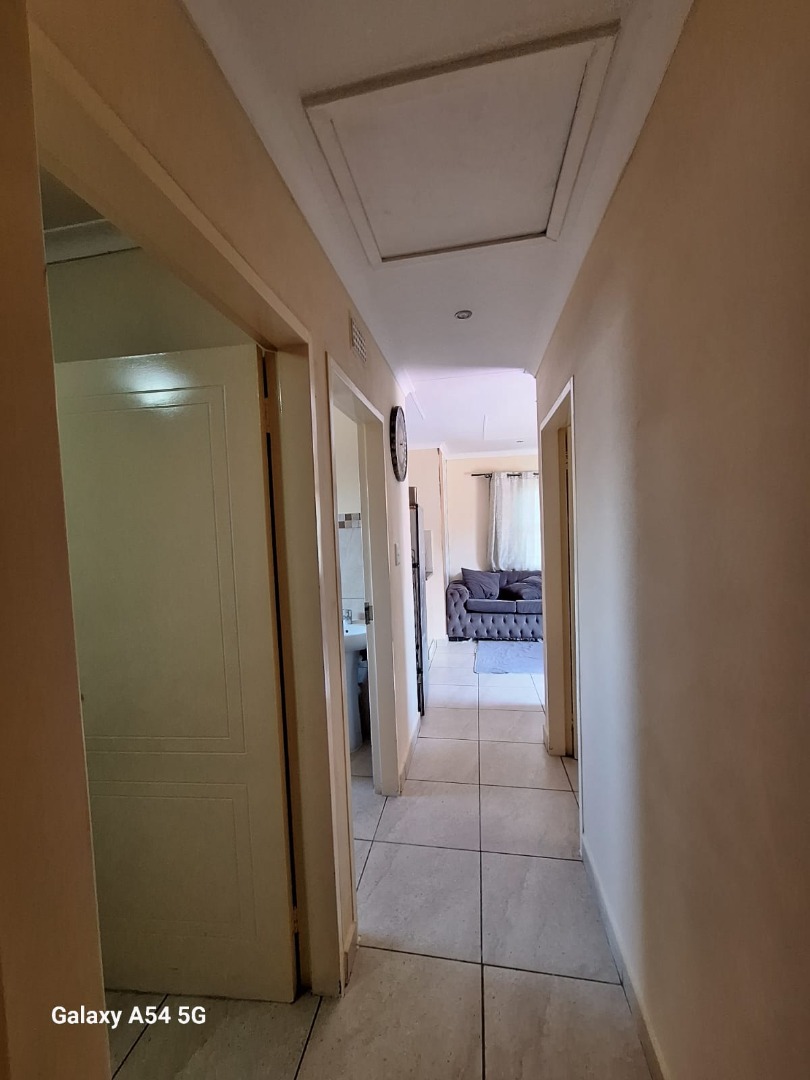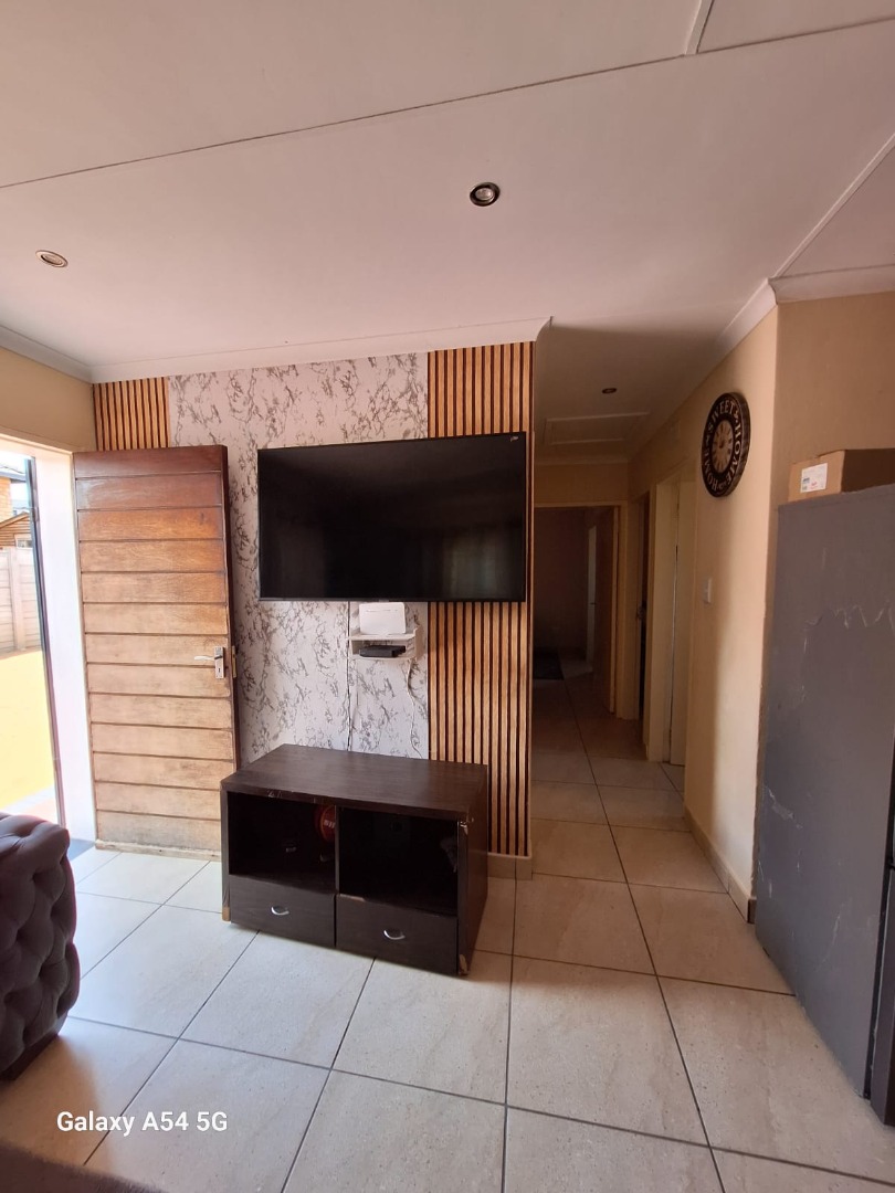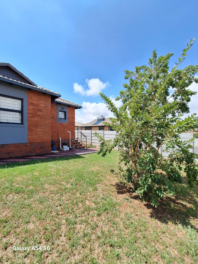 This home offers three comfortable bedrooms and a single well-appointed bathroom, catering to practical family needs. Sustainability is enhanced by a solar water heater on the roof, contributing to energy efficiency. The property is secured with security gates at the main entrance and features concrete boundary fencing, providing privacy and peace of mind.
