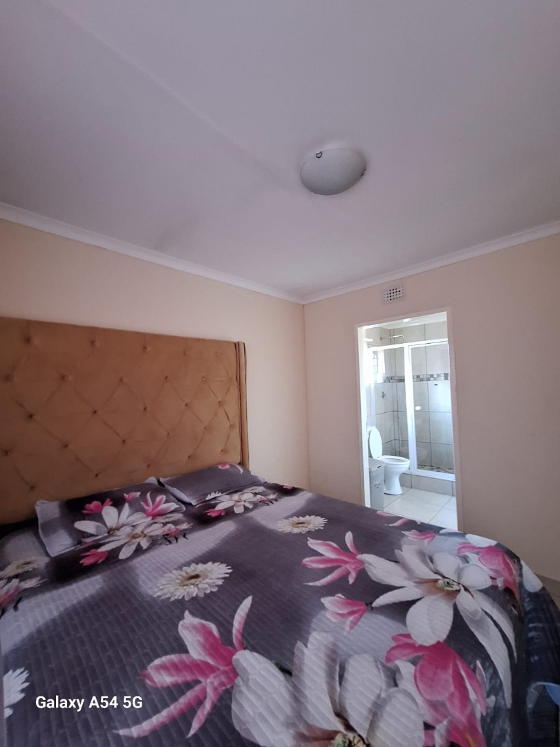 The interior boasts an open-plan living and kitchen area, designed for contemporary comfort and functionality. Tiled flooring throughout ensures easy maintenance, while modern finishes and a decorative accent wall add a touch of style. The compact yet efficient kitchen is well-appointed, flowing seamlessly into the lounge space, ideal for everyday living.
