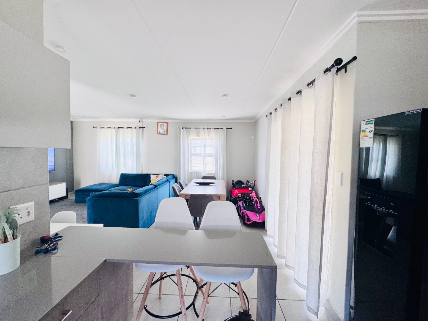 This meticulously maintained residential property in Mindalore presents an exceptional opportunity for discerning homeowners. The modern two-story residence immediately impresses with its contemporary design, featuring a tiled roof, a paved driveway leading to a covered carport, and a well-kept front garden, establishing a strong kerb appeal within a neat neighbourhood. The property is situated on a generous 434 sqm erf, offering ample outdoor space. Upon entry, the interior reveals a bright and spacious open-plan layout, seamlessly integrating the lounge, dining area, and a modern kitchen. The living spaces are characterized by light-colored walls, recessed lighting, and practical tiled flooring, complemented by large windows that invite abundant natural light. The kitchen is well-appointed with light cabinetry, integrated appliances, and a tiled backsplash, providing both functionality and aesthetic appeal. A guest toilet is conveniently located on the ground floor. The upper level accommodates four well-proportioned bedrooms, ensuring comfortable living for families. The residence includes two bathrooms, with one being an en-suite, offering privacy and convenience. The design prioritizes comfort and modern living throughout. Security is paramount, with the property featuring a high brick perimeter wall, electric fencing, an alarm system, and burglar bars, providing robust protection. The paved driveway offers two dedicated parking spaces. The established garden enhances the outdoor environment, contributing to a serene living experience. The property also benefits from scenic views, adding to its desirability. Mindalore, a suburb within Krugersdorp, offers a suburban lifestyle with convenient access to local amenities and transport routes, making it an ideal location for family living in South Africa. Key Features: * Four Bedrooms, Two Bathrooms (One En-suite) * Spacious Open-Plan Lounge, Dining, and Kitchen * Modern Kitchen with Integrated Appliances * Enhanced Security: Electric Fencing, Alarm, Burglar Bars * Two Dedicated Parking Spaces * Paved Driveway and Established Garden * Guest Toilet * Scenic Views * 434 sqm Erf Size