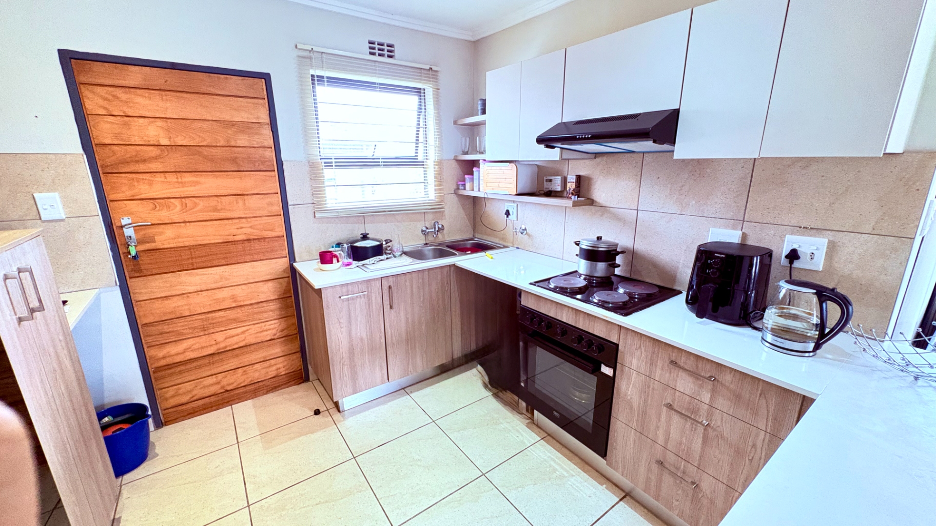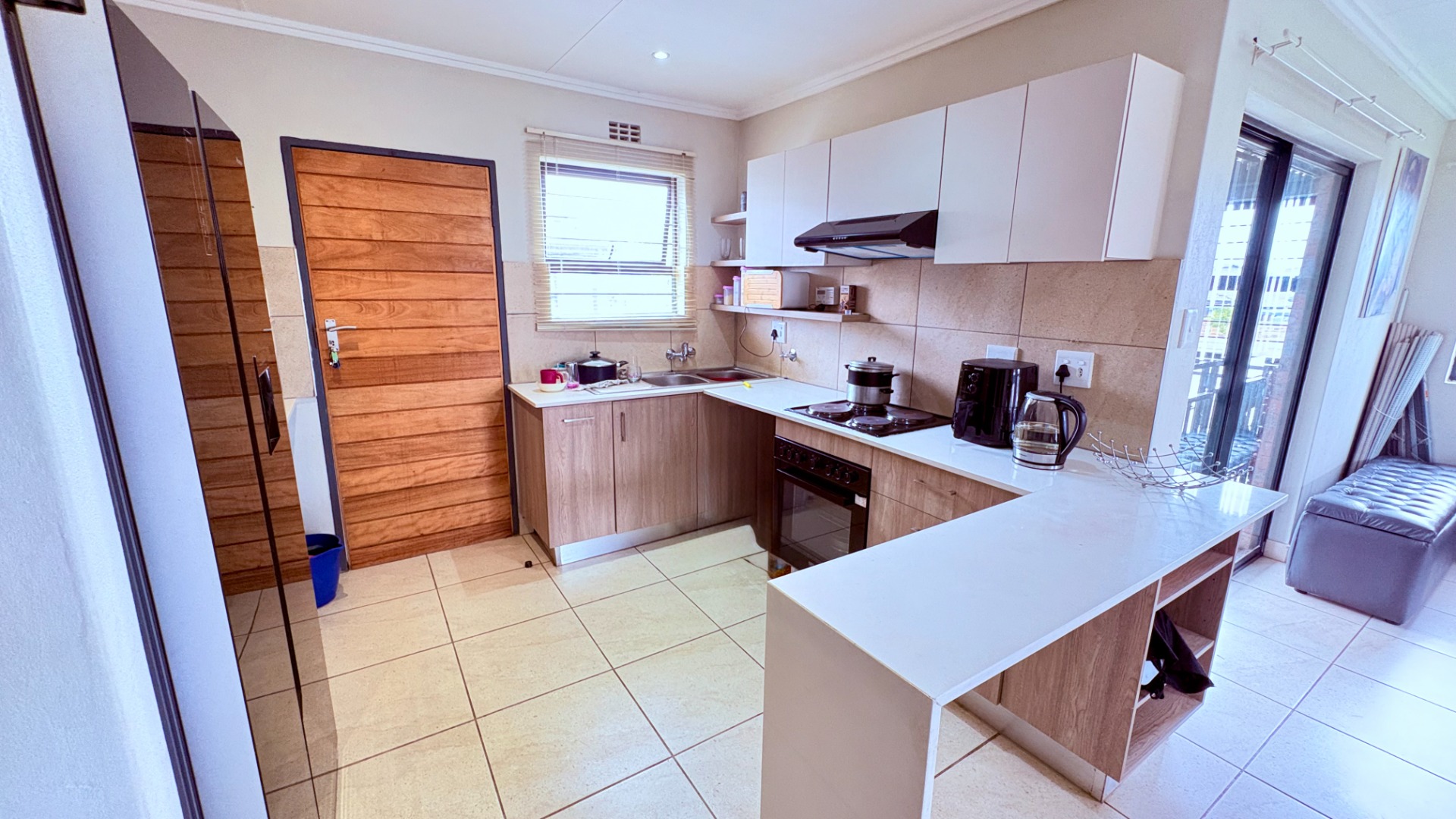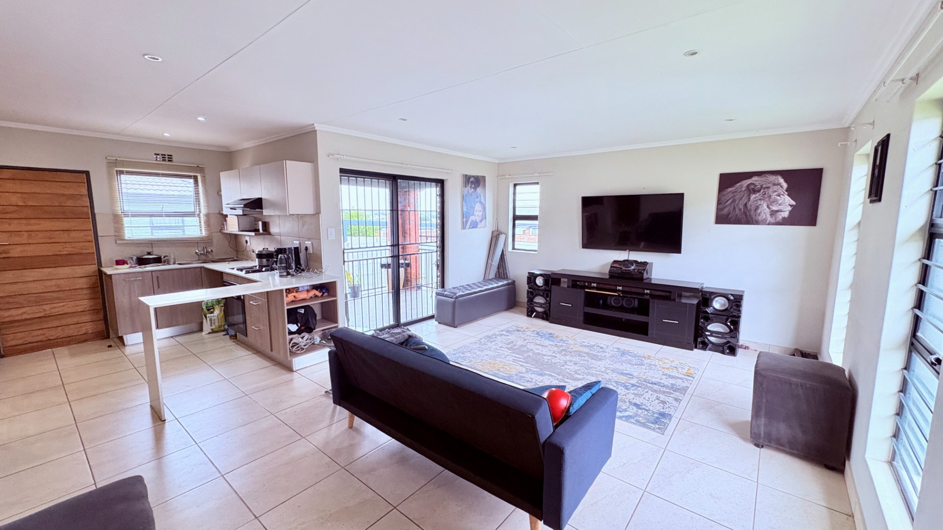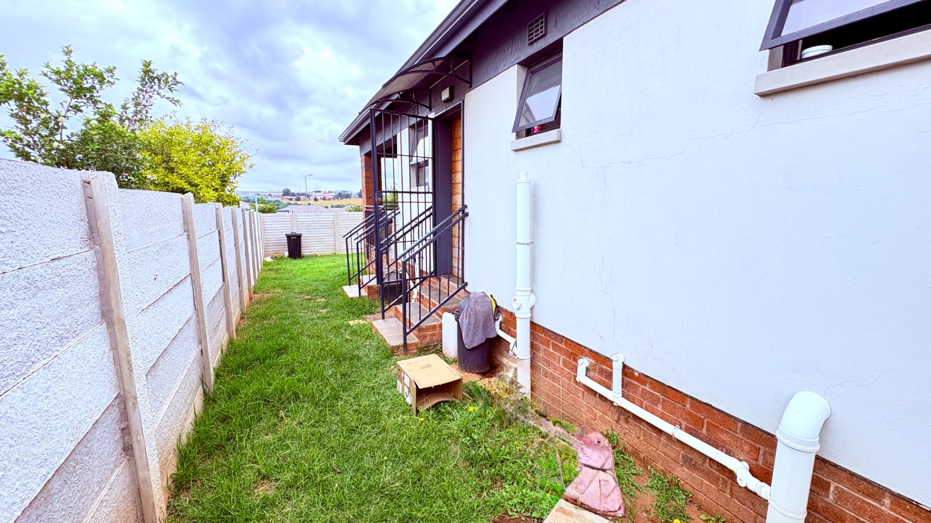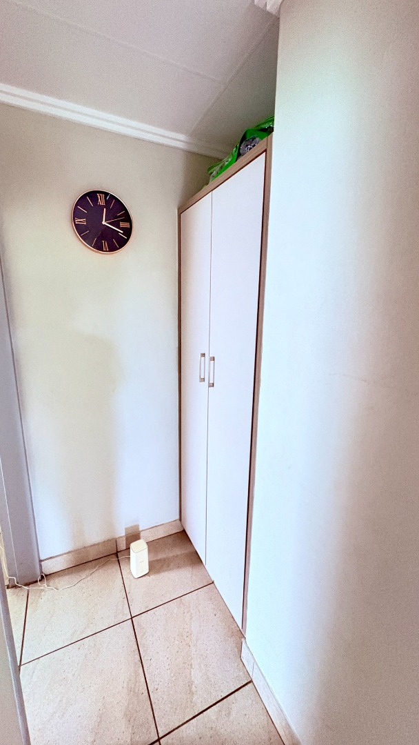 Outdoor living is well-catered for with a private patio, ideal for enjoying the South African climate and outdoor dining. The property includes a garden area, providing green space, complemented by practical paving. Two dedicated open parking bays ensure secure off-street parking. Pets are welcome.