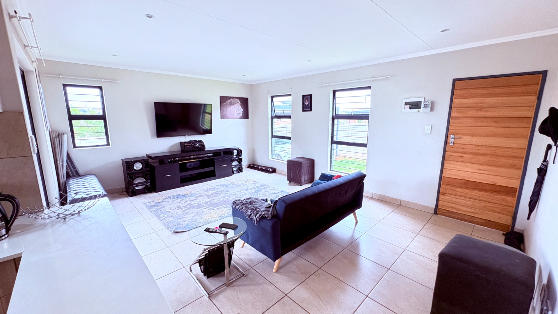 The interior features a dedicated lounge, providing a comfortable space for relaxation. A well-appointed kitchen caters to culinary needs, ensuring a cohesive and easy-to-manage home environment. This layout prioritizes functionality and everyday convenience.