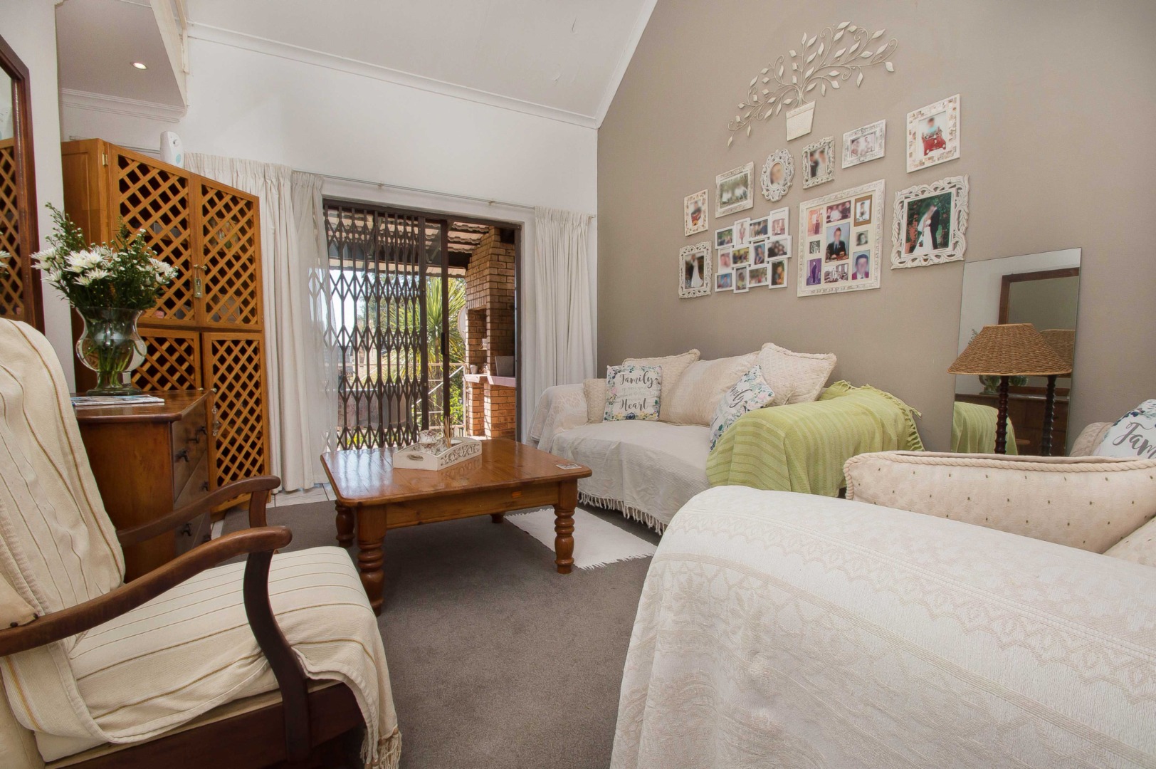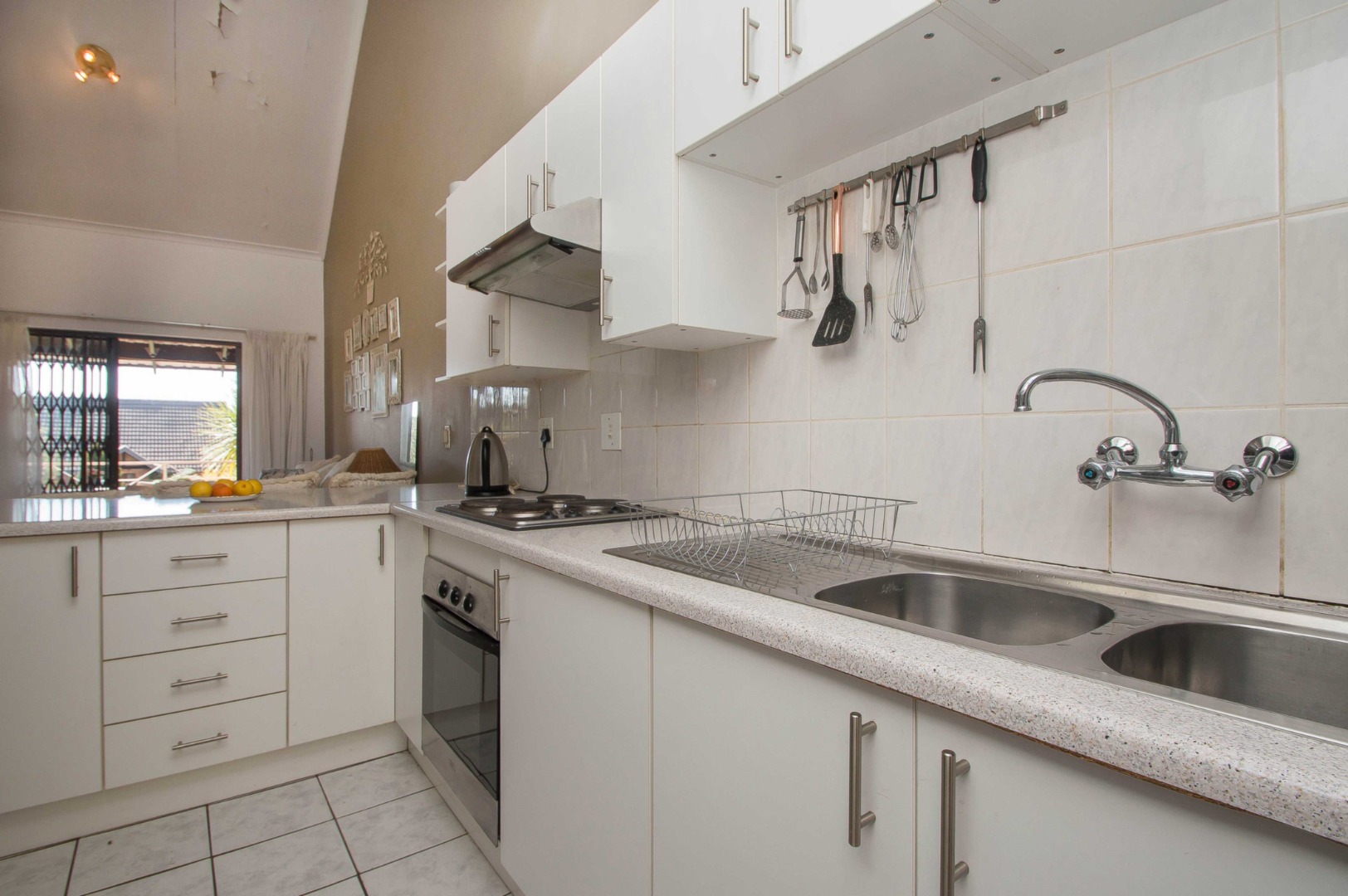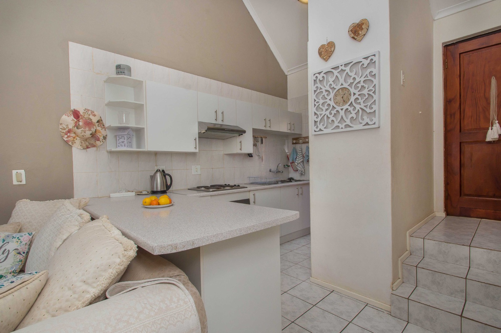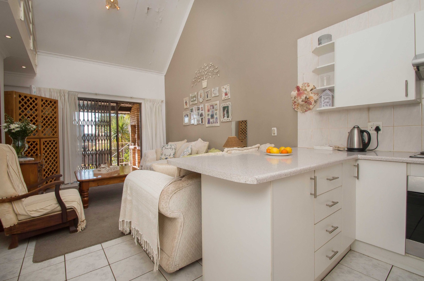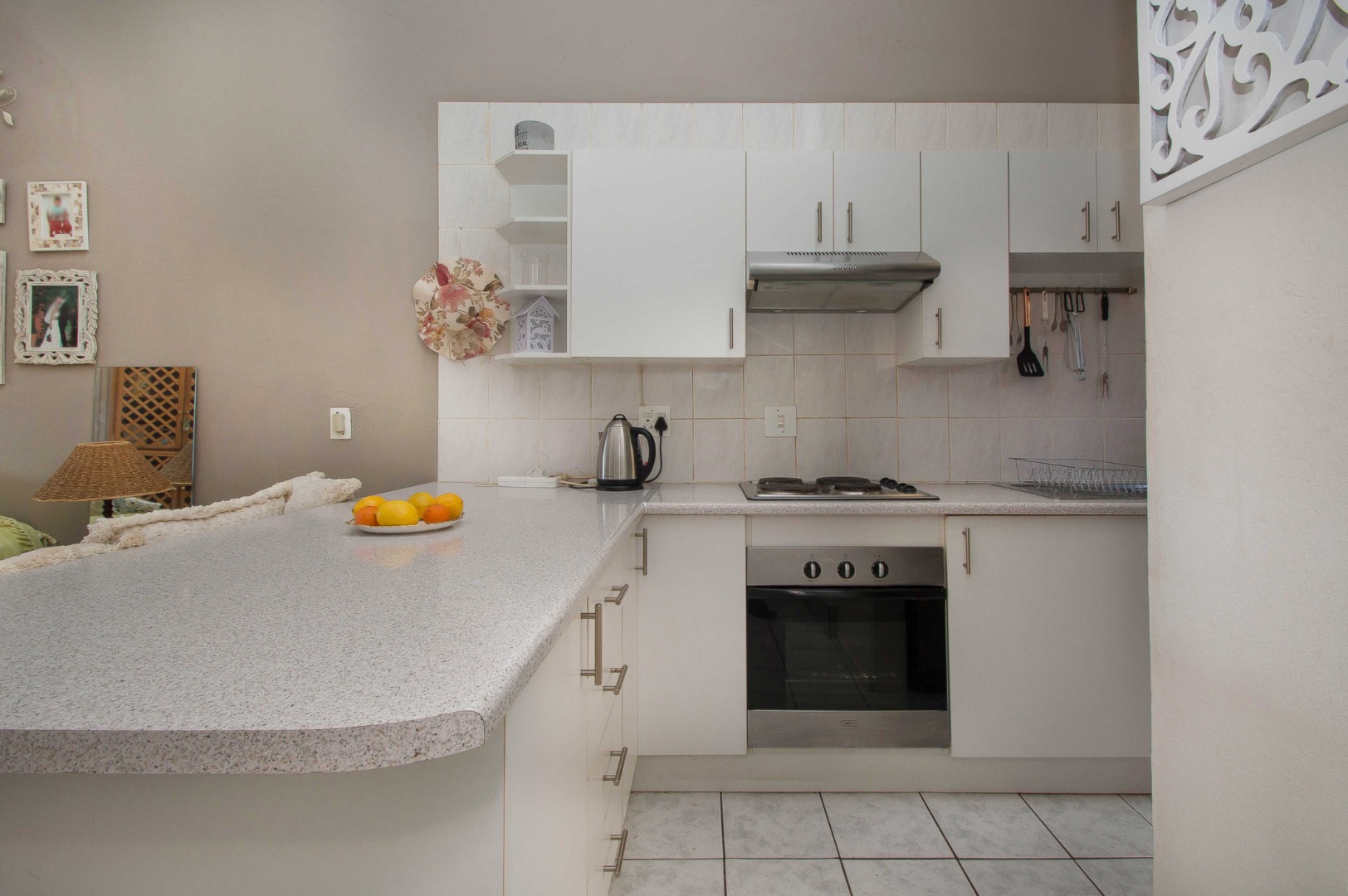 Enjoy open-plan living with a modern kitchen flowing seamlessly into a cosy lounge, which opens onto a private patio with built-in braai — perfect for entertaining or relaxing while overlooking the beautifully landscaped communal gardens, filled with birdsong and tranquillity.