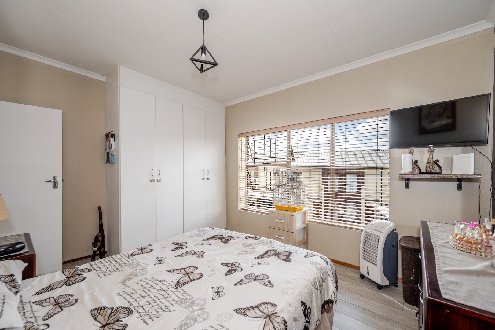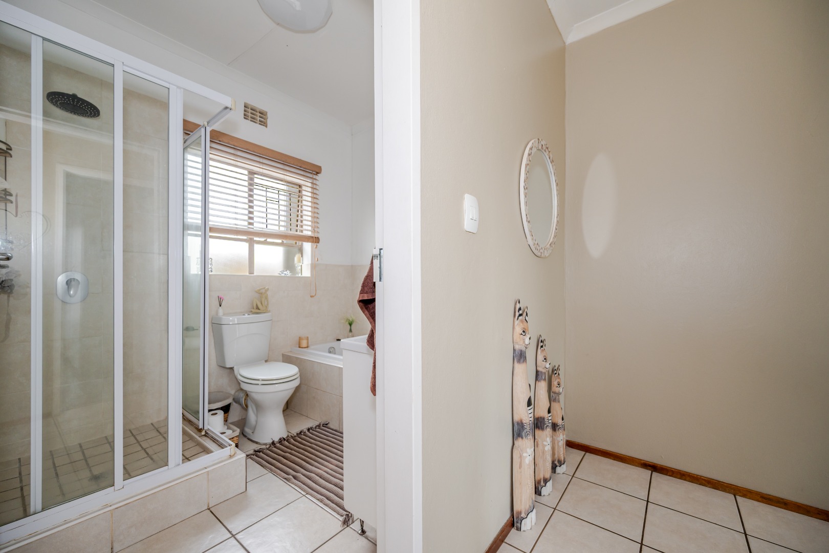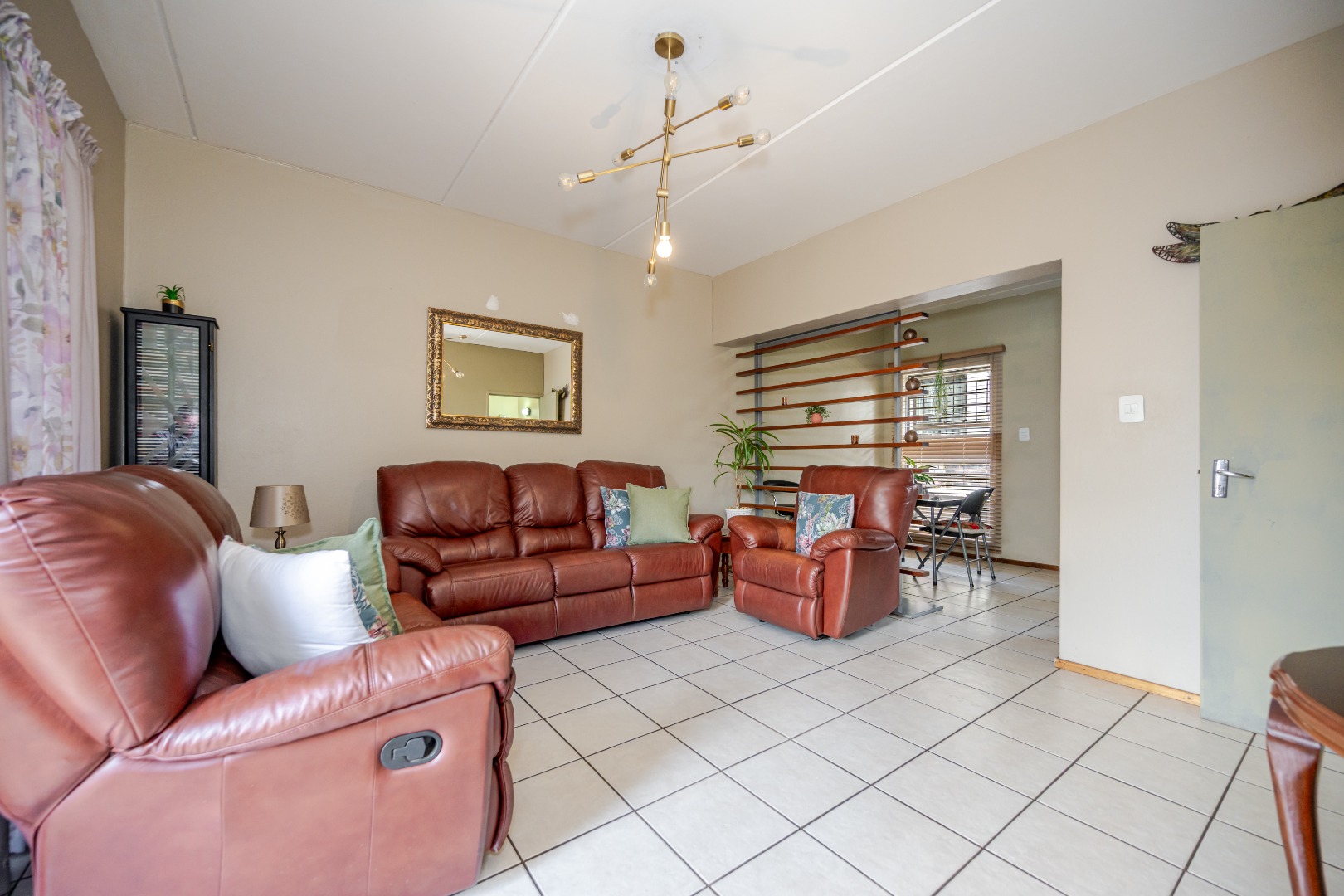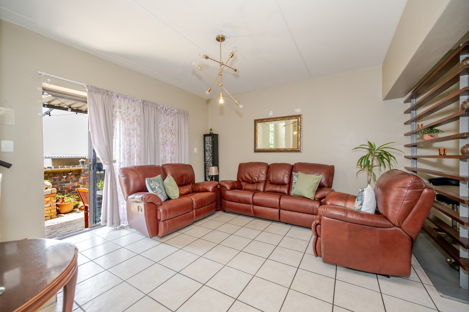 Discover this charming 74 sqm townhouse, ideally situated in a well-maintained complex within a quiet cul-de-sac in Noordheuwel, Krugersdorp. This multi-level residence offers a practical and comfortable living environment, perfect for individuals or small families seeking a secure and convenient lifestyle. The exterior features a durable brick and stucco facade, complemented by covered entrance areas and carports, providing sheltered parking for two vehicles. Step inside to an inviting open-plan living space, where tiled flooring flows seamlessly throughout, ensuring easy maintenance. The functional kitchen boasts modern white cabinetry, a built-in oven, hob, and extractor fan, catering to your culinary needs. A decorative wooden slat room divider subtly separates the dining area from the spacious living room, which benefits from ample natural light and direct access to the outdoor patio through a large sliding glass door. The home comprises two comfortable bedrooms and a single well-appointed bathroom. One of the standout features of this property is the private outdoor entertainment area. This spacious, paved patio includes a covered section with ambient string lights, a built-in braai, and plenty of room for outdoor dining. It's an ideal spot for relaxation and entertaining, offering views of the surrounding hills. The property also includes a small, low-maintenance garden. Security is a priority, with the complex featuring a security post, access gate, electric fencing, and 24-hour security. For added peace of mind, the unit is equipped with security bars on ground-level windows and doors, and a security gate on the patio's sliding door. Furthermore, the inclusion of a battery inverter system provides essential backup power, enhancing the home's sustainability and convenience. Pets are allowed, making this a welcoming space for your furry companions. Key Features: * 2 Bedrooms, 1 Bathroom * 74 sqm Floor Size * 2 Covered Parking Bays * Private Paved Patio with Built-in Braai * Battery Inverter System * 24-Hour Security Complex * Open-Plan Living Area * Pet-Friendly * Located in a Cul-de-Sac