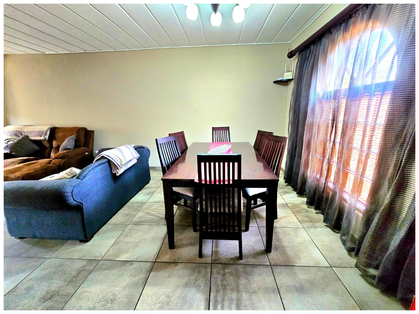 The home offers approximately 232 sqm under roof on a 320 sqm stand, with open plan living areas that include a lounge, dining room, and separate family TV room. The layout is practical, well lit, and ideal for comfortable everyday living. Air conditioning adds year round comfort.