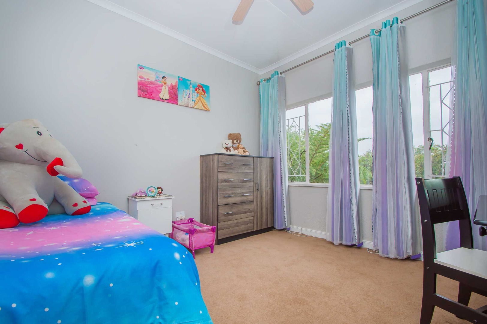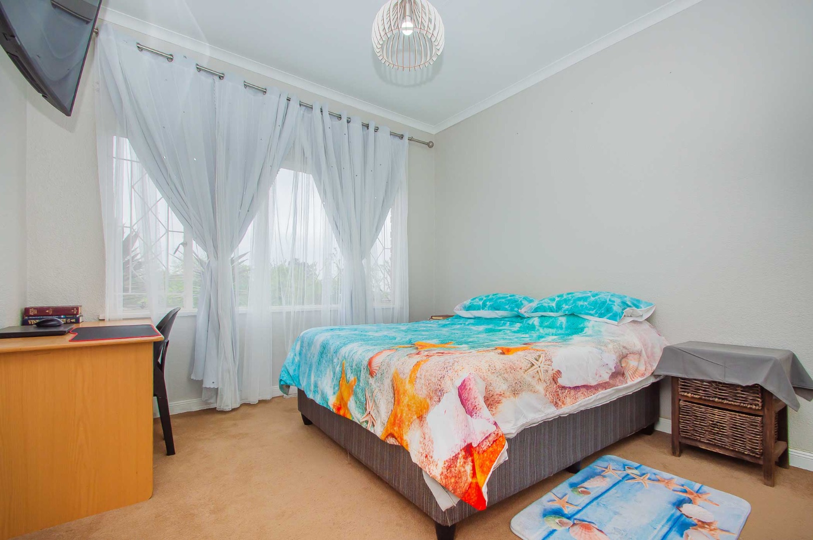Five carpeted bedrooms
