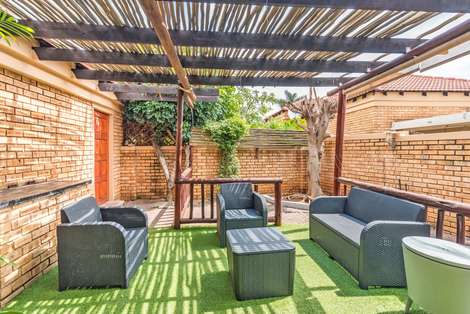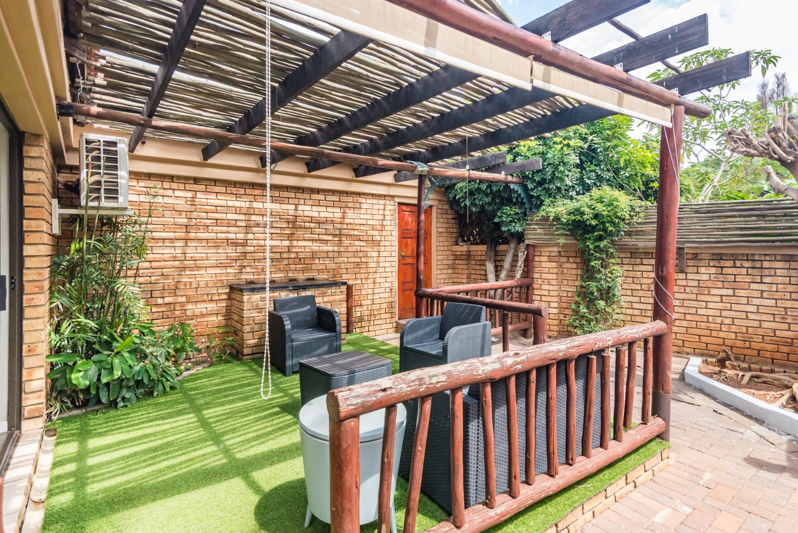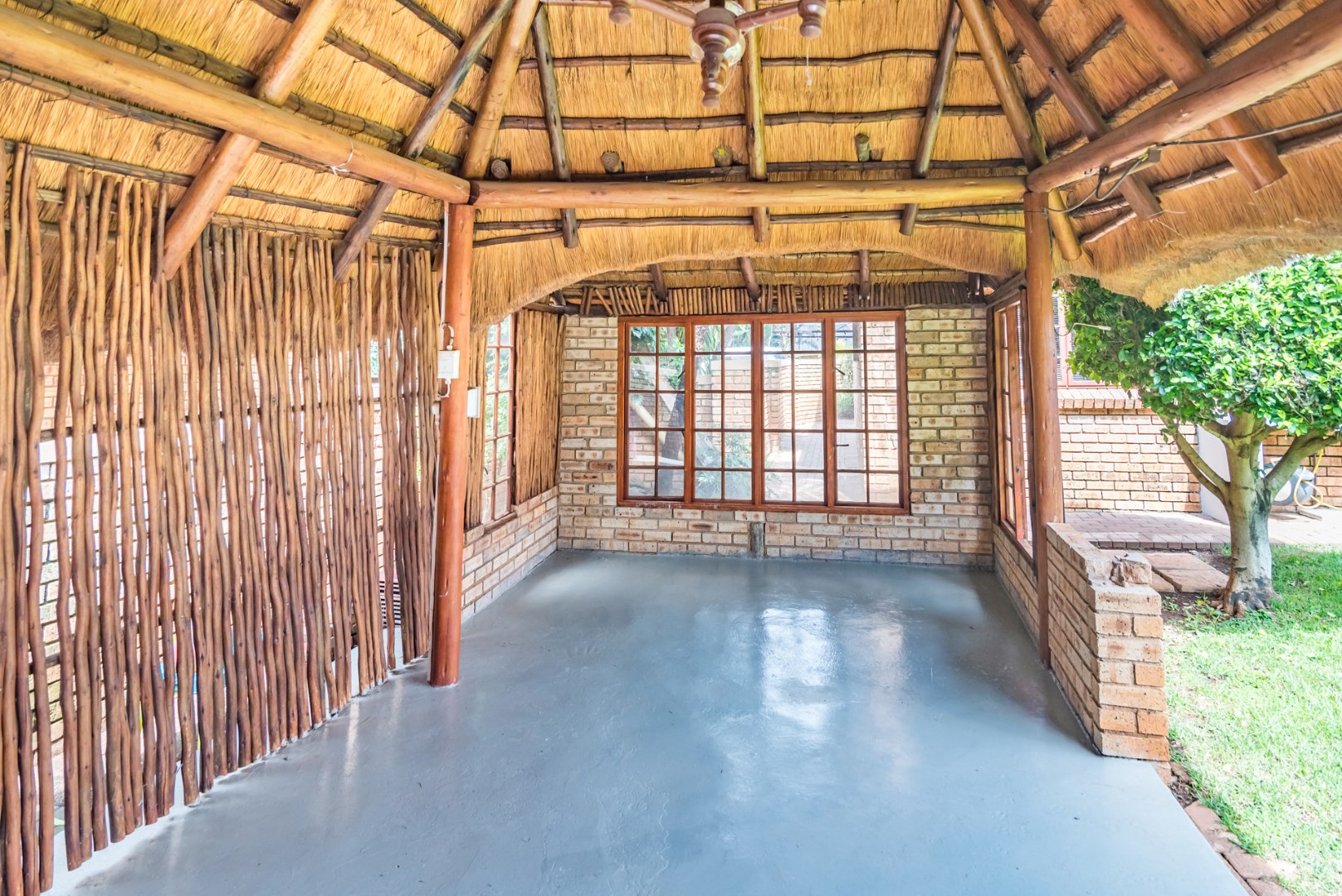 Outdoors, a partially covered patio provides the perfect spot for morning coffee or relaxed evenings. A charming lapa tucked into the garden creates an inviting space for entertaining friends and family.