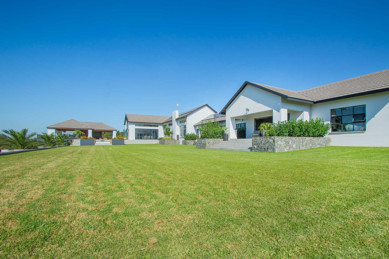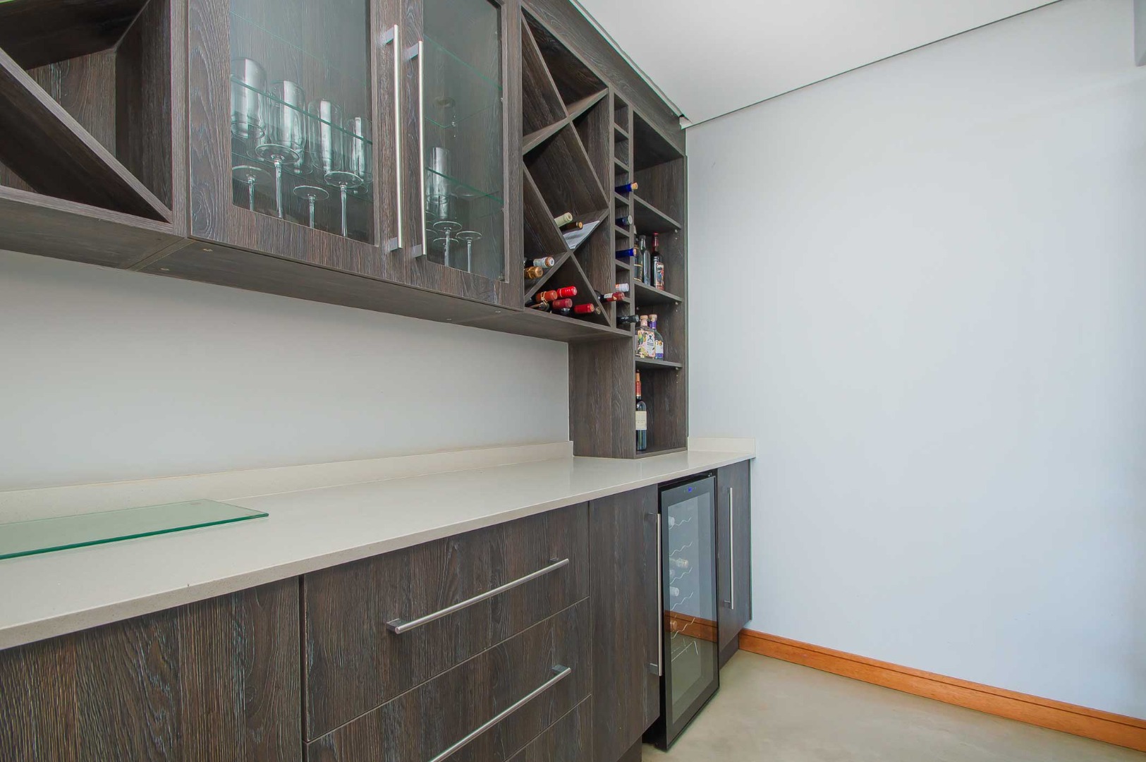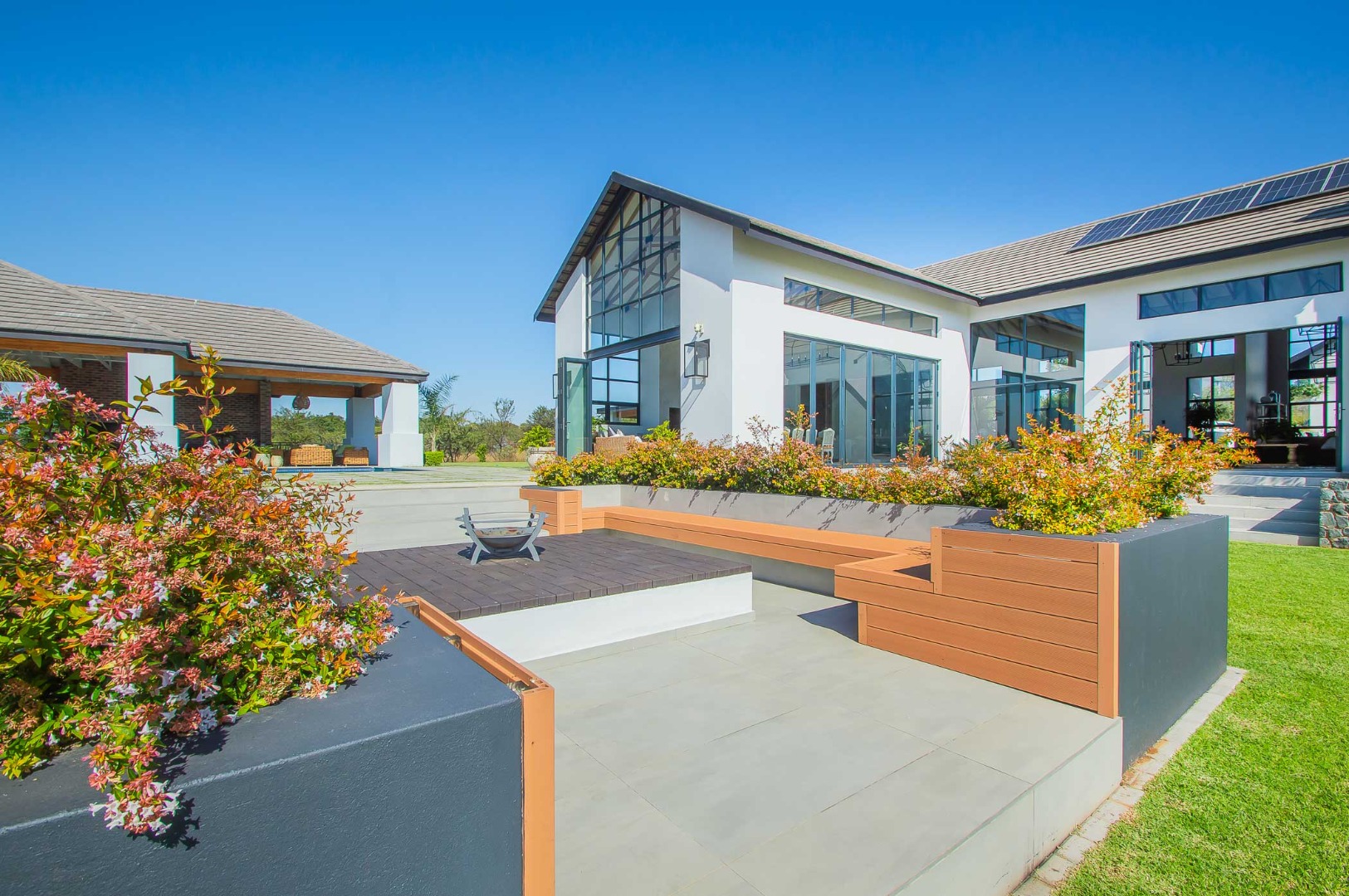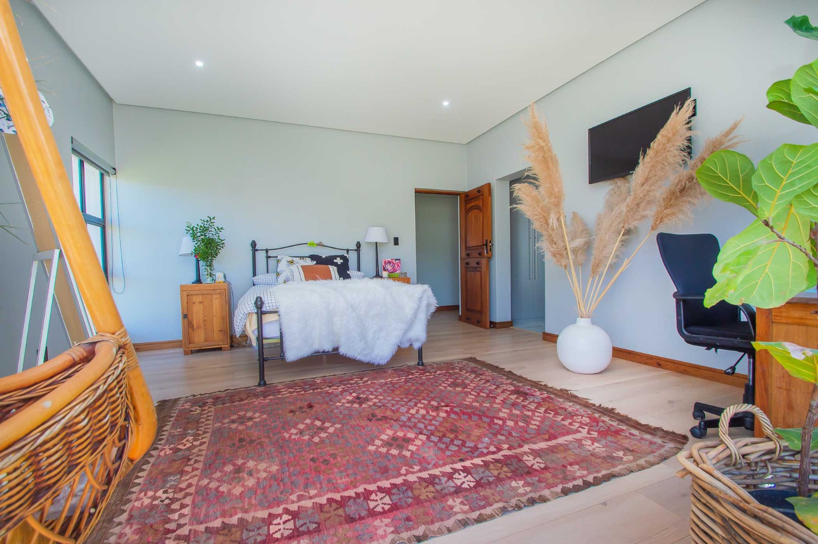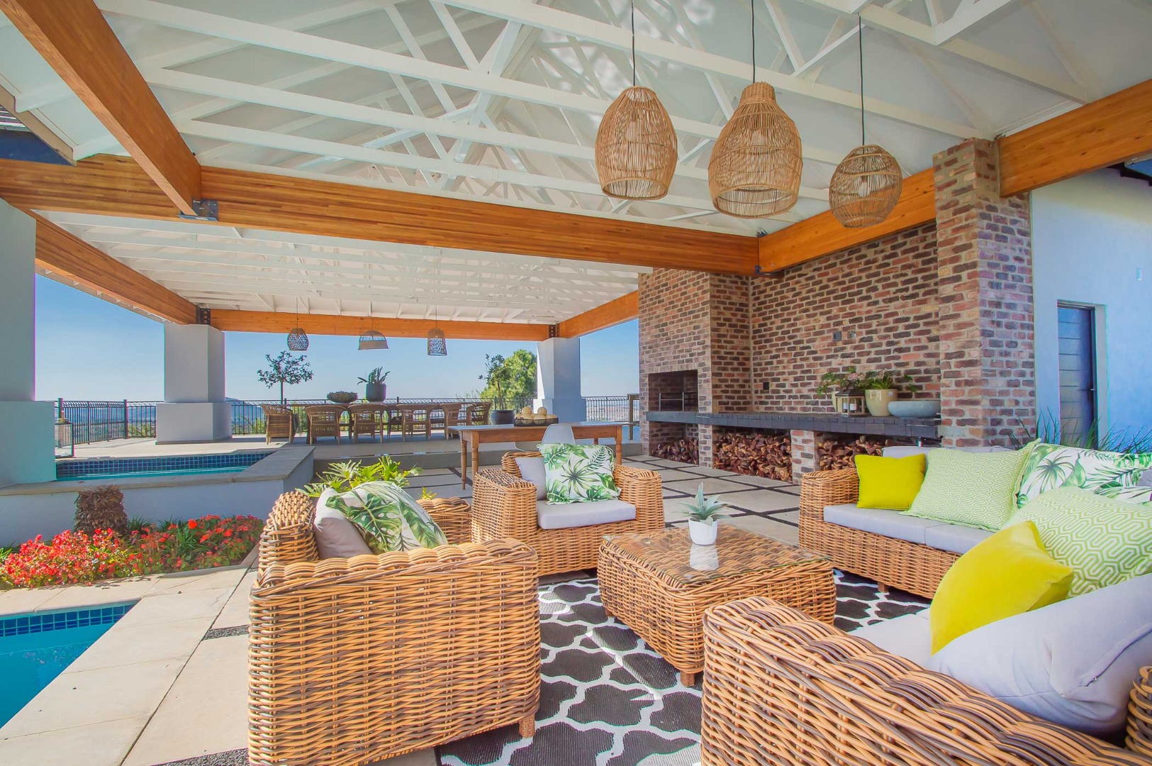 The main house includes 4 spacious bedrooms, all with stacking glass doors that seamlessly blend indoor comfort with outdoor splendor. A large office for a Director working from home. The luxurious main suite boasts a biofuel fireplace, a private pajama lounge, a walk-in closet room, and a Santincrete-finished Ensuite bathroom. A separate guest suite with a private entrance and an additional flatlet with its own bathroom offer versatile living options for extended family. Domestic accommodation and two storerooms add to the property's practicality.