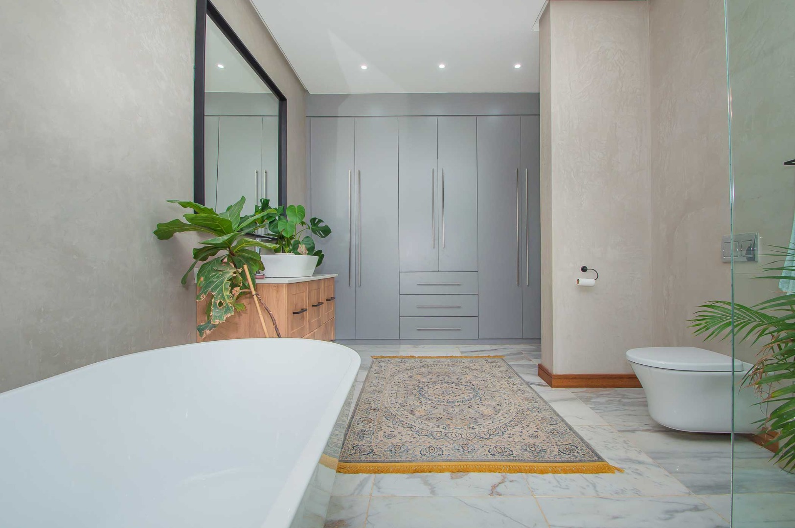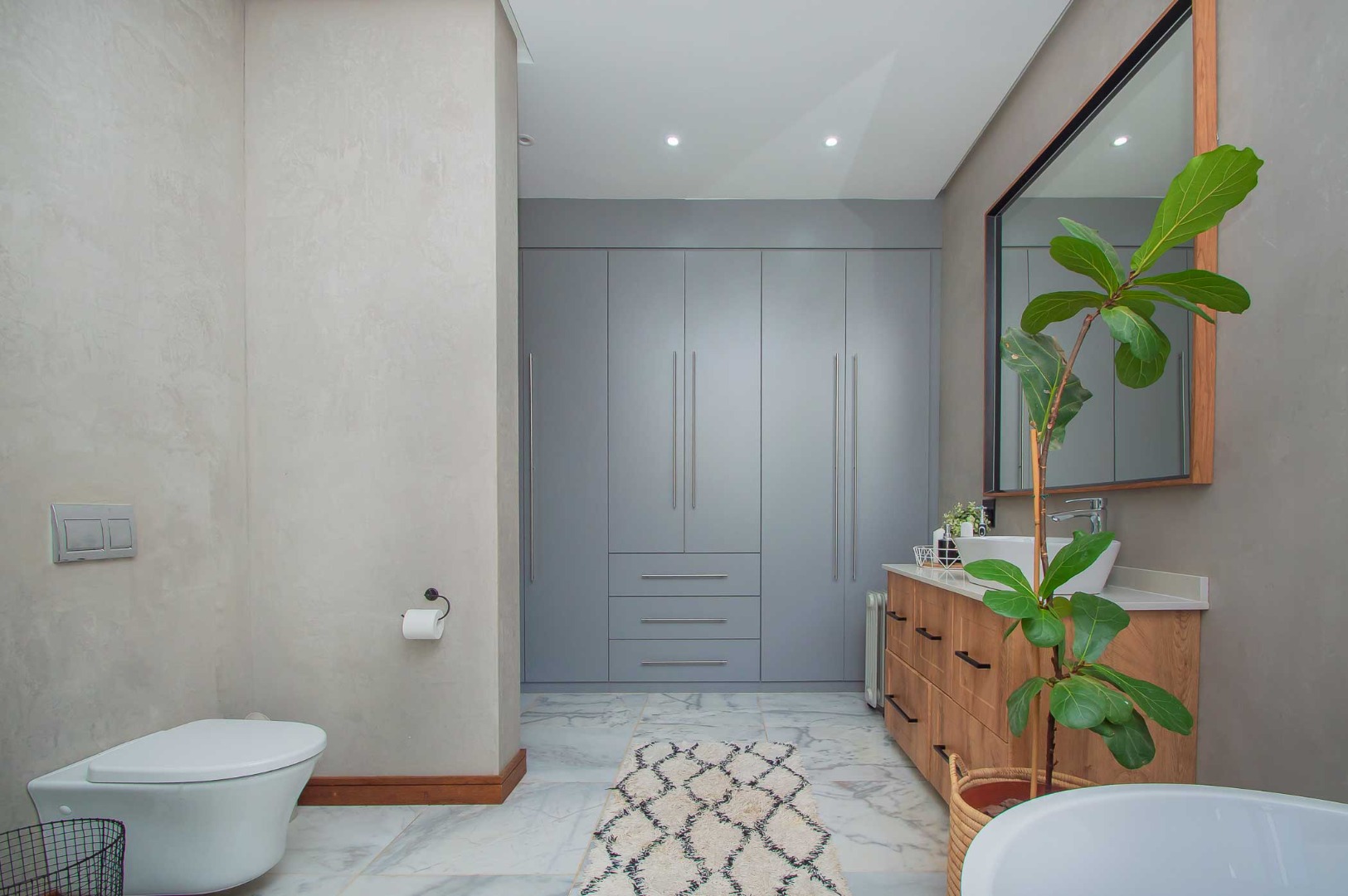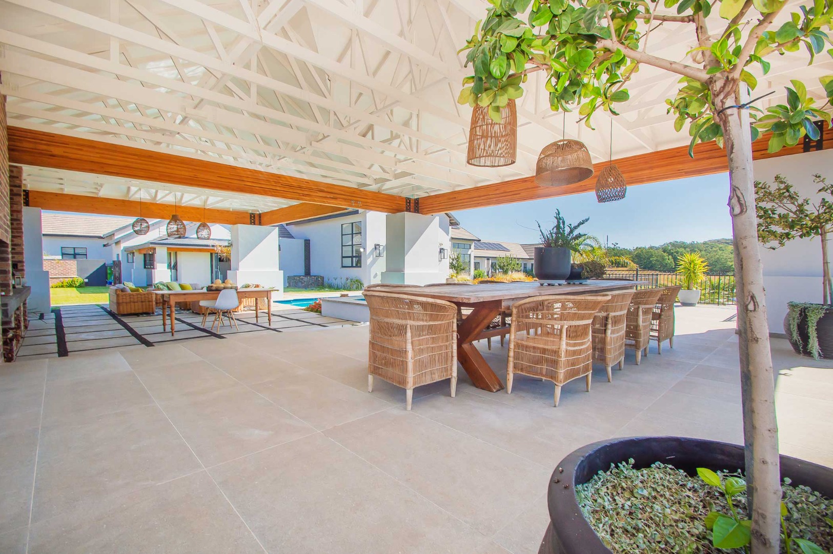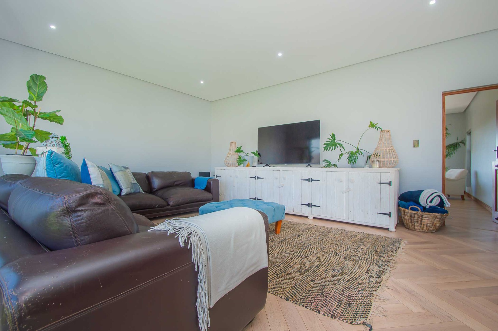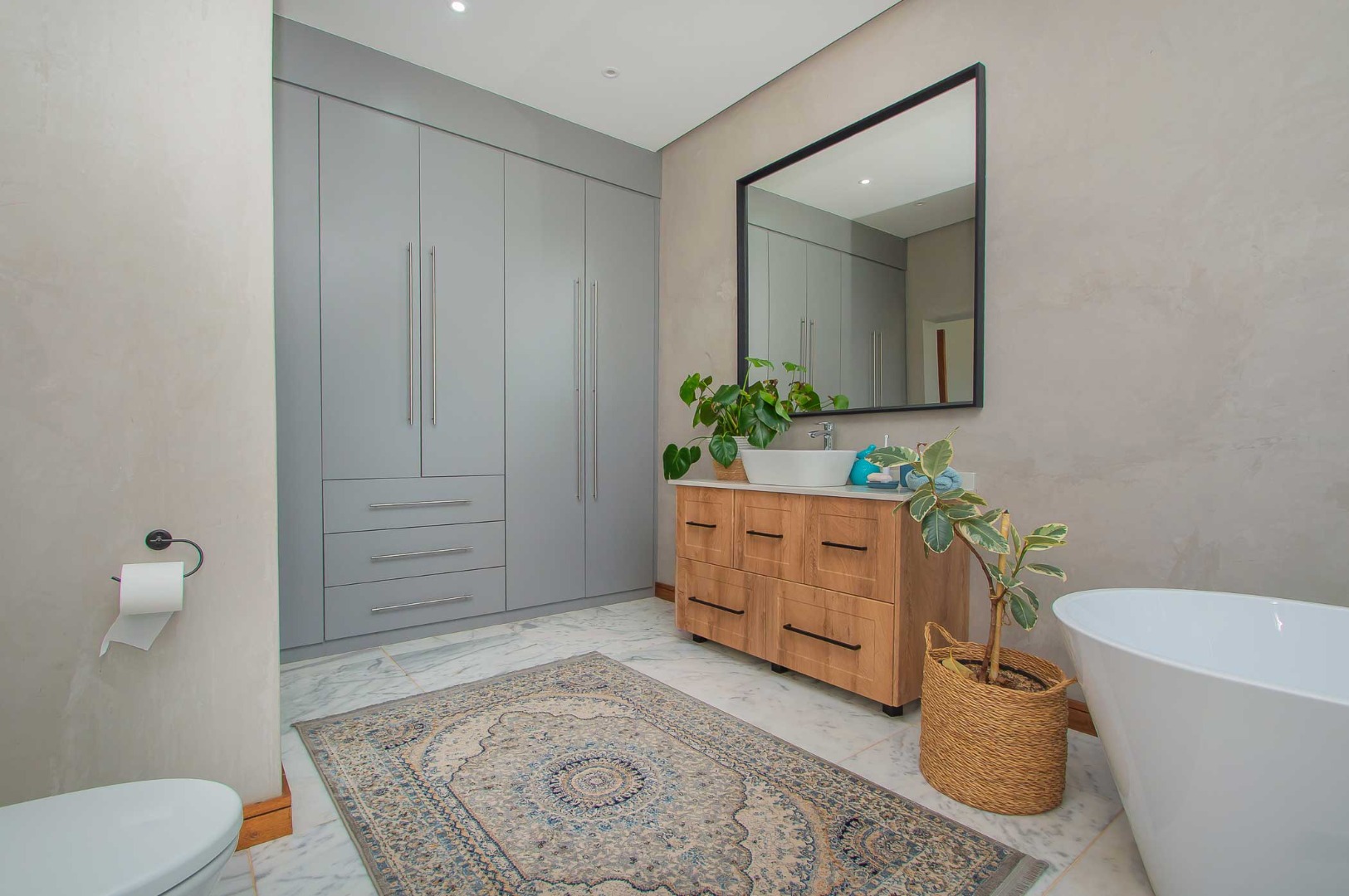The main house includes 4 spacious bedrooms, all with stacking glass doors that seamlessly blend indoor comfort with outdoor splendor. A large office for a Director working from home. The luxurious main suite boasts a biofuel fireplace, a private pajama lounge, a walk-in closet room, and a Santincrete-finished Ensuite bathroom. A separate guest suite with a private entrance and an additional flatlet with its own bathroom offer versatile living options for extended family. Domestic accommodation and two storerooms add to the property's practicality.