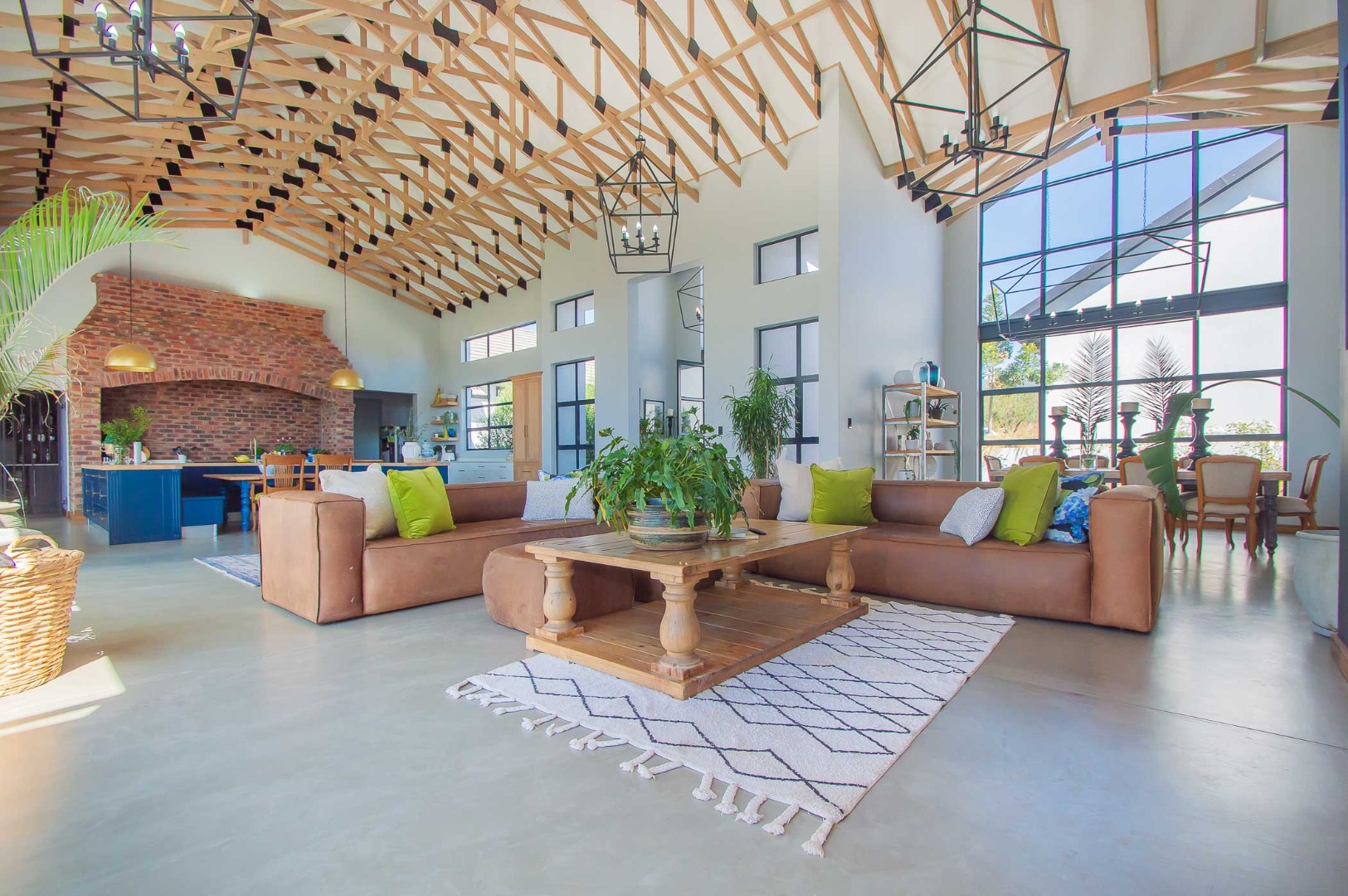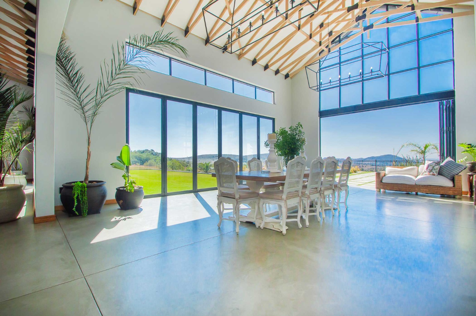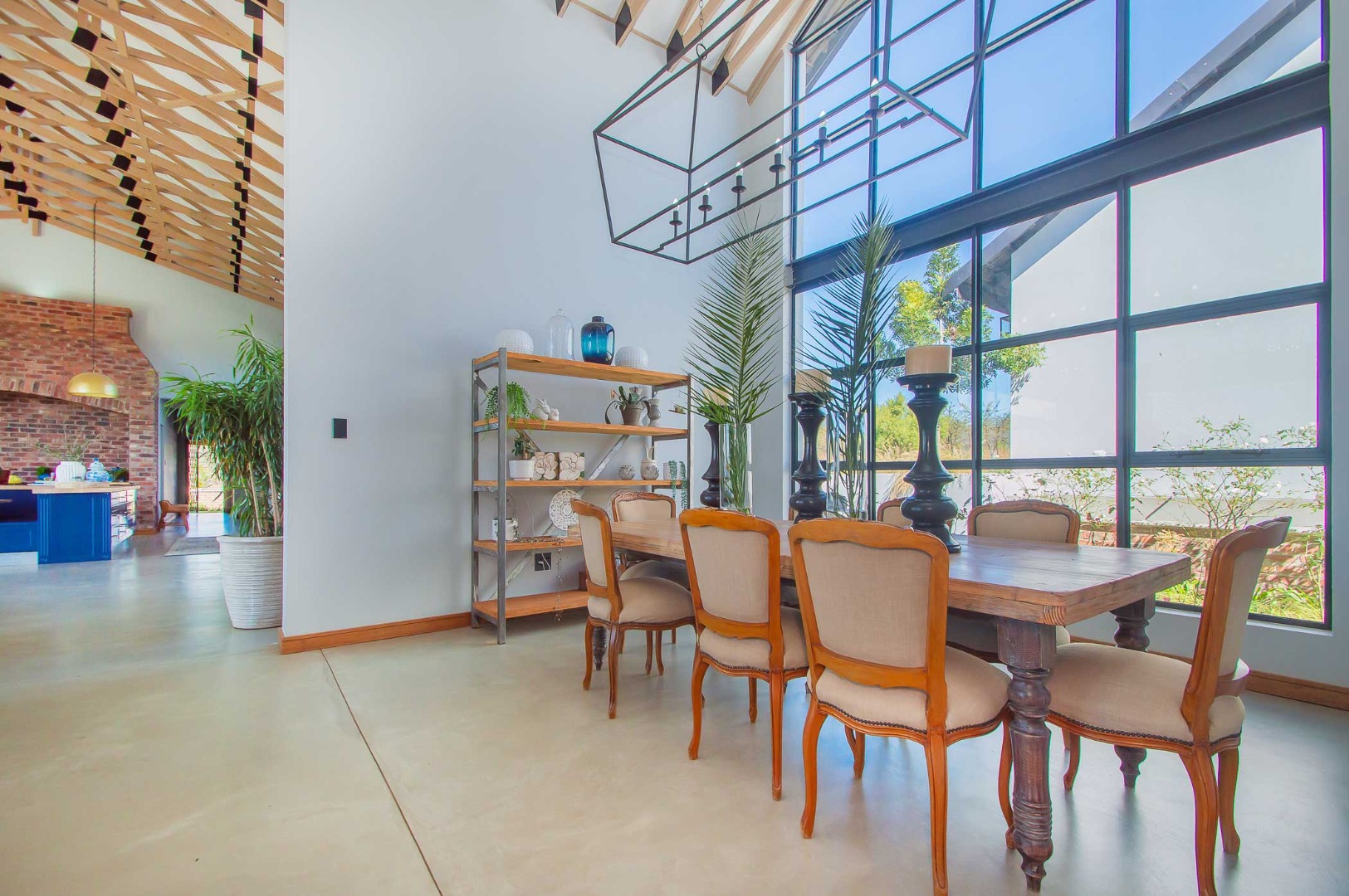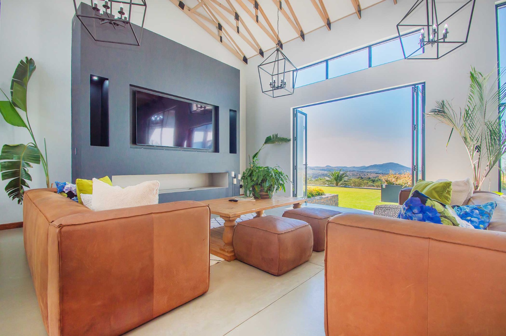 Set on a sprawling 2.9-hectare stand within the exclusive Thorny Hill Estate, this contemporary farm-style residence offers unmatched privacy, sustainability, and scenic beauty. Built just two years ago, the home features a thoughtfully designed open-plan layout with soaring ceilings, bringing in natural light and emphasizing the panoramic mountain views visible from every room.
