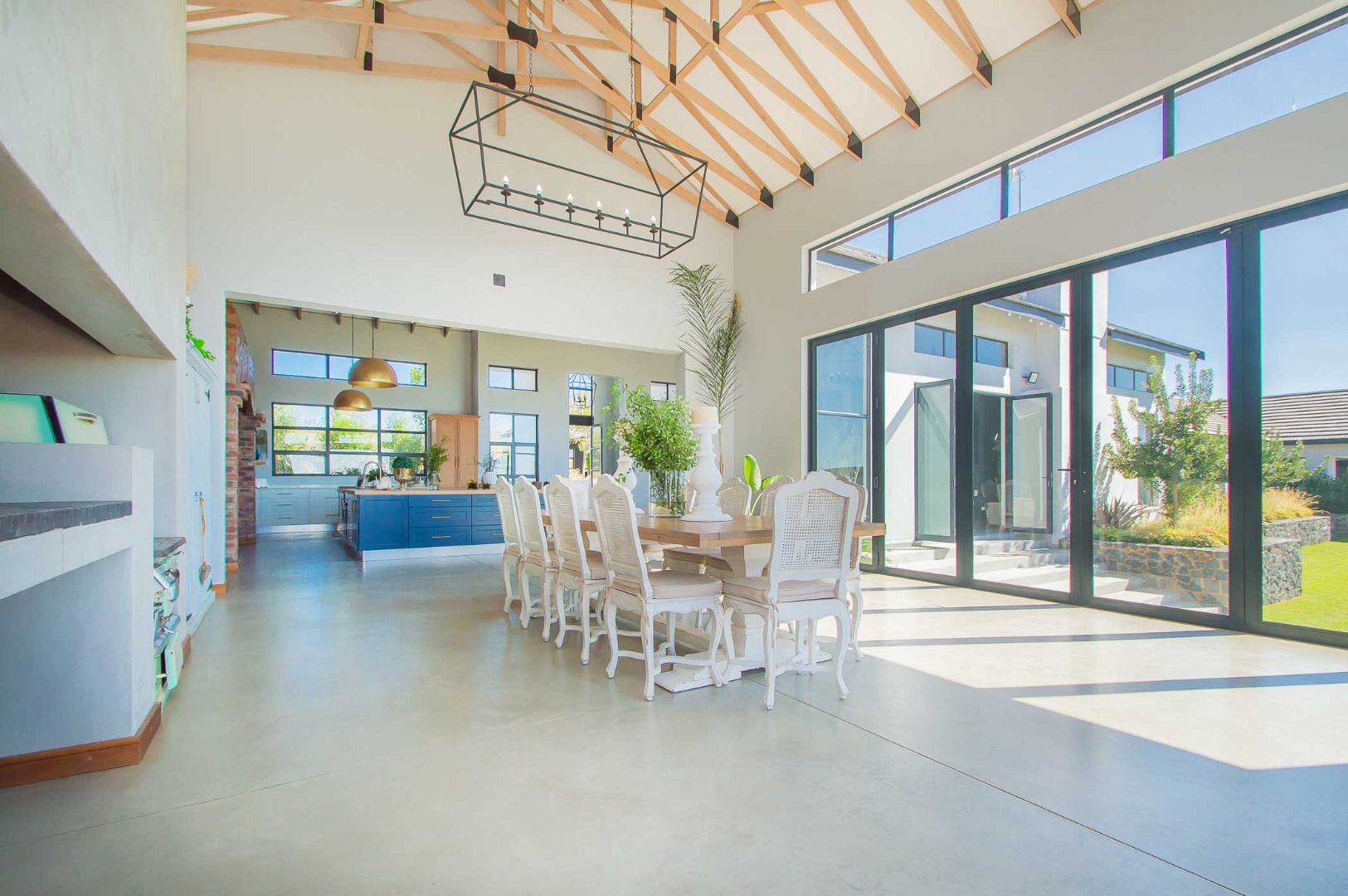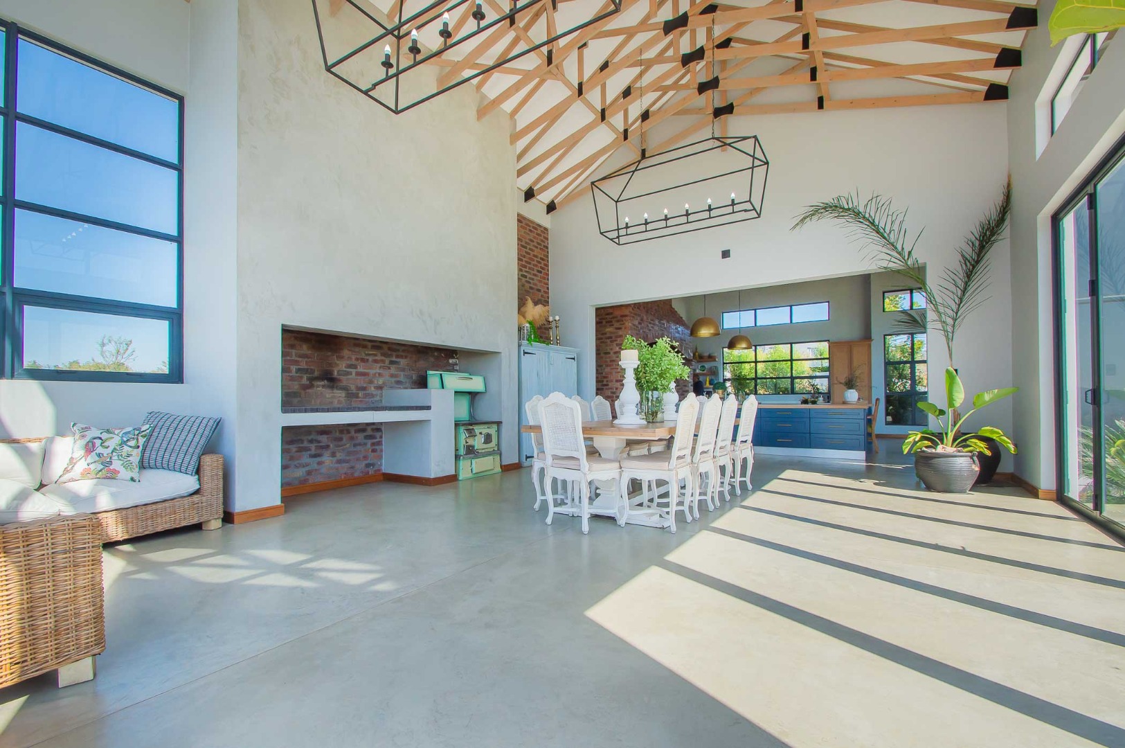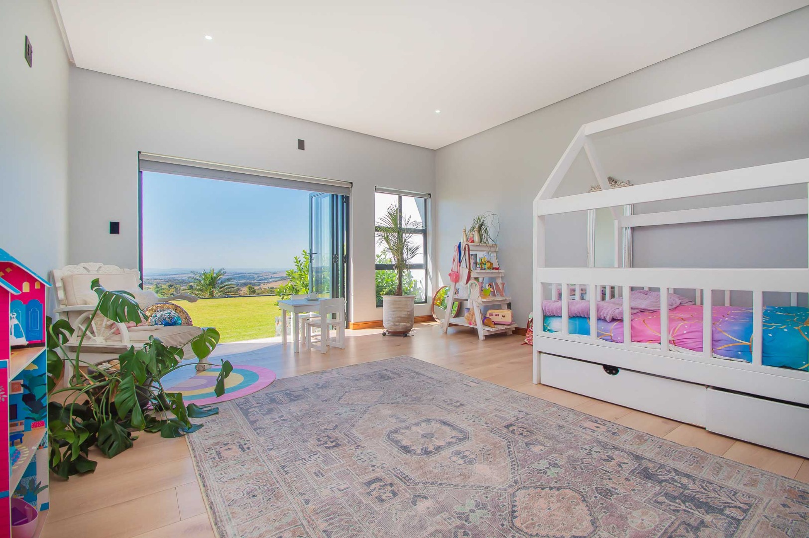 Set on a sprawling 2.9-hectare stand within the exclusive Thorny Hill Estate, this contemporary farm-style residence offers unmatched privacy, sustainability, and scenic beauty. Built just two years ago, the home features a thoughtfully designed open-plan layout with soaring ceilings, bringing in natural light and emphasizing the panoramic mountain views visible from every room.