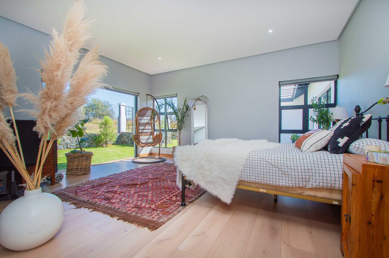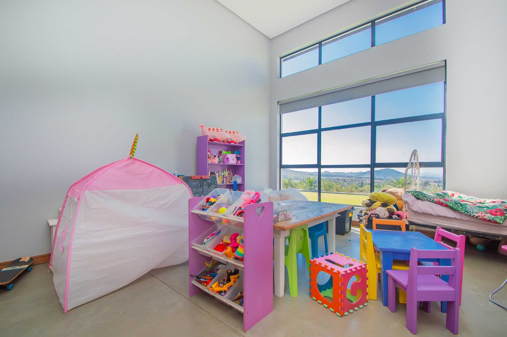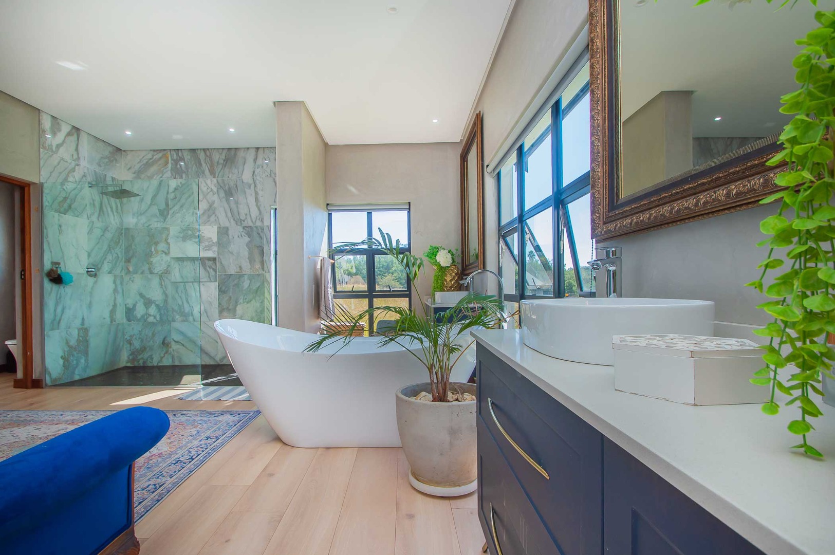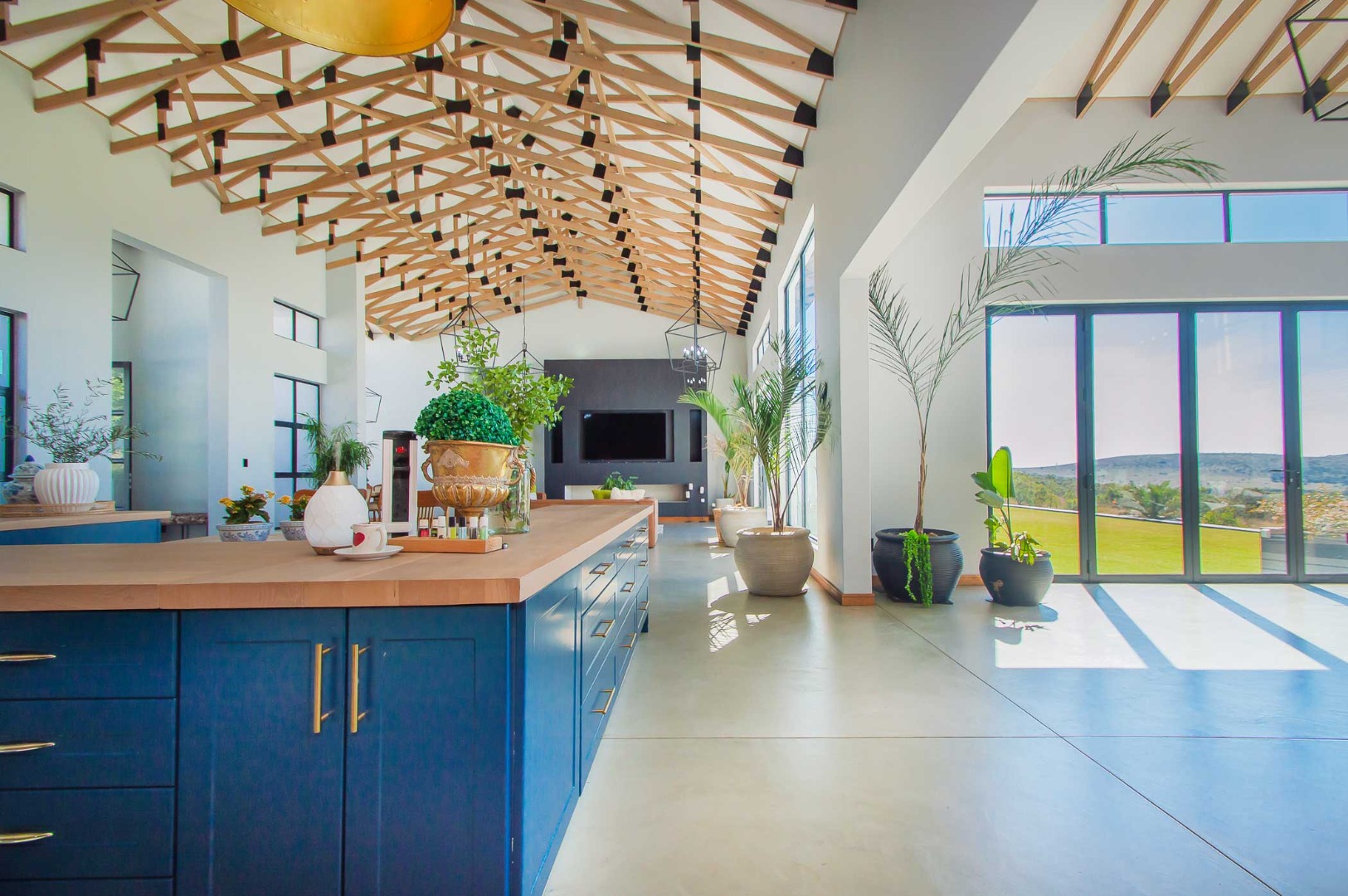 Set on a sprawling 2.9-hectare stand within the exclusive Thorny Hill Estate, this contemporary farm-style residence offers unmatched privacy, sustainability, and scenic beauty. Built just two years ago, the home features a thoughtfully designed open-plan layout with soaring ceilings, bringing in natural light and emphasizing the panoramic mountain views visible from every room.