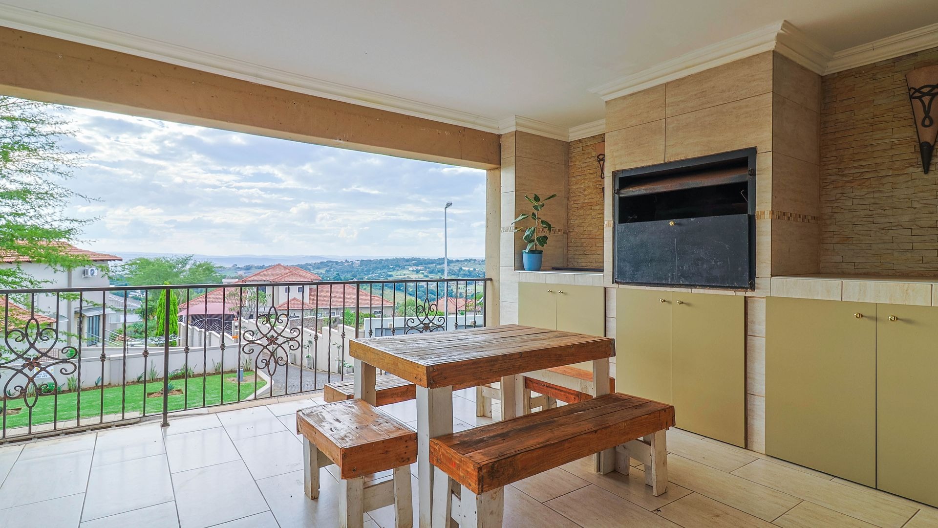 • A separate upstairs entertainment area inside the home, complete with a built-in bar, air-conditioning, balcony with views of the Cradle of Humankind, built-in braai, and a wood-burning fireplace, providing potential for a 2nd living/TV Room with generous space for a dining area if you wish.
