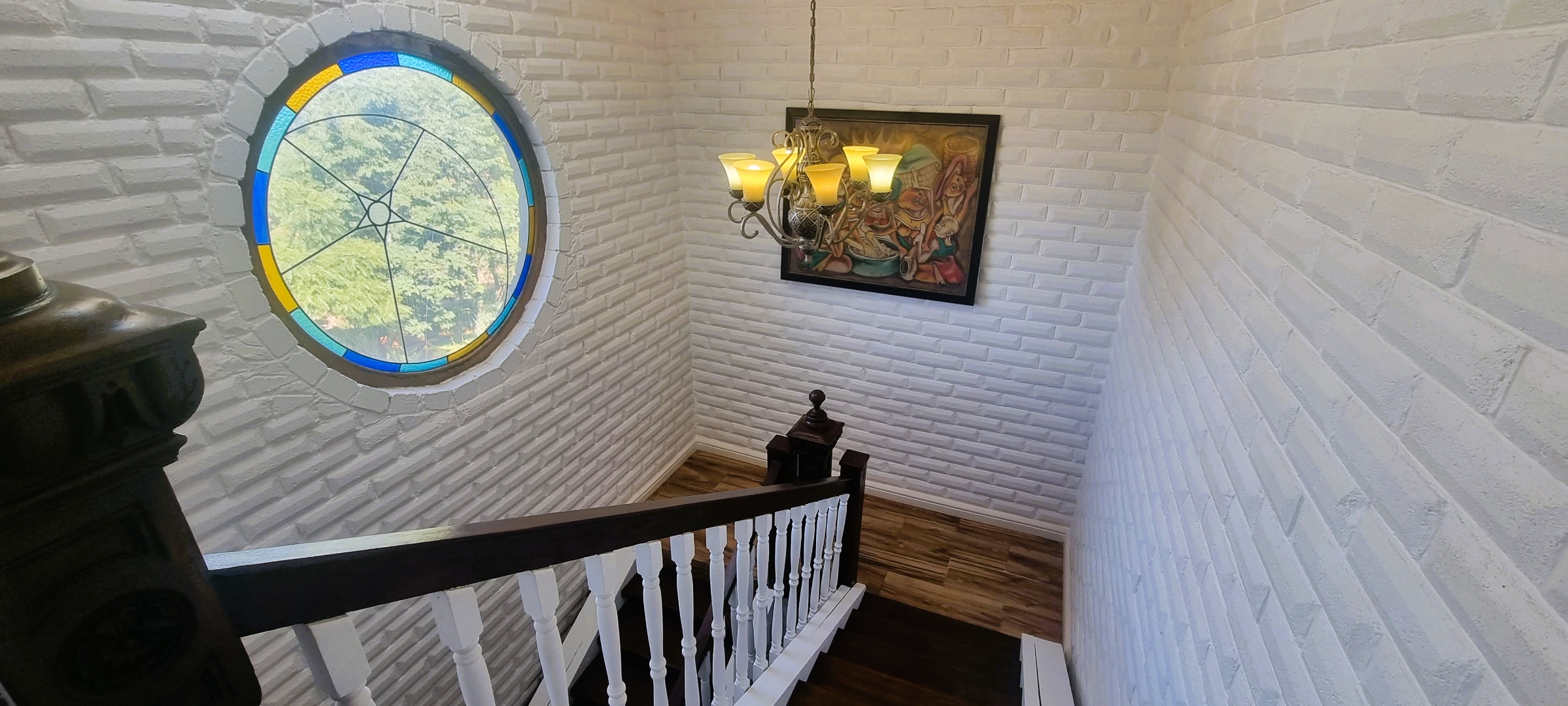 • Architectural Character: A handcrafted staircase made from reclaimed city hall wood and a stunning stained-glass window add historical charm and artistic flair.