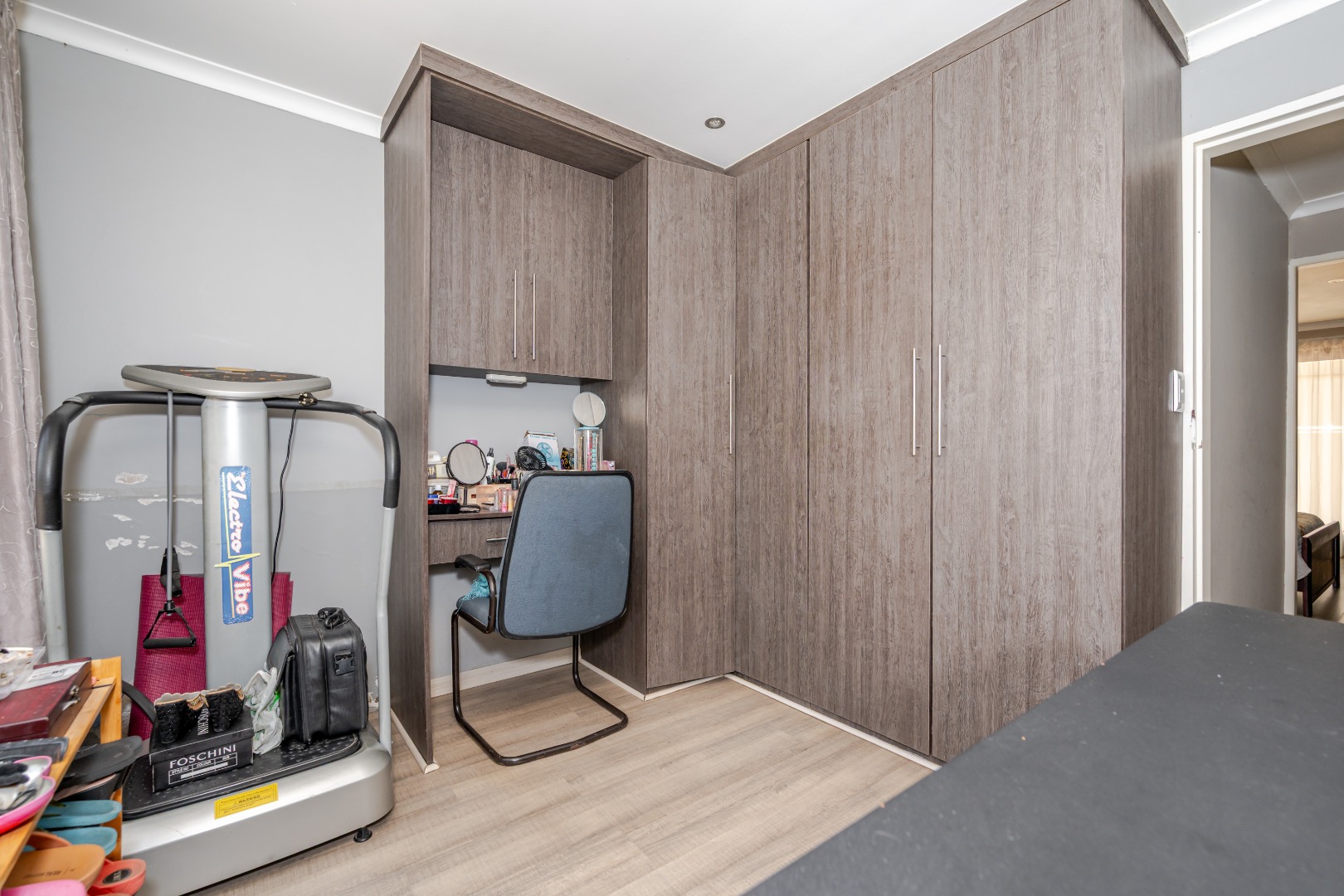 2 bedrooms, bathroom, guest toilet, kitchen with laundry and lounge, dining room with patio. This unit is 140 sqm with its own private entrance with carport and extra parking space. This can be an office of work from home space.