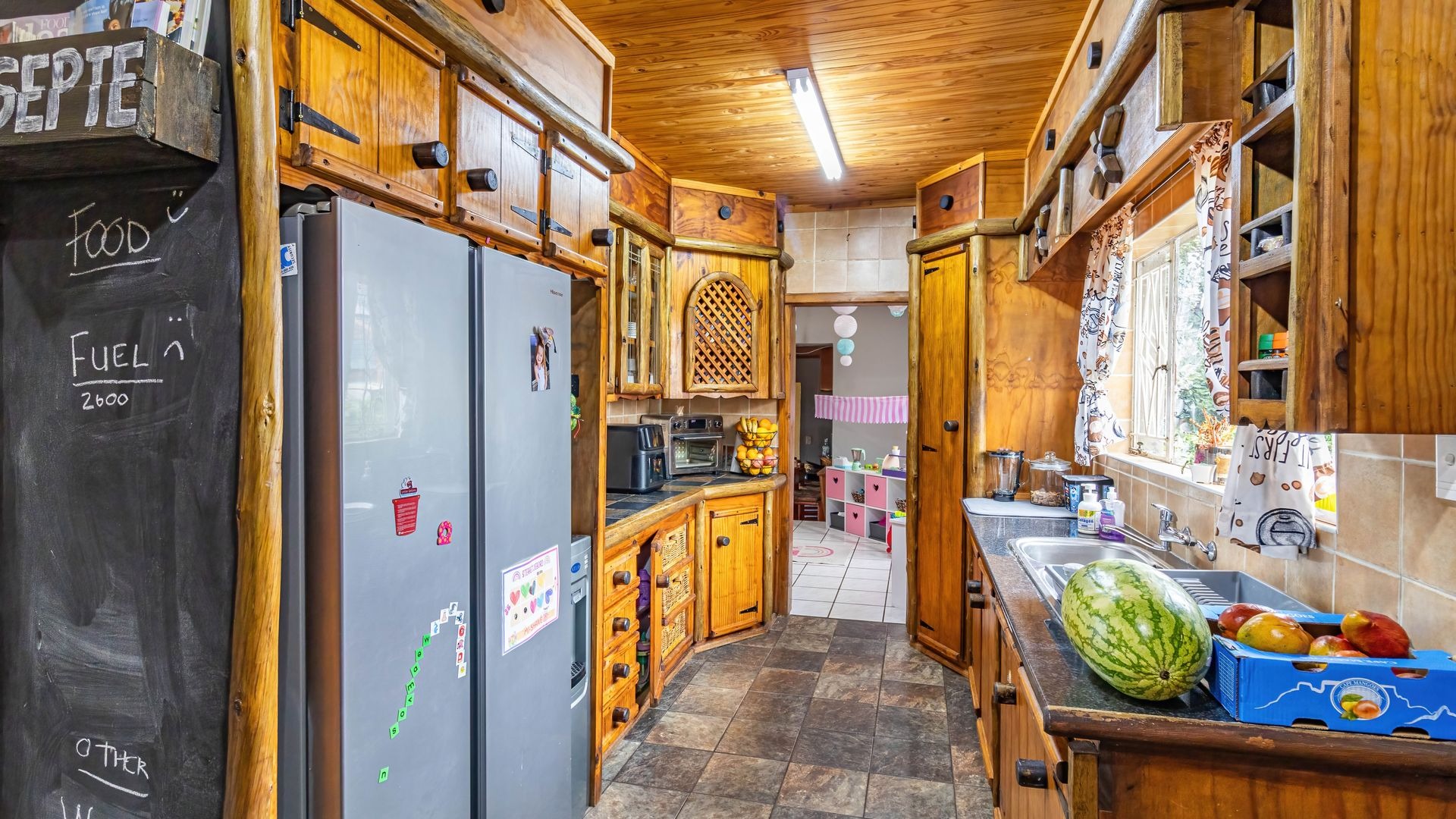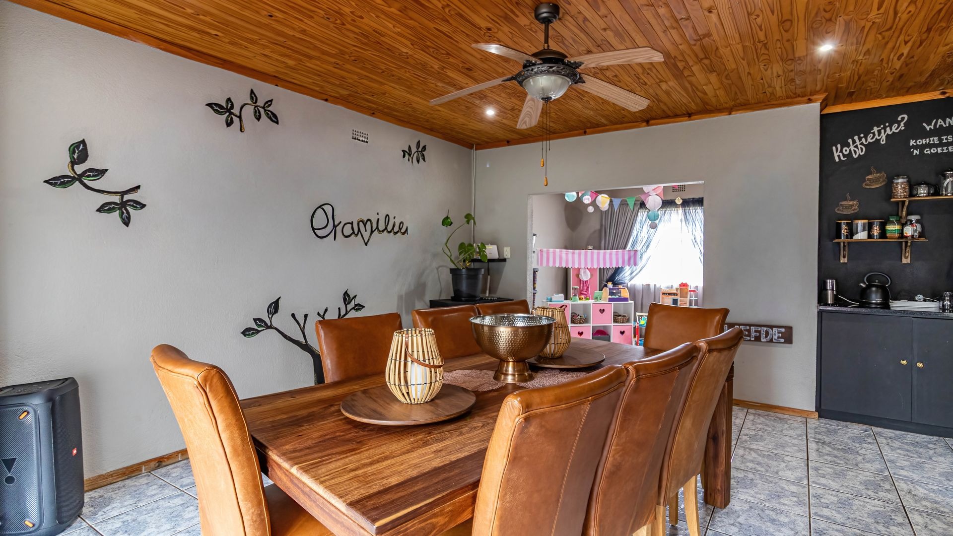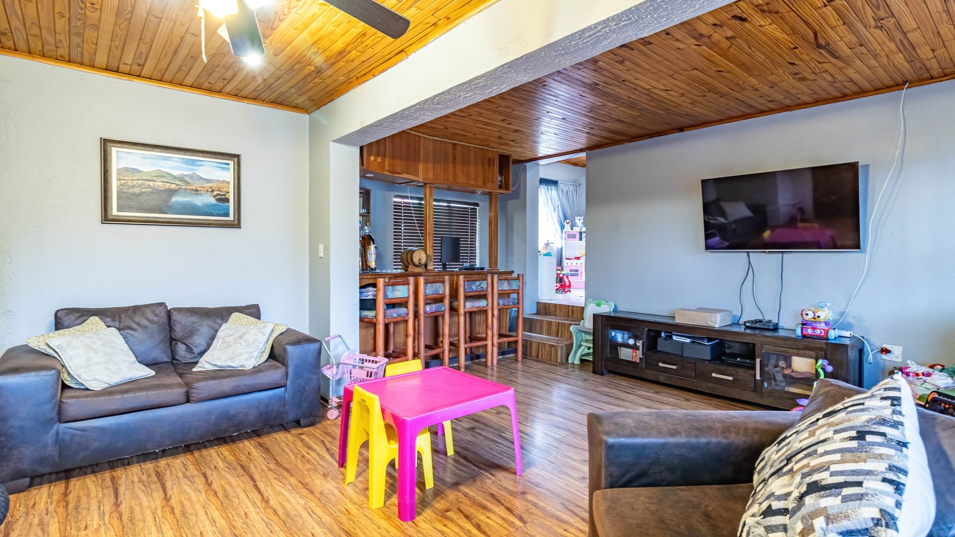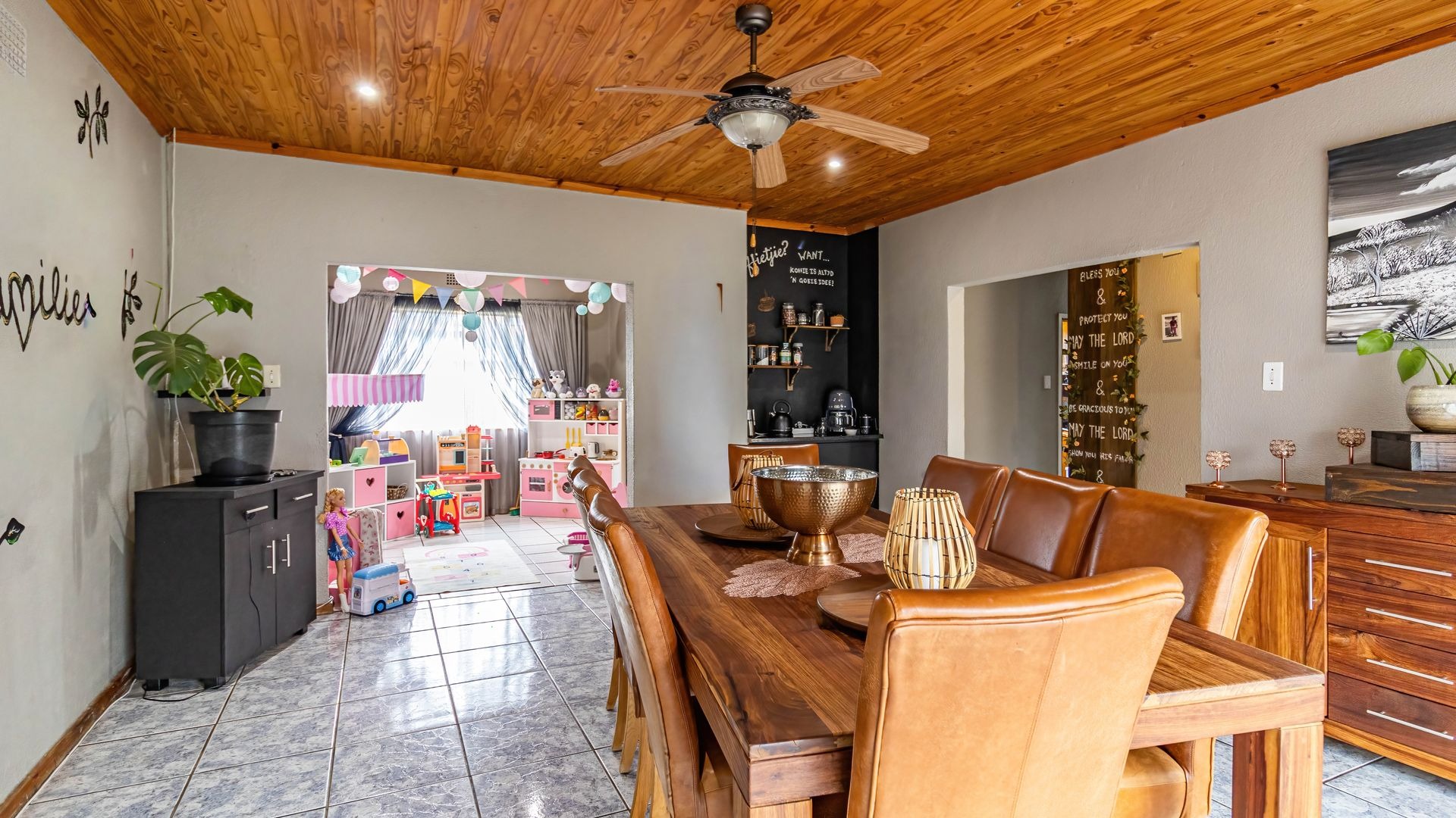 Accommodation comprises three well-proportioned bedrooms, offering private retreats for all family members. The property includes two bathrooms, with one conveniently en-suite to the master bedroom, plus a walk-in wardrobe and extra small room, ensuring comfort and privacy. This home is equipped with modern efficiencies, including solar panels and a battery inverter, (currently on rental plan but can be nogotiated) promoting energy independence. Fibre internet connectivity and satellite readiness are also in place.