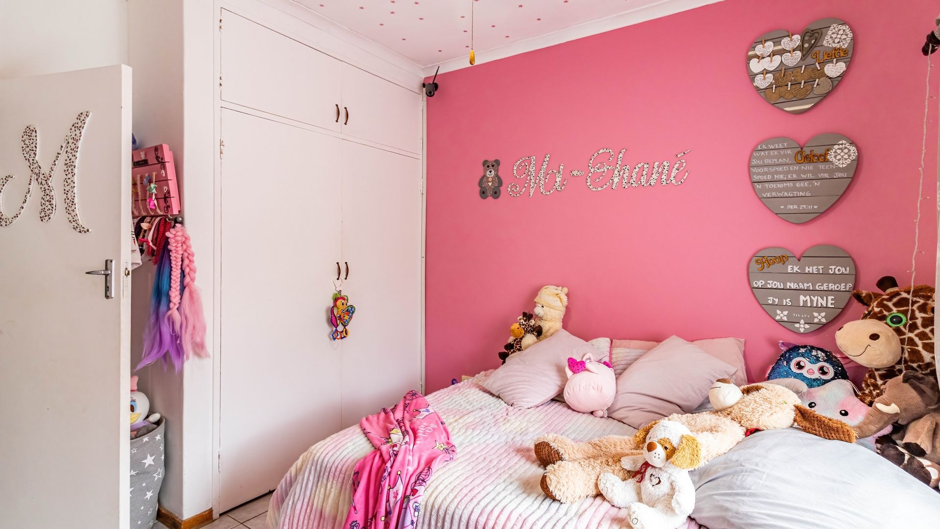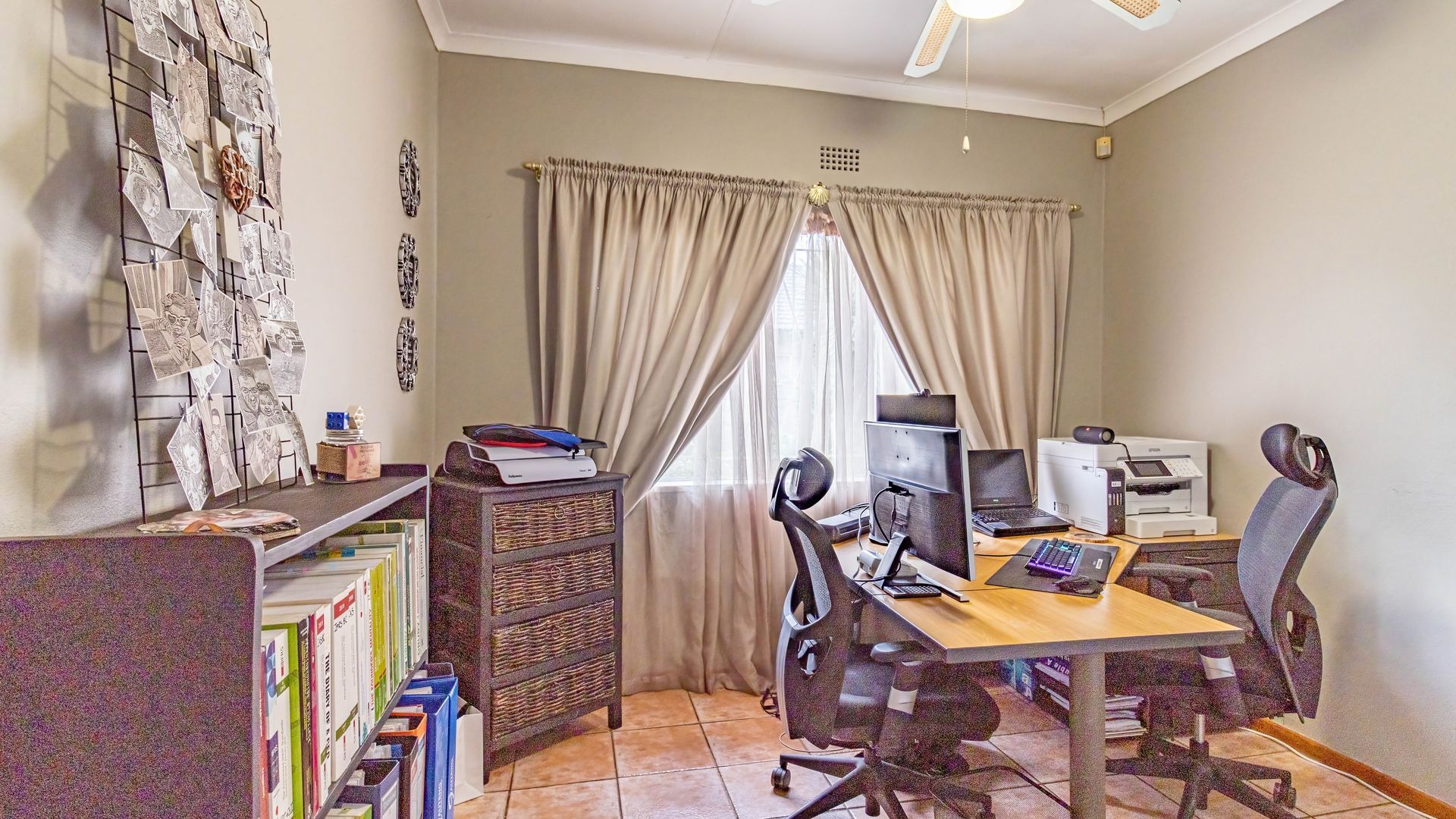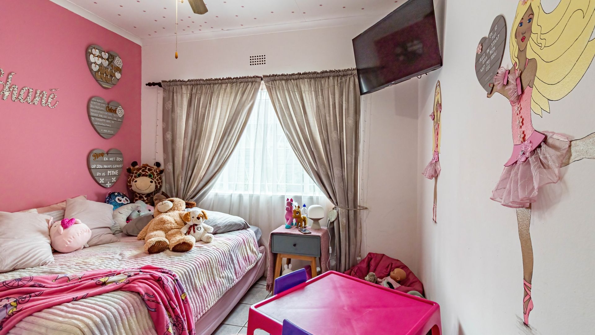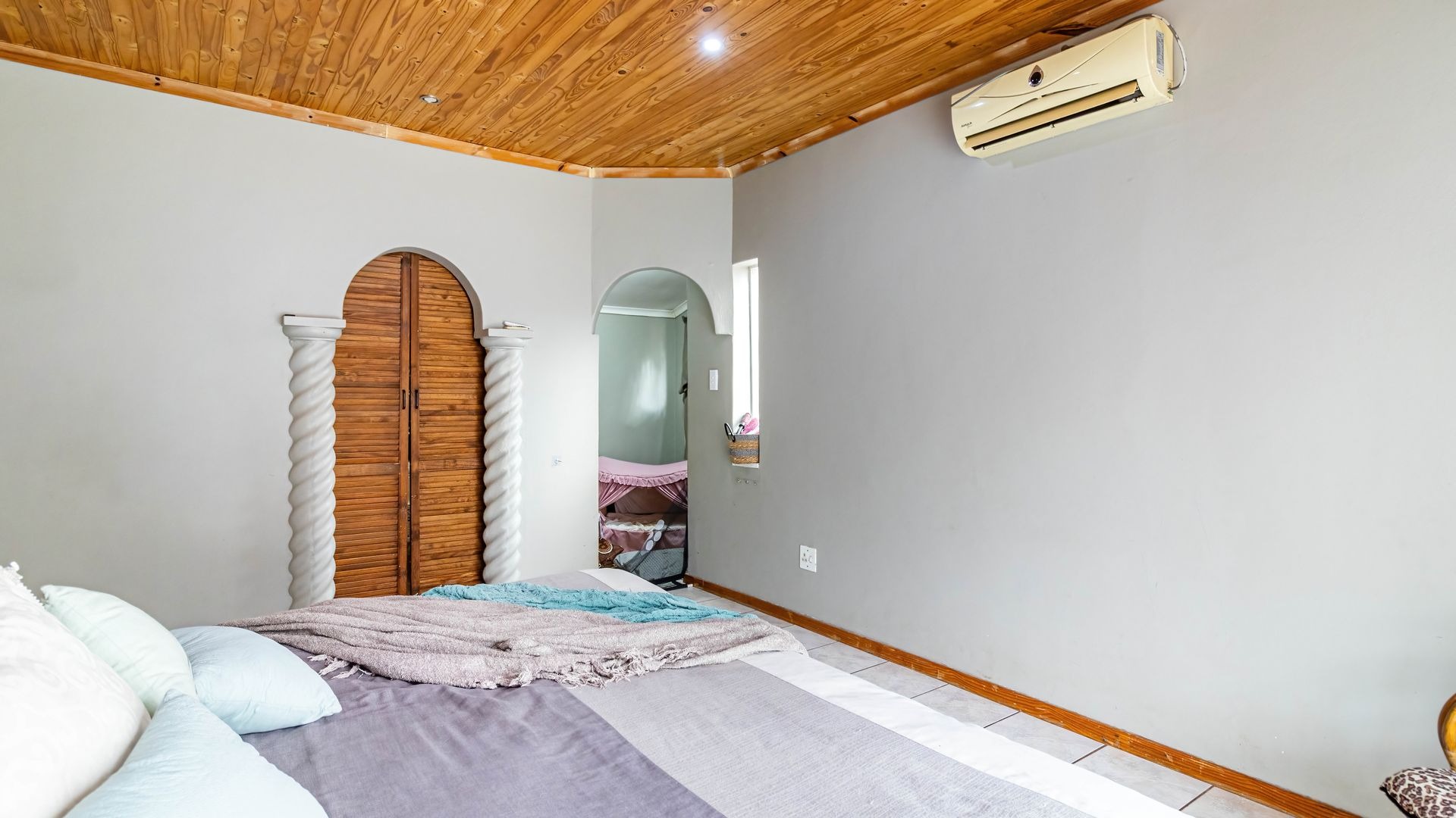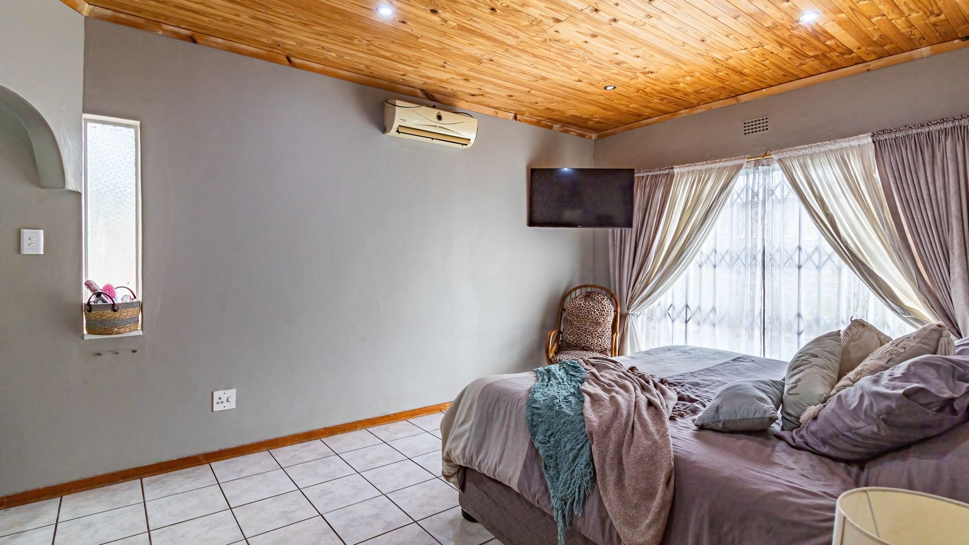 Accommodation comprises three well-proportioned bedrooms, offering private retreats for all family members. The property includes two bathrooms, with one conveniently en-suite to the master bedroom, plus a walk-in wardrobe and extra small room, ensuring comfort and privacy. This home is equipped with modern efficiencies, including solar panels and a battery inverter, (currently on rental plan but can be nogotiated) promoting energy independence. Fibre internet connectivity and satellite readiness are also in place.
