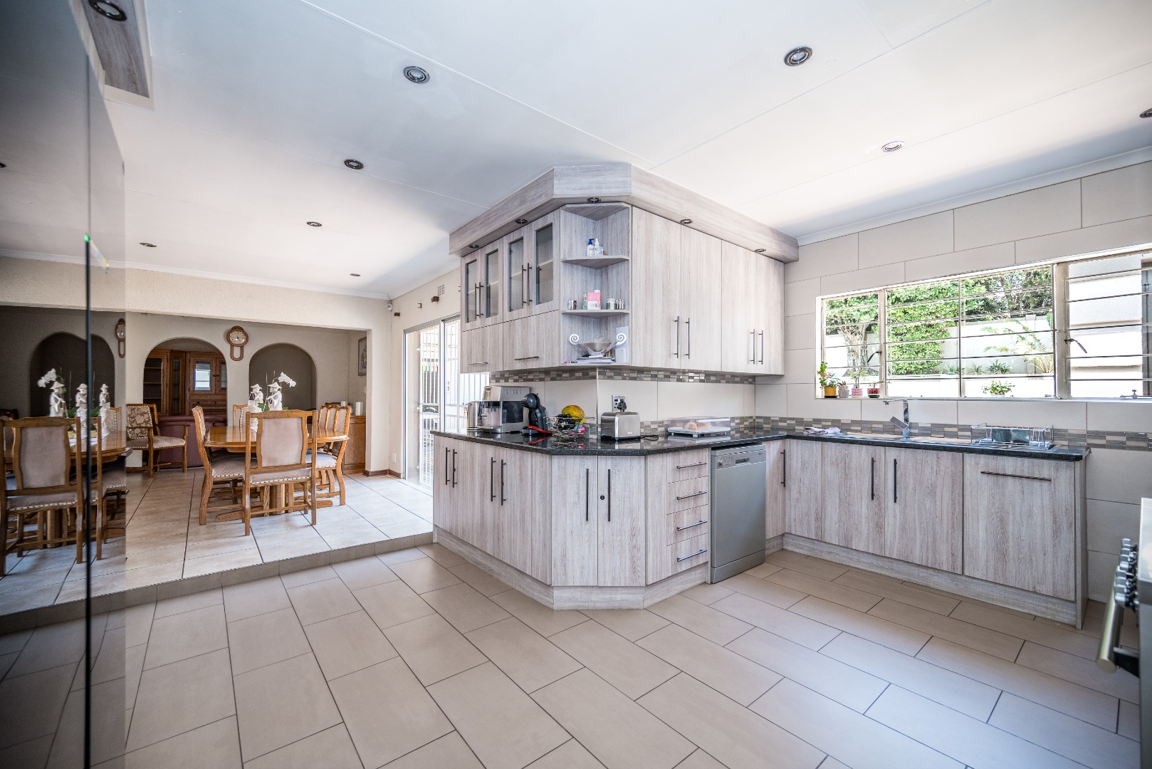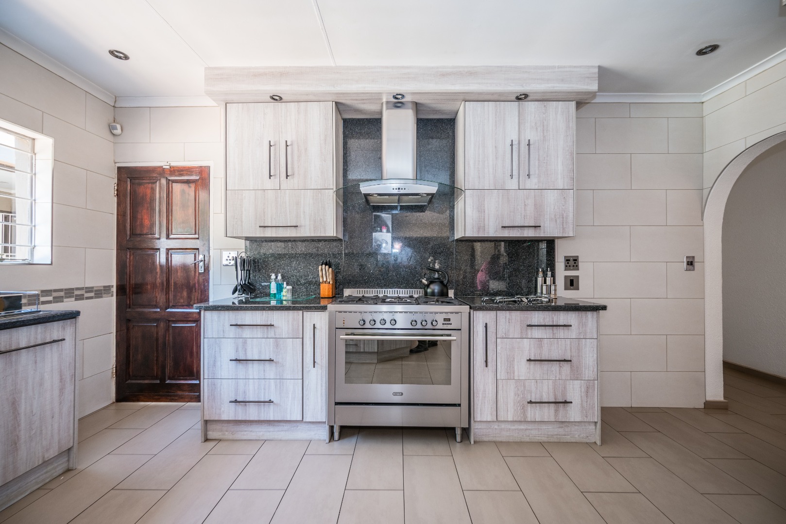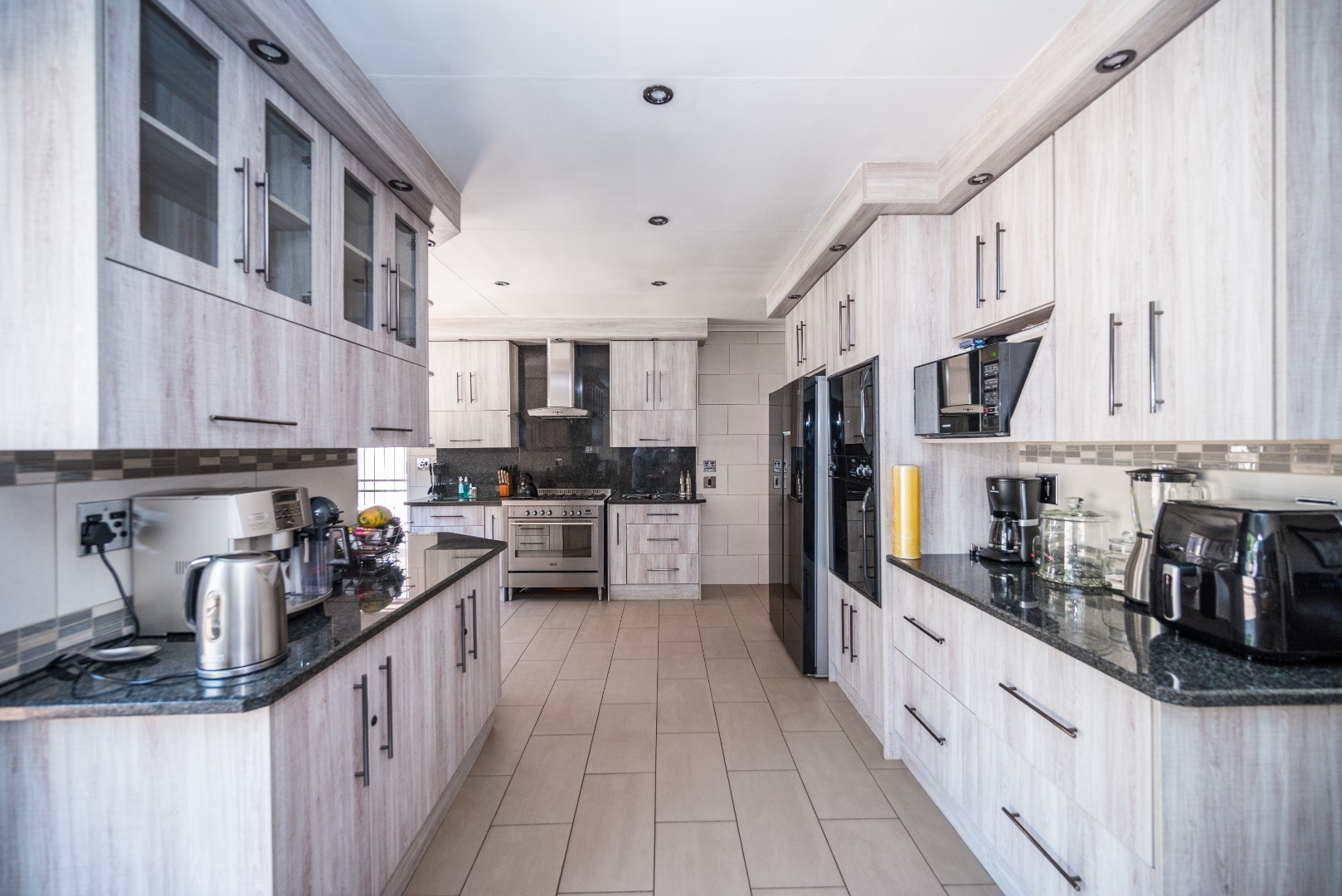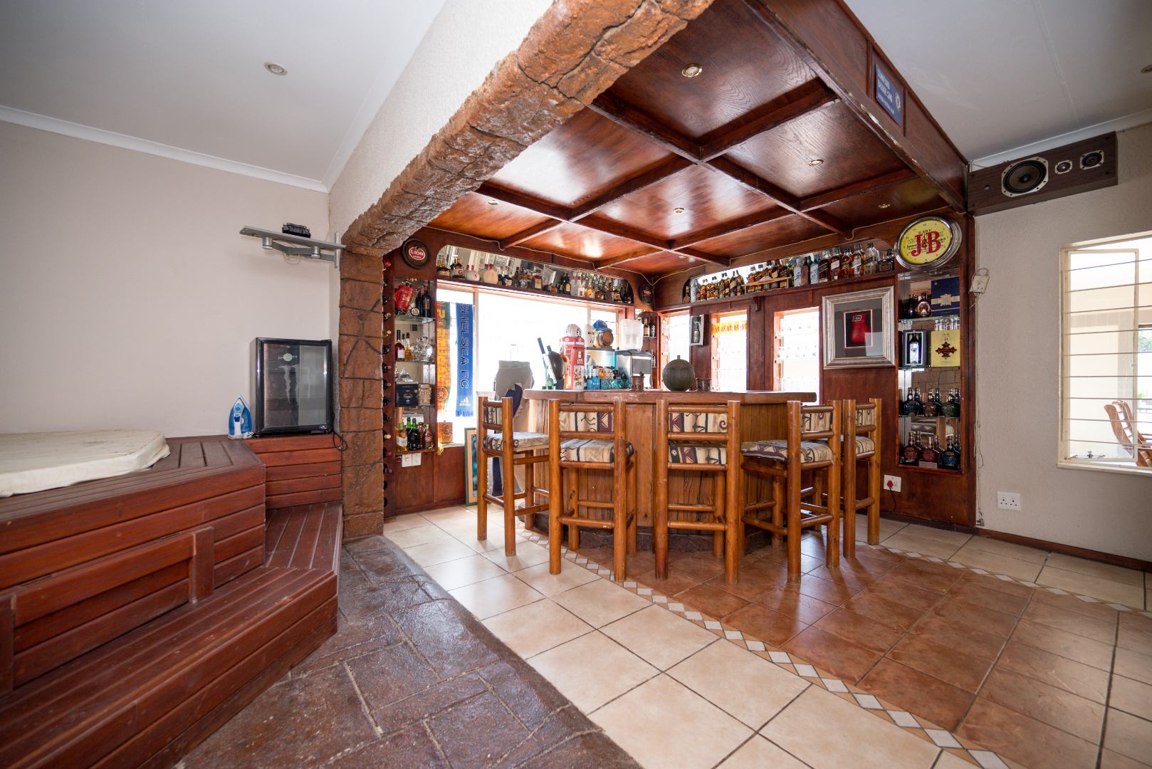 This is a stunning modern 4 bedroom/2bathroom family home with 170 m2 flat and sparkling pool. This family home offers 4 large sunny bedrooms with build-in-cupboards, The main bedroom comes with a full bathroom with bath and shower. There is a modern family bathroom. The kitchen is modern and well fitted and offers gas stove and double fitted ovens and granite tops and offers lots of countertops. The kitchen can fit double door fridge. The kitchen leads onto tiled dining room. There is a formal lounge and family room with large windows and sliding door to patio. There is a 170 sqm flat with 1 bedroom (previously a 3 bedroom), bathroom, kitchen, laundry and dining room with large living are with stacking doors. Full Domestic room with bathroom. There is a sparkling pool, Jacuzzi and Boma. Storeroom. There are a tandem garage and 4 carports. The garden is well maintained and there is a borehole and pop-up sprinkler system. Yoyo tank with water purifier system. The 5 KVA Invertor with Lithium batteries and 8 Solar panels. This property offers a lot of space and extra's. This is a must view property. Phone today to view!!!!!