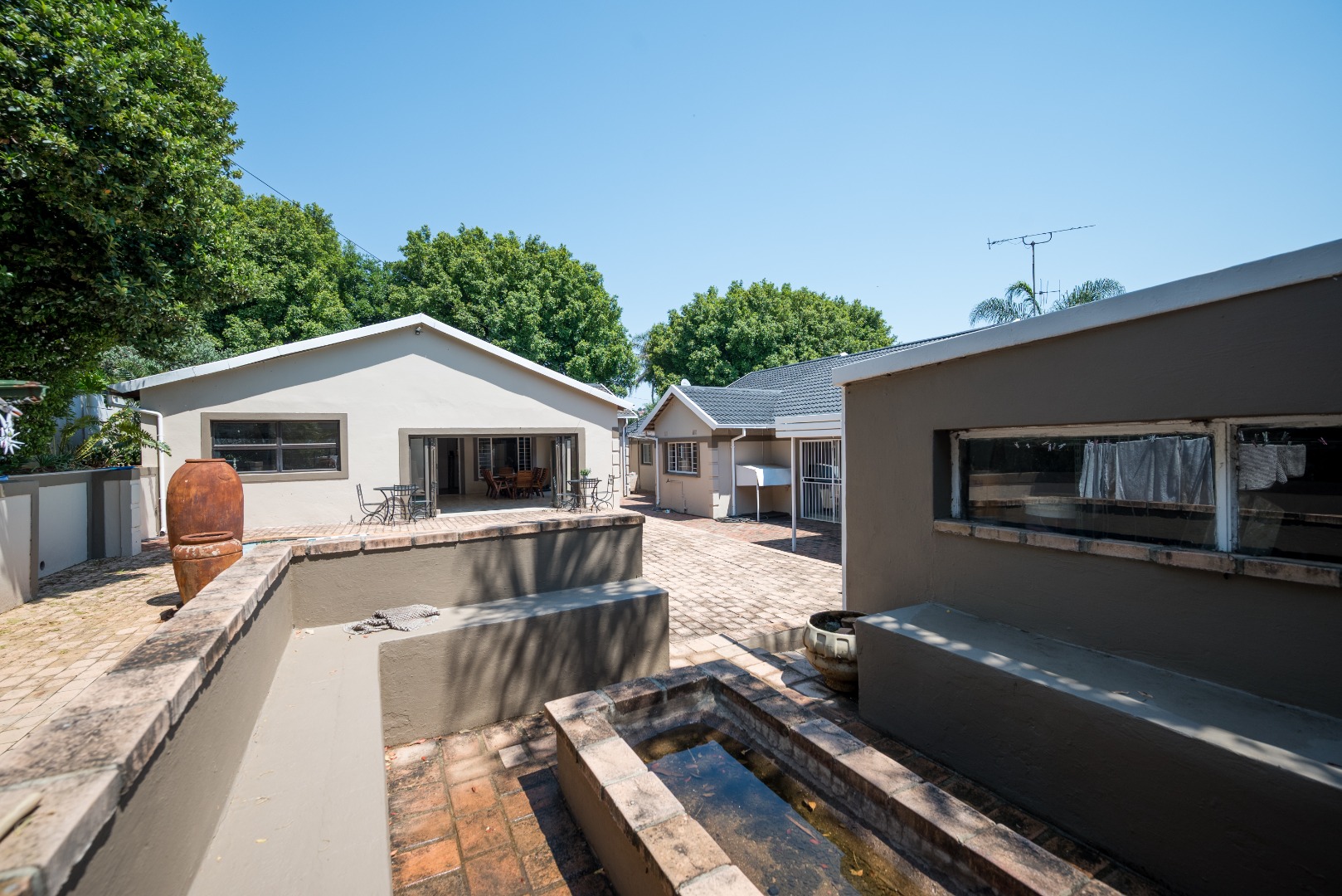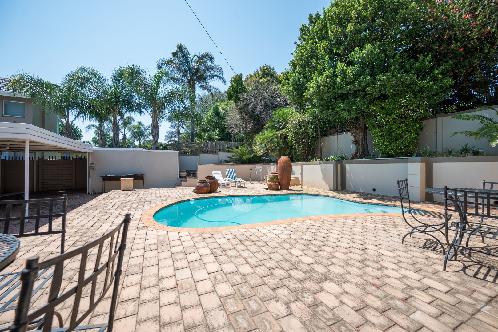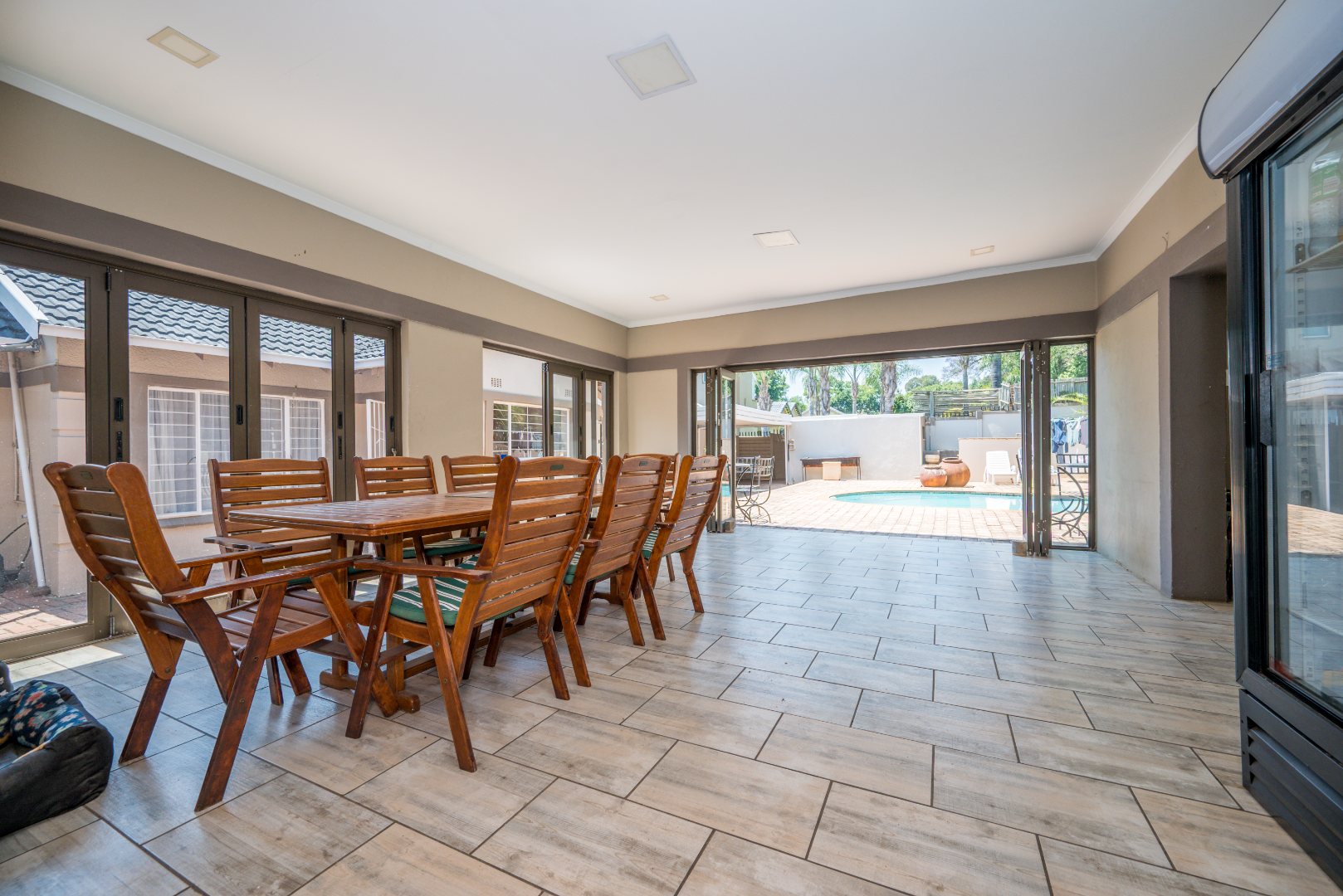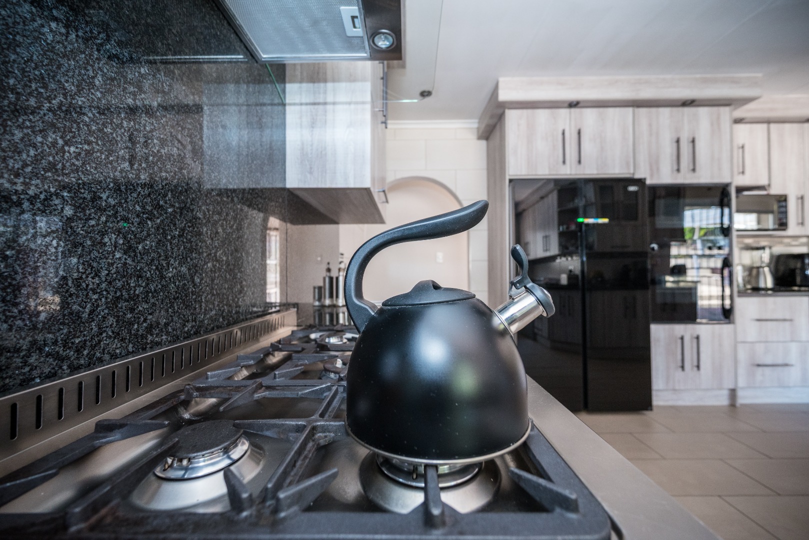 This is a stunning modern 4 bedroom/2bathroom family home with 170 m2 flat and sparkling pool. This family home offers 4 large sunny bedrooms with build-in-cupboards, The main bedroom comes with a full bathroom with bath and shower. There is a modern family bathroom. The kitchen is modern and well fitted and offers gas stove and double fitted ovens and granite tops and offers lots of countertops. The kitchen can fit double door fridge. The kitchen leads onto tiled dining room. There is a formal lounge and family room with large windows and sliding door to patio. There is a 170 sqm flat with 1 bedroom (previously a 3 bedroom), bathroom, kitchen, laundry and dining room with large living are with stacking doors. Full Domestic room with bathroom. There is a sparkling pool, Jacuzzi and Boma. Storeroom. There are a tandem garage and 4 carports. The garden is well maintained and there is a borehole and pop-up sprinkler system. Yoyo tank with water purifier system. The 5 KVA Invertor with Lithium batteries and 8 Solar panels. This property offers a lot of space and extra's. This is a must view property. Phone today to view!!!!!
