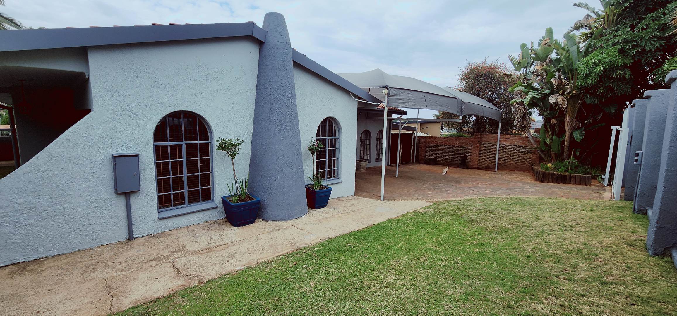Discover this inviting family home situated in the established suburban area of Silverfields, Krugersdorp. The property presents a welcoming kerb appeal with its light-coloured exterior, mature landscaping, and a paved driveway leading to a double garage and additional parking for four vehicles.