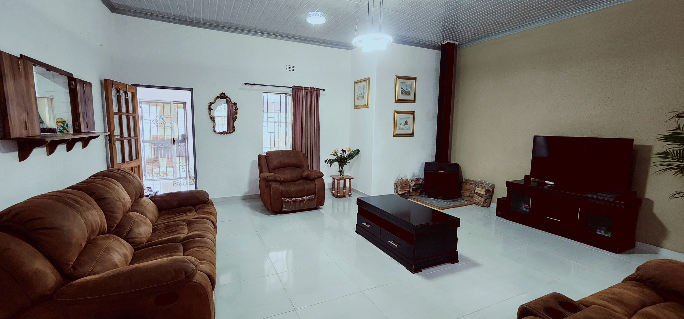 Step outside to a private outdoor oasis designed for leisure and social gatherings. A spacious covered patio features a built-in braai area, overlooking a refreshing swimming pool.