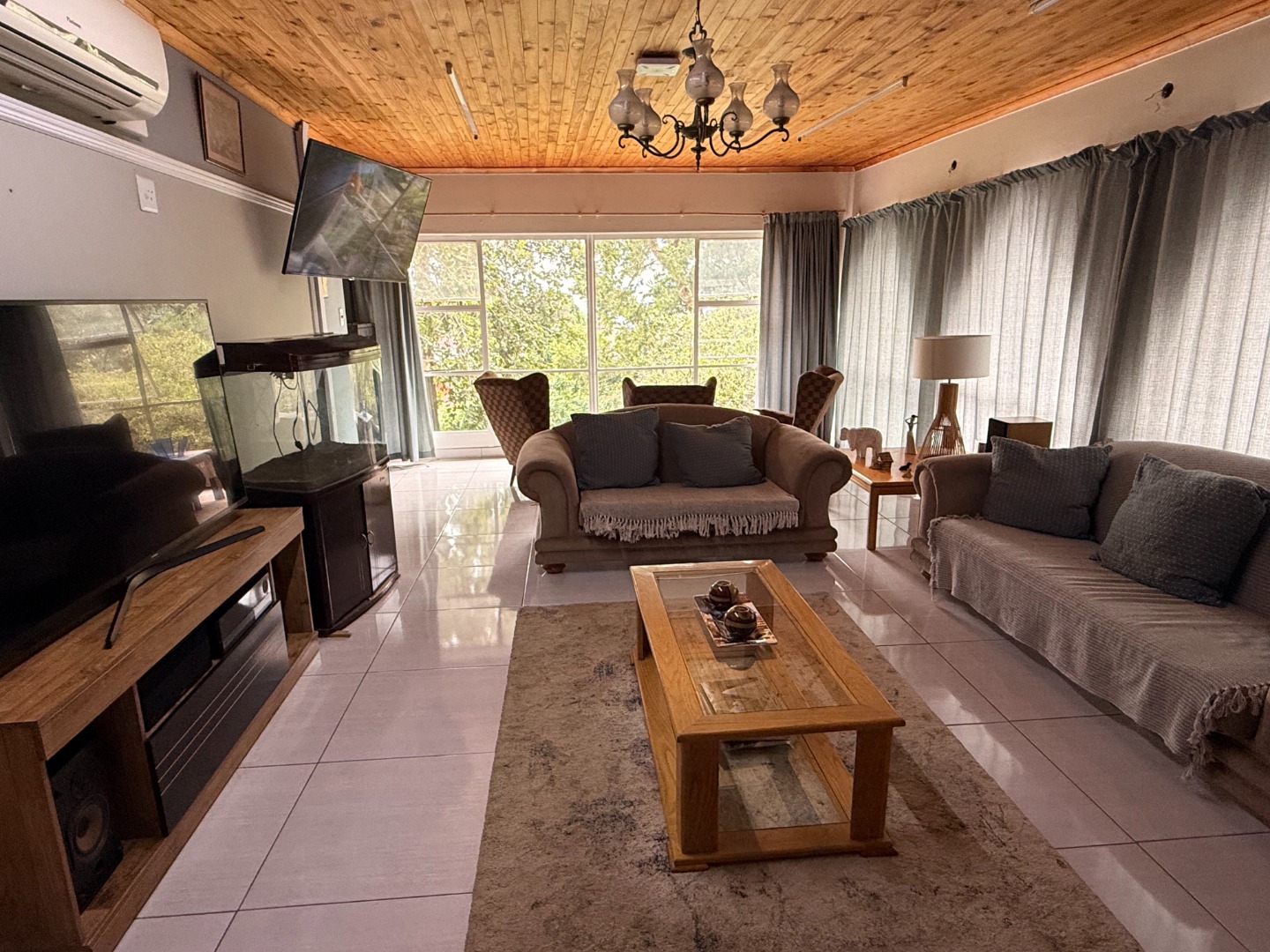 Step outside to a private oasis with a refreshing swimming pool, welcoming patio, and built-in braai, perfect for outdoor entertaining. The established garden offers a serene backdrop. Practical amenities include four garages, staff quarters, and a study. Modern comforts like air conditioning and solar panels ensure an efficient lifestyle. Security is well-addressed with burglar bars, a security gate, and a fully walled perimeter.