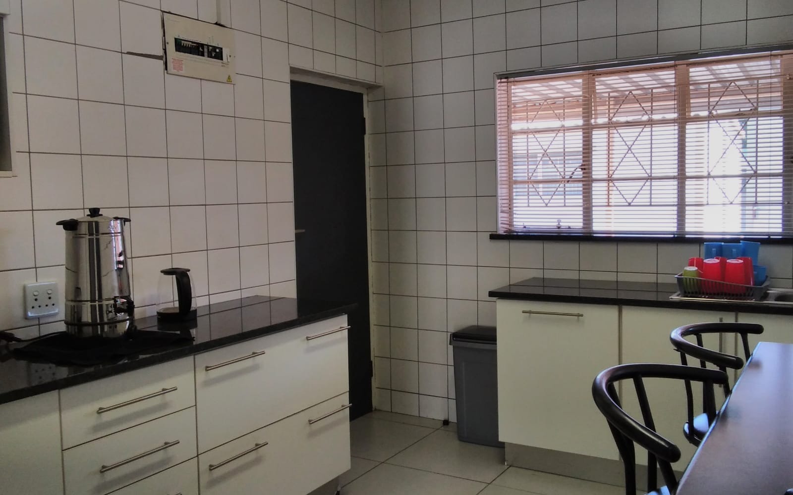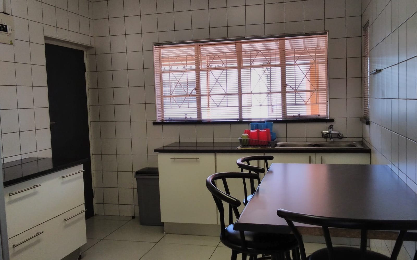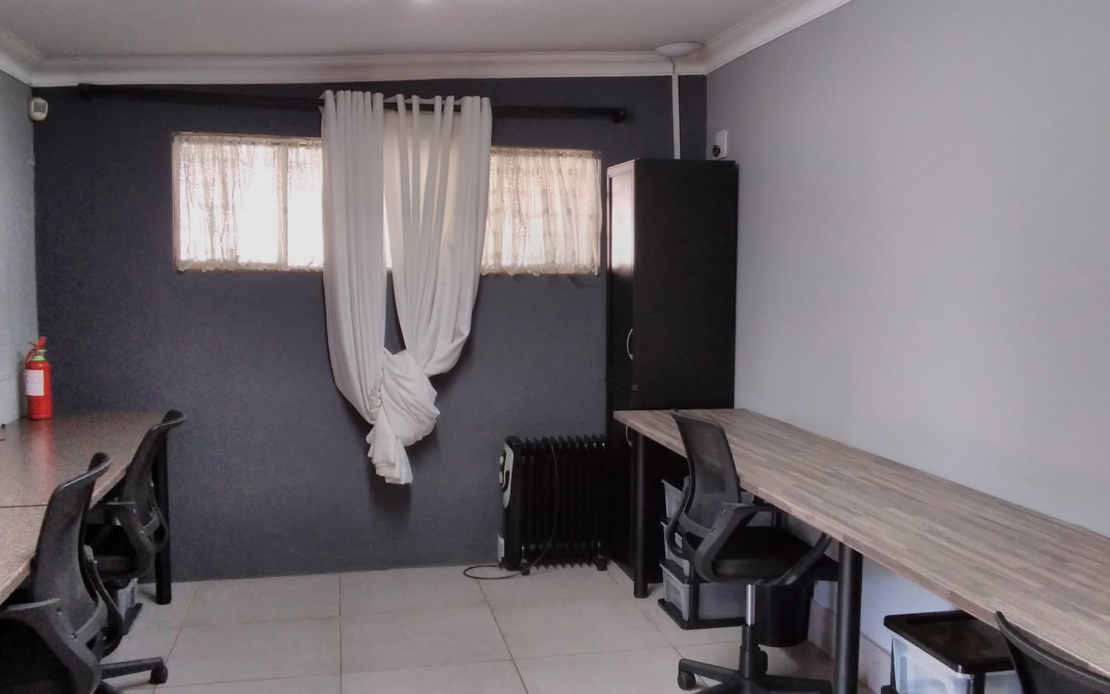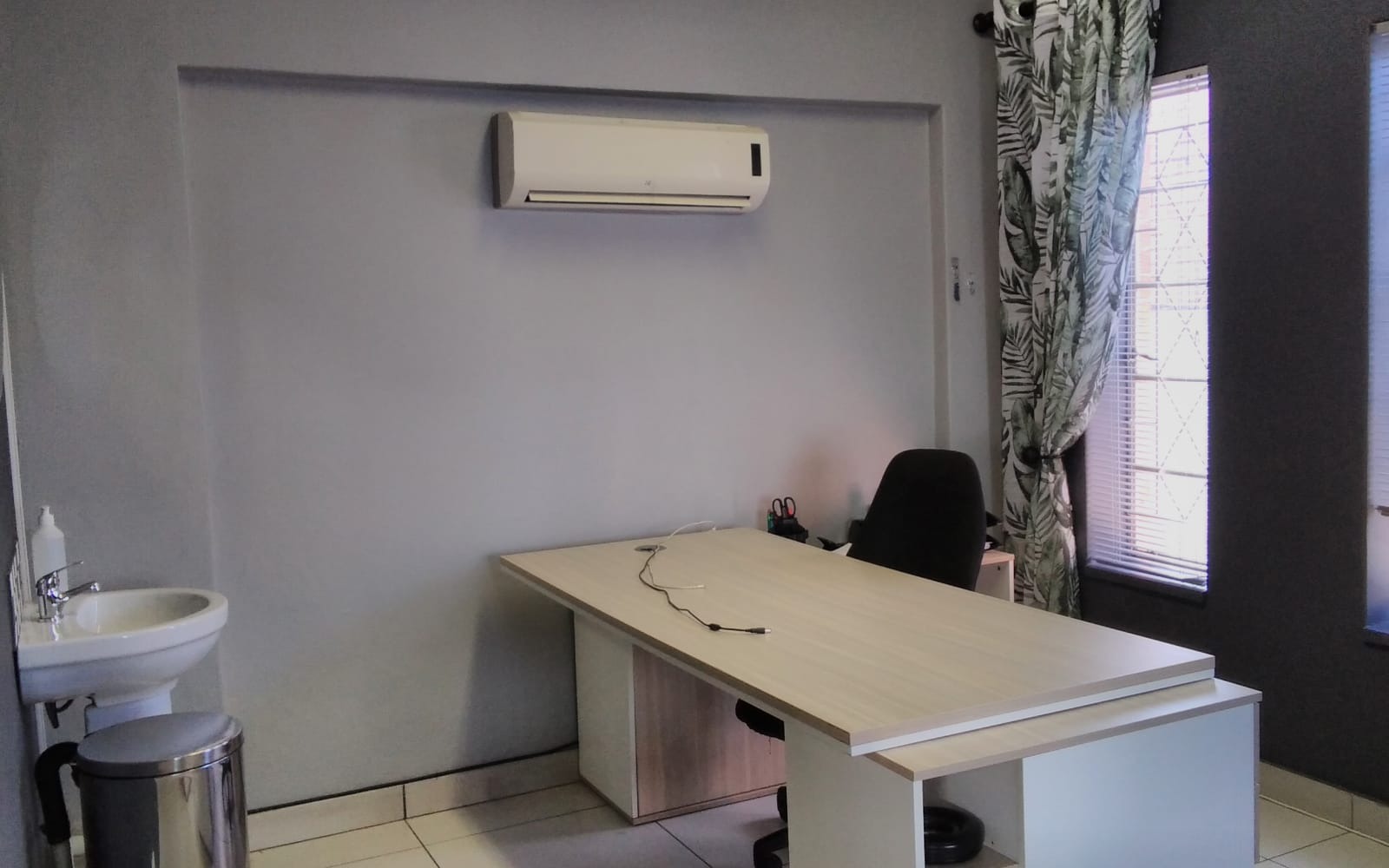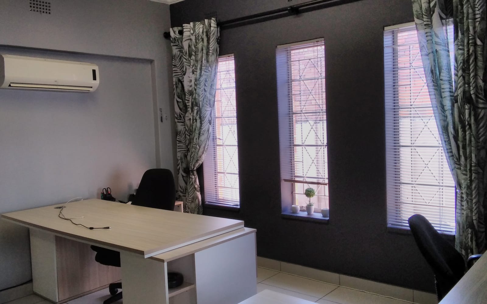 The property features 5 spacious offices, comfortably accommodating approximately 30 staff members, making it ideal for a call Centre, security company, legal practice, or similar professional operations. Each office is neatly tiled and fitted with blinds, creating a clean and professional working environment.