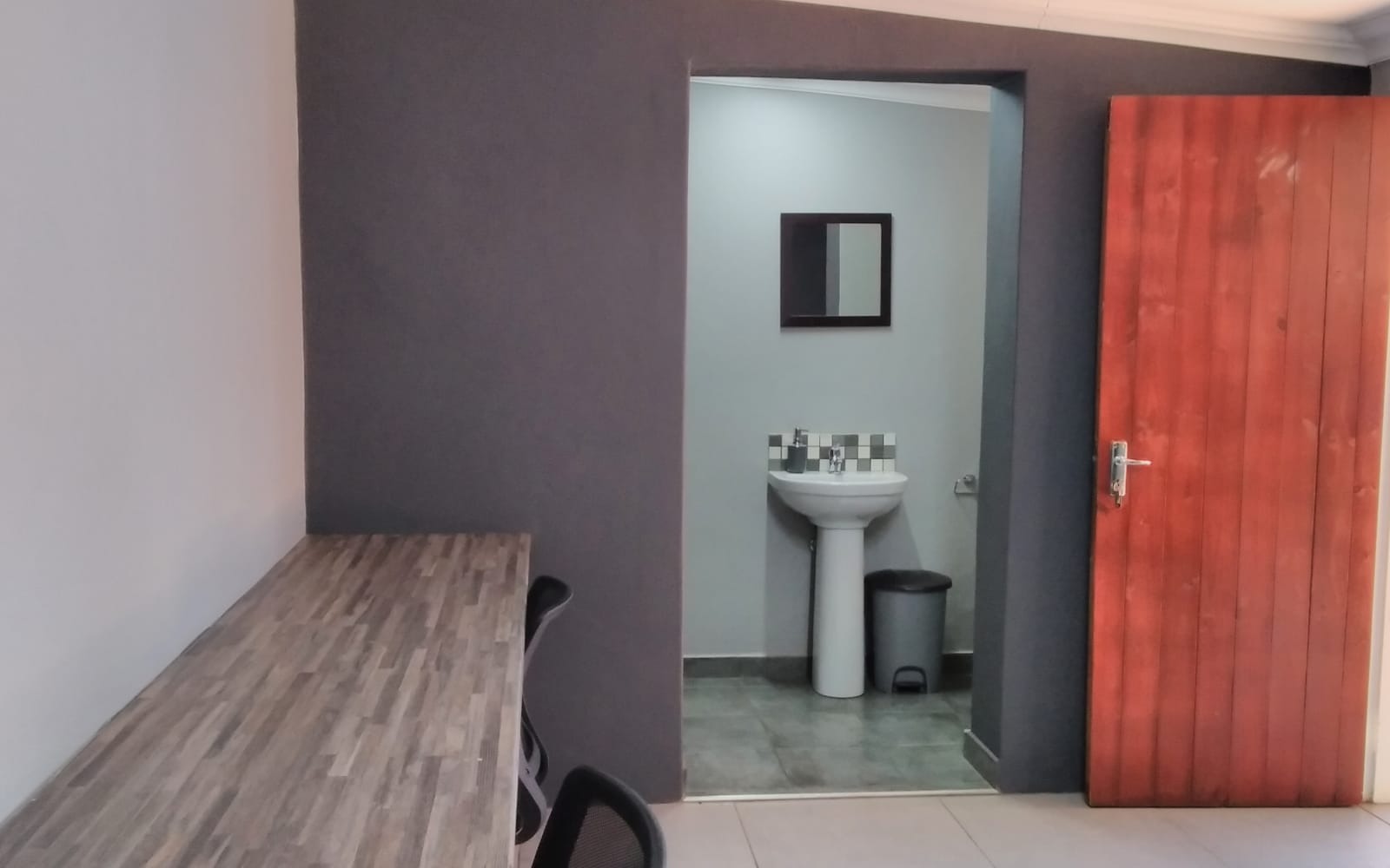 Additional features include a covered outdoor patio with a built-in braai, perfect for staff breaks or informal meetings.
