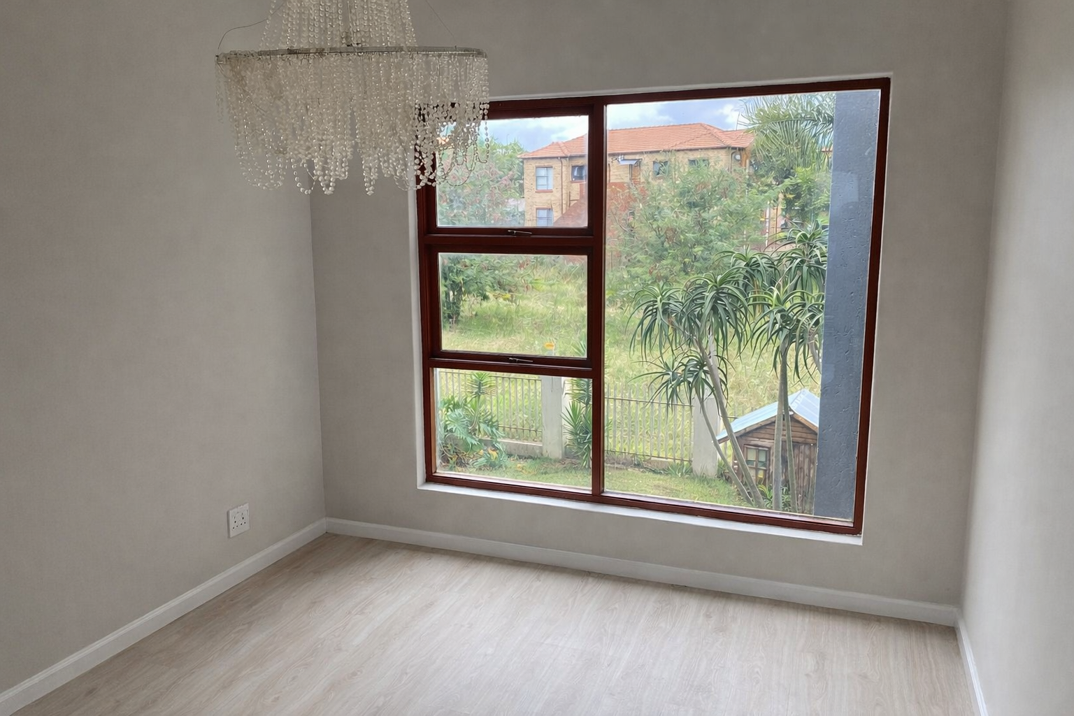 Discover modern living in this inviting 3-bedroom, 2-bathroom residence located within a secure complex in Sugar Bush Estate, Krugersdorp. Boasting a generous floor size of 204 sqm, this home offers a blend of comfort and contemporary design, ideal for families seeking a tranquil yet connected lifestyle. The interior features a well-appointed layout with two spacious lounges and a dedicated dining area, providing ample space for relaxation and entertaining. The modern kitchen is a highlight, showcasing stylish two-tone wood and sage green cabinetry, dark granite countertops, a built-in oven, stovetop, and a convenient peninsula for casual dining or food preparation. Light tiled flooring and elegant chandeliers enhance the sophisticated ambiance throughout the main living areas. Accommodation comprises three comfortable bedrooms, including an en-suite bathroom for added privacy and convenience. A second full bathroom and a guest toilet cater to family and visitors. The bathrooms are designed with modern fixtures, including vessel sinks and full tiling, ensuring a clean and contemporary feel. Step outside to enjoy multiple outdoor spaces, including a spacious tiled patio with scenic views of the residential area and distant hills. An additional covered outdoor entertainment area features a built-in braai and an integrated sink with cabinetry, perfect for hosting gatherings. The property also benefits from a dedicated parking bay and allows pets, adding to its appeal. Situated within a secure estate, residents benefit from 24-hour security and a security post, ensuring peace of mind. The property is also fibre-ready, providing high-speed internet connectivity. Sugar Bush Estate offers a desirable community environment in Krugersdorp, known for its residential appeal and accessibility. Key Features: * 3 Bedrooms, 2 Bathrooms (1 En-suite) * Modern Kitchen with Granite Countertops * Two Lounges and Dining Area * Multiple Tiled Patios with Built-in Braai * Scenic Views * Secure Complex with 24-hour Security * Fibre-Ready Connectivity * Guest Toilet * Pet-Friendly * 204 sqm Floor Size