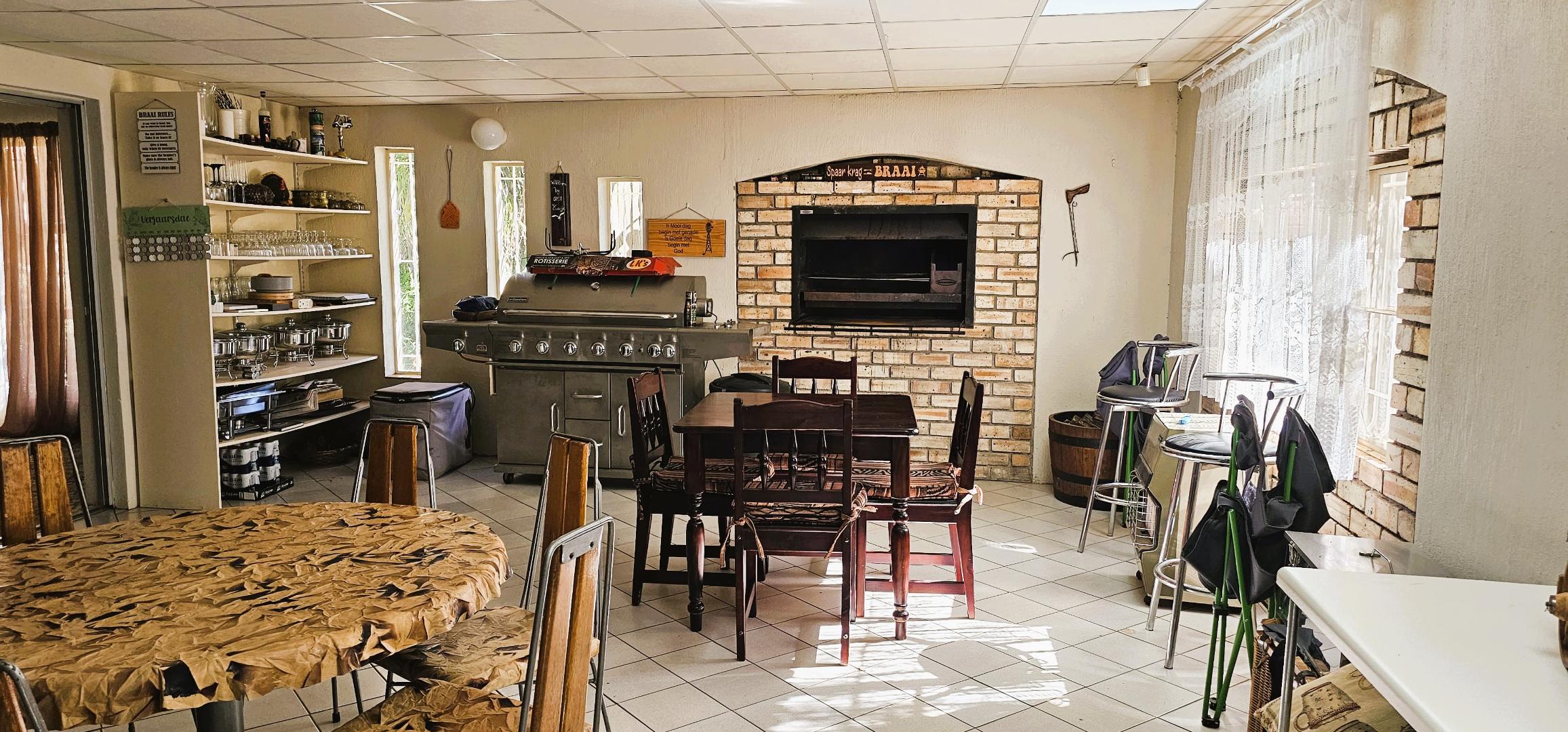 An indoor entertainment room featuring a built-in braai and bar, plus an outdoor lapa with a guest toilet—perfect for gatherings all year round.