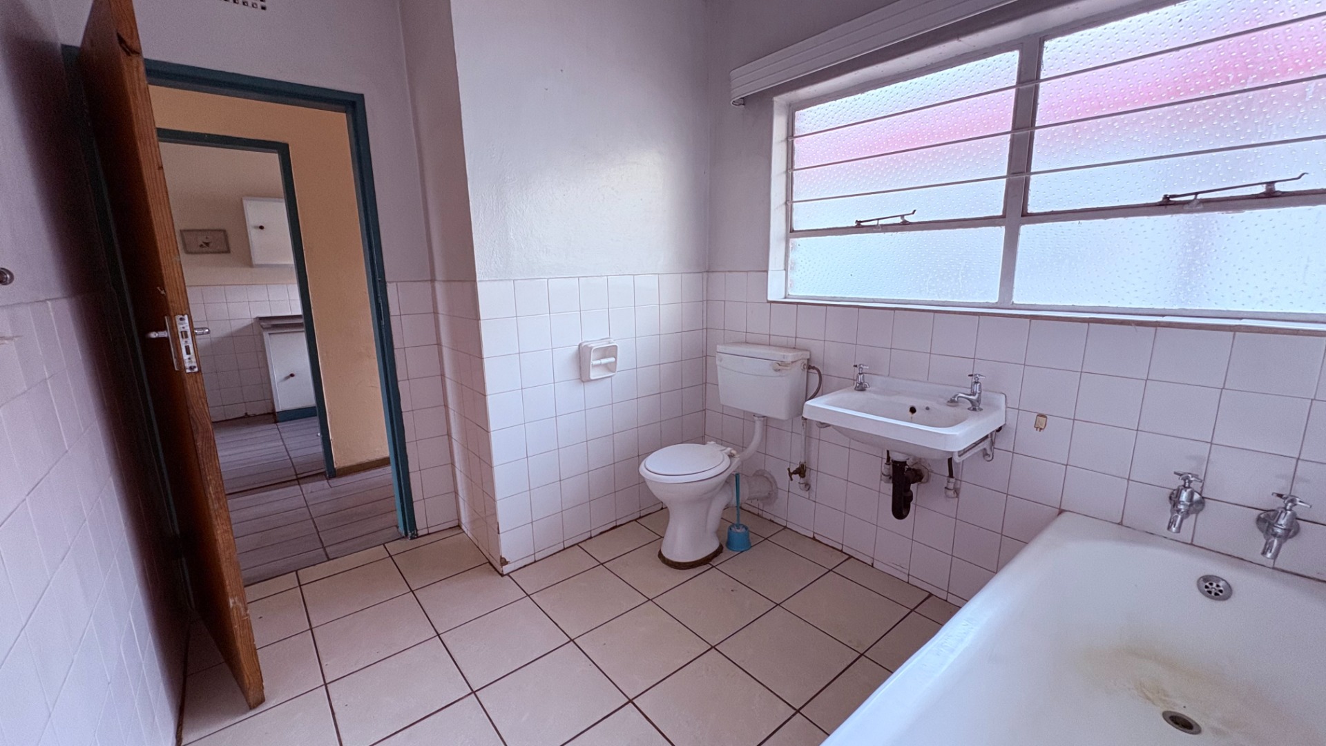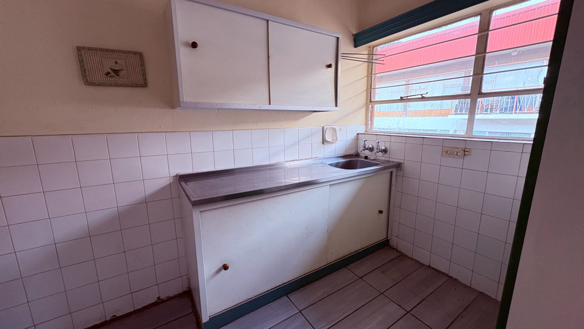 This two-bedroom, one-bathroom unit is situated in a suburban complex in Wentworth Park, Krugersdorp. The residence features a functional kitchen and a dedicated dining room, alongside a comfortable lounge area. While the kitchen and bathroom are currently dated, they offer a solid foundation for future modernization, presenting an excellent opportunity for renovation. The property includes one open parking space and benefits from security gates on entry doors and security bars on windows, enhancing peace of mind. This unit is ideal for those seeking to personalize their living space within a established community.