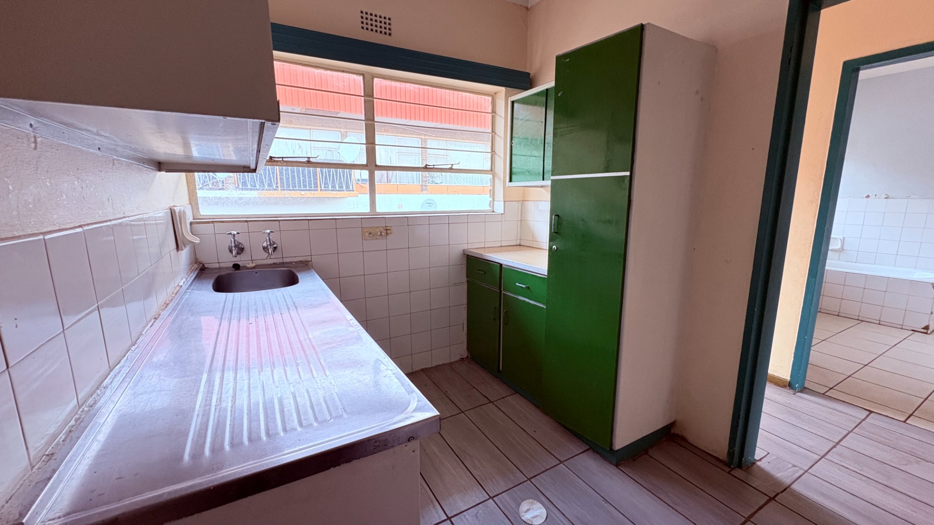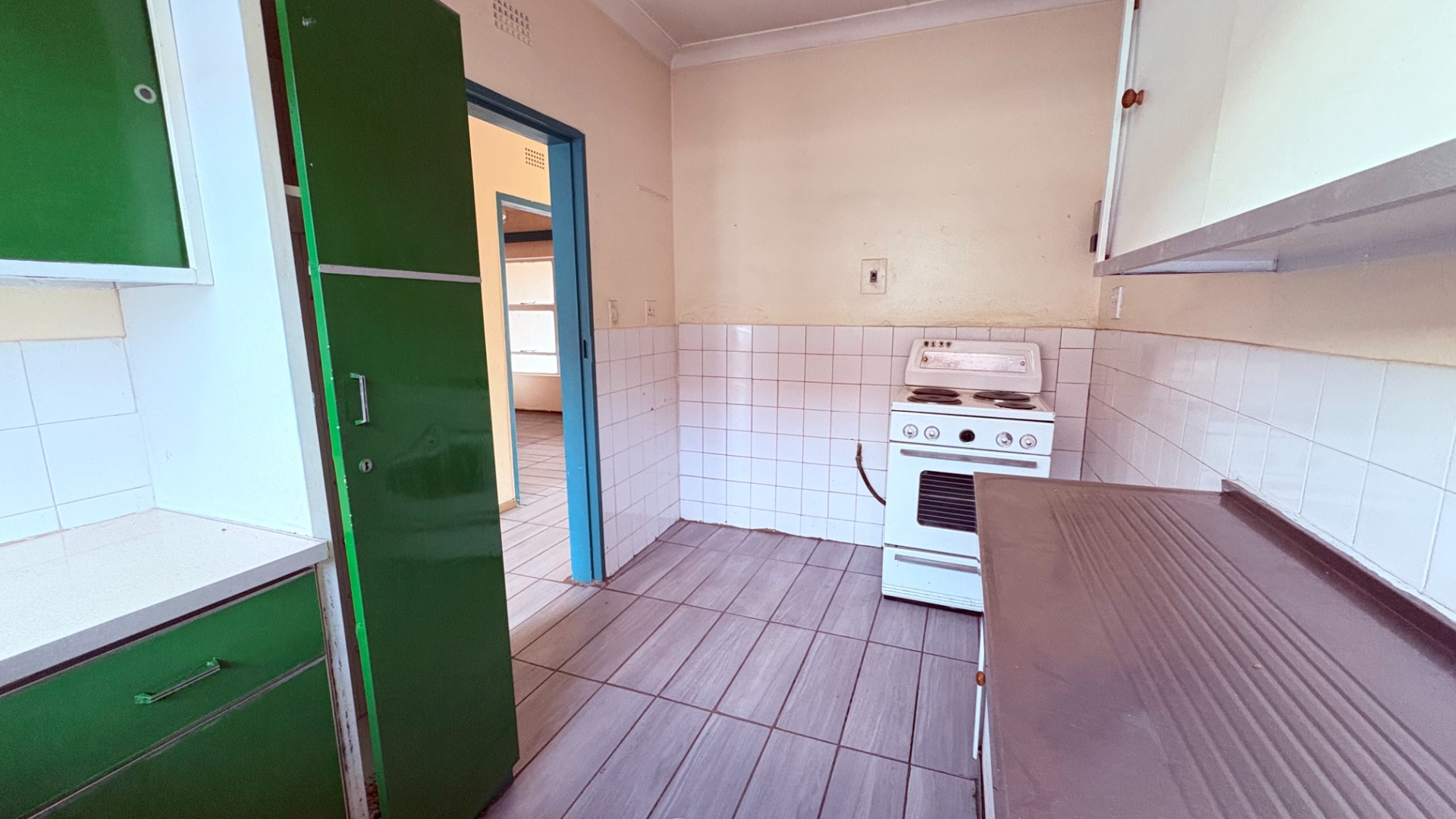 This two-bedroom, one-bathroom unit is situated in a suburban complex in Wentworth Park, Krugersdorp. The residence features a functional kitchen and a dedicated dining room, alongside a comfortable lounge area. While the kitchen and bathroom are currently dated, they offer a solid foundation for future modernization, presenting an excellent opportunity for renovation. The property includes one open parking space and benefits from security gates on entry doors and security bars on windows, enhancing peace of mind. This unit is ideal for those seeking to personalize their living space within a established community.