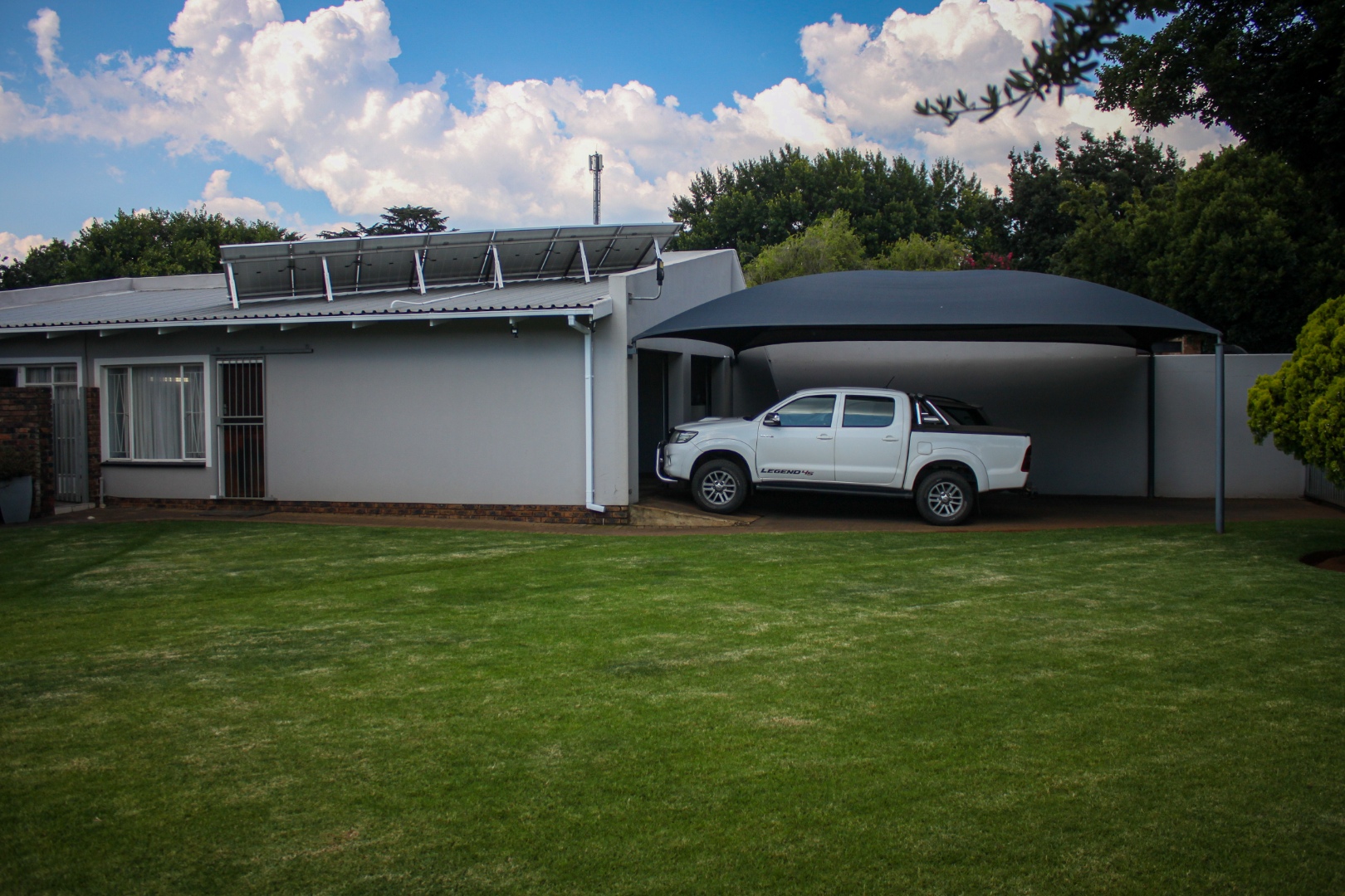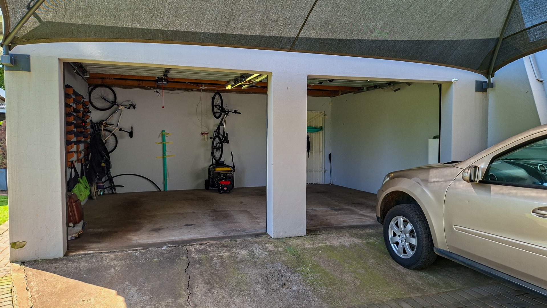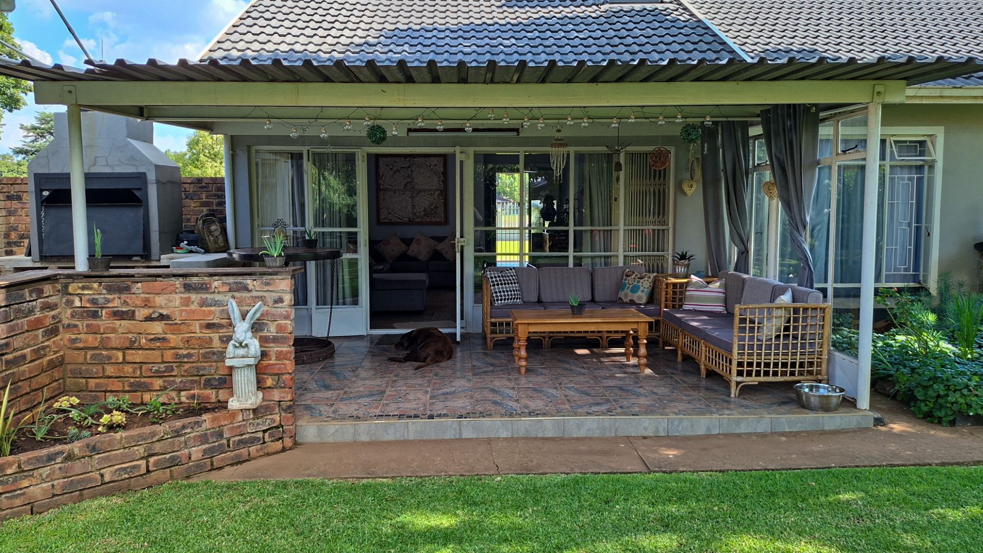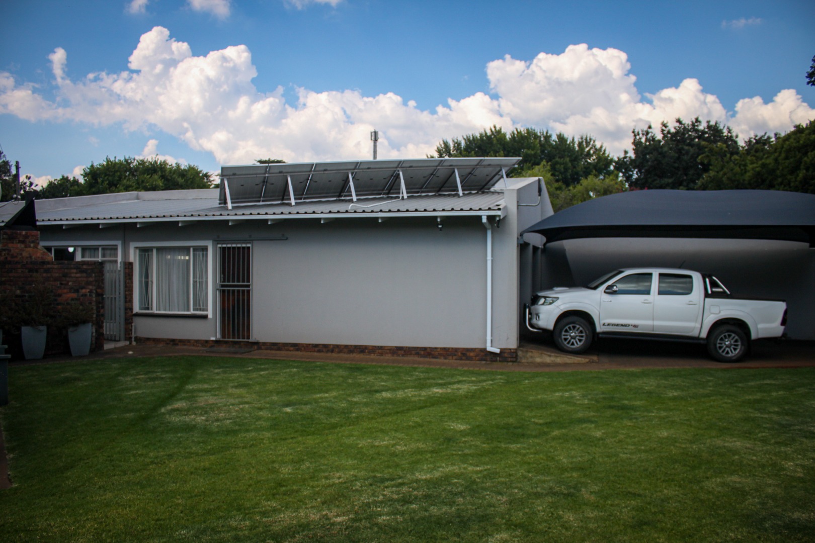 Emphasising modern living and sustainability, the residence is equipped with solar panels and a battery inverter, significantly enhancing energy efficiency and providing resilience against power interruptions. A borehole, irrigation system, and sprinkler system ensure the lush garden remains vibrant with minimal effort. Security is paramount, with an alarm system and a totally walled perimeter providing peace of mind. Fibre connectivity is also available, catering to contemporary digital demands.