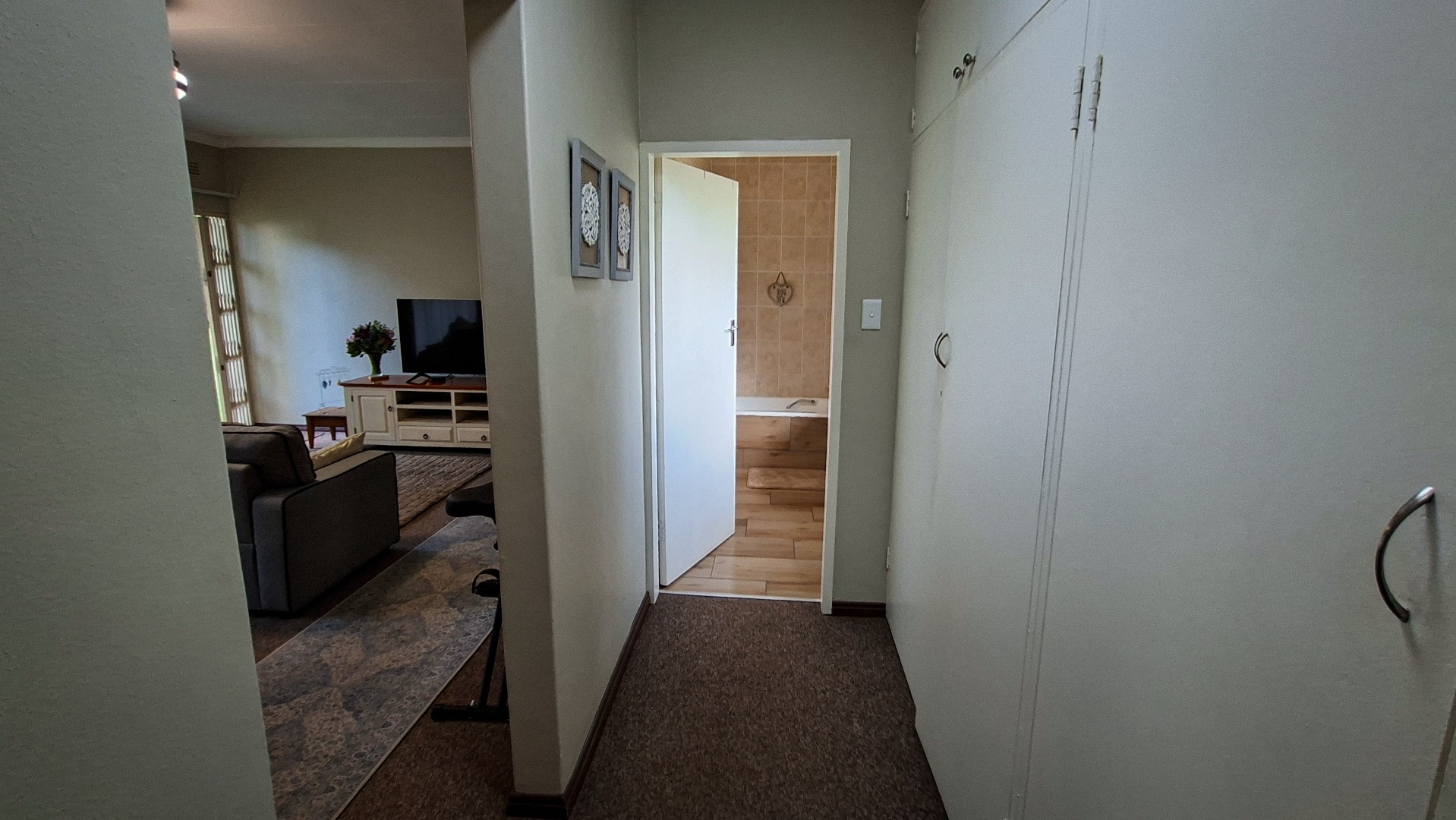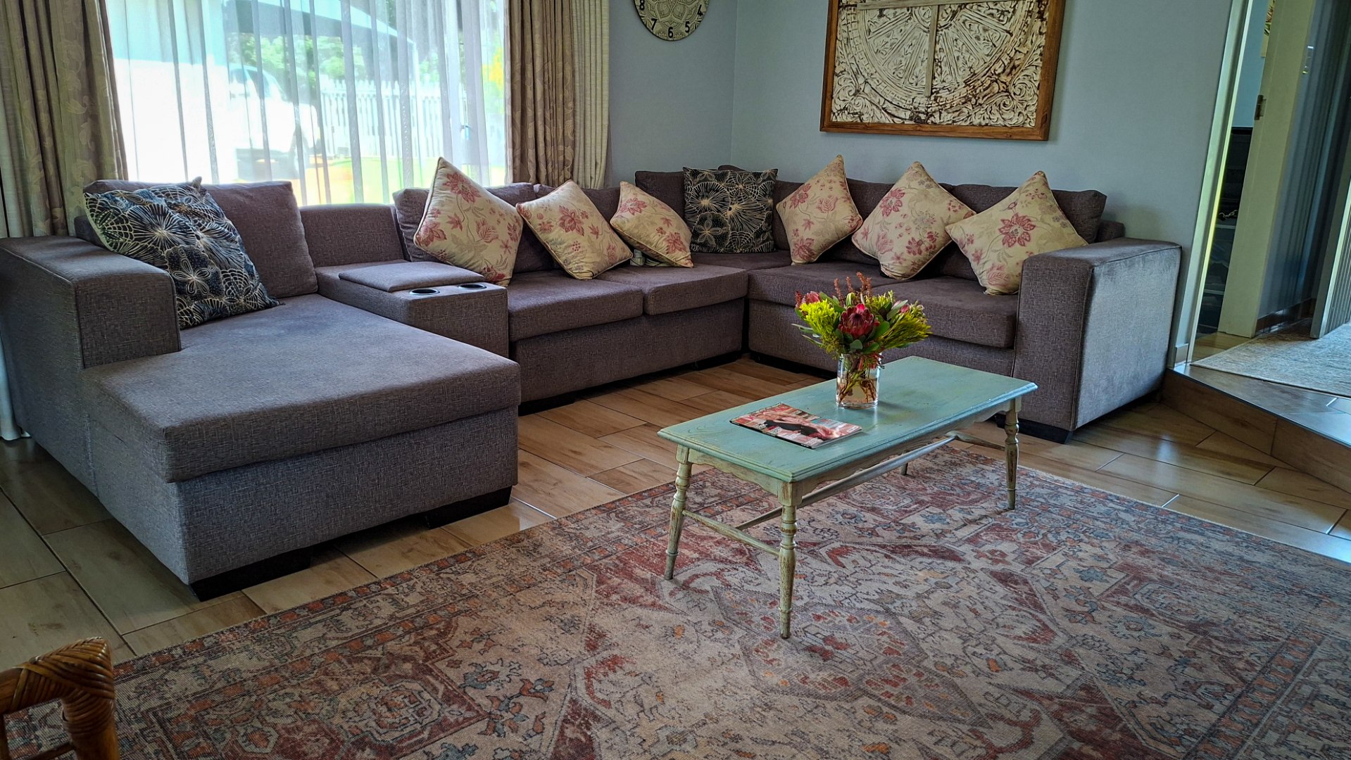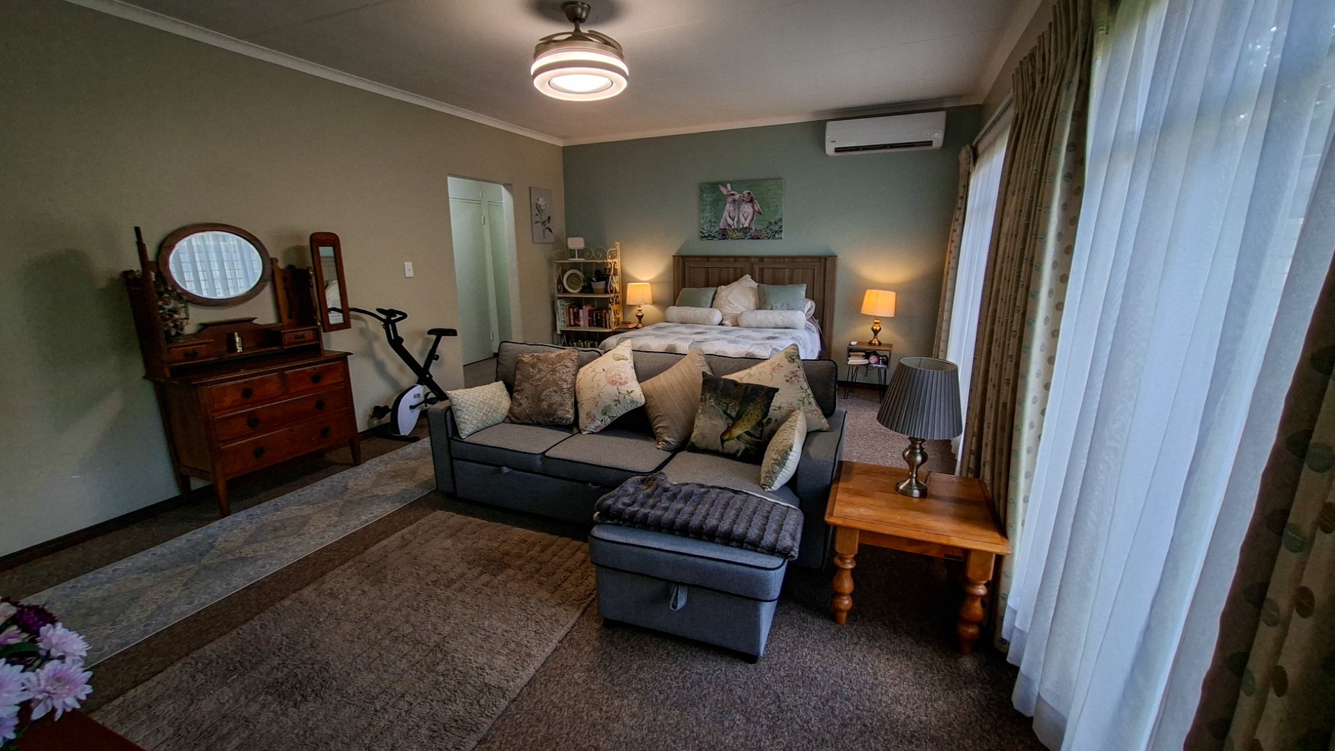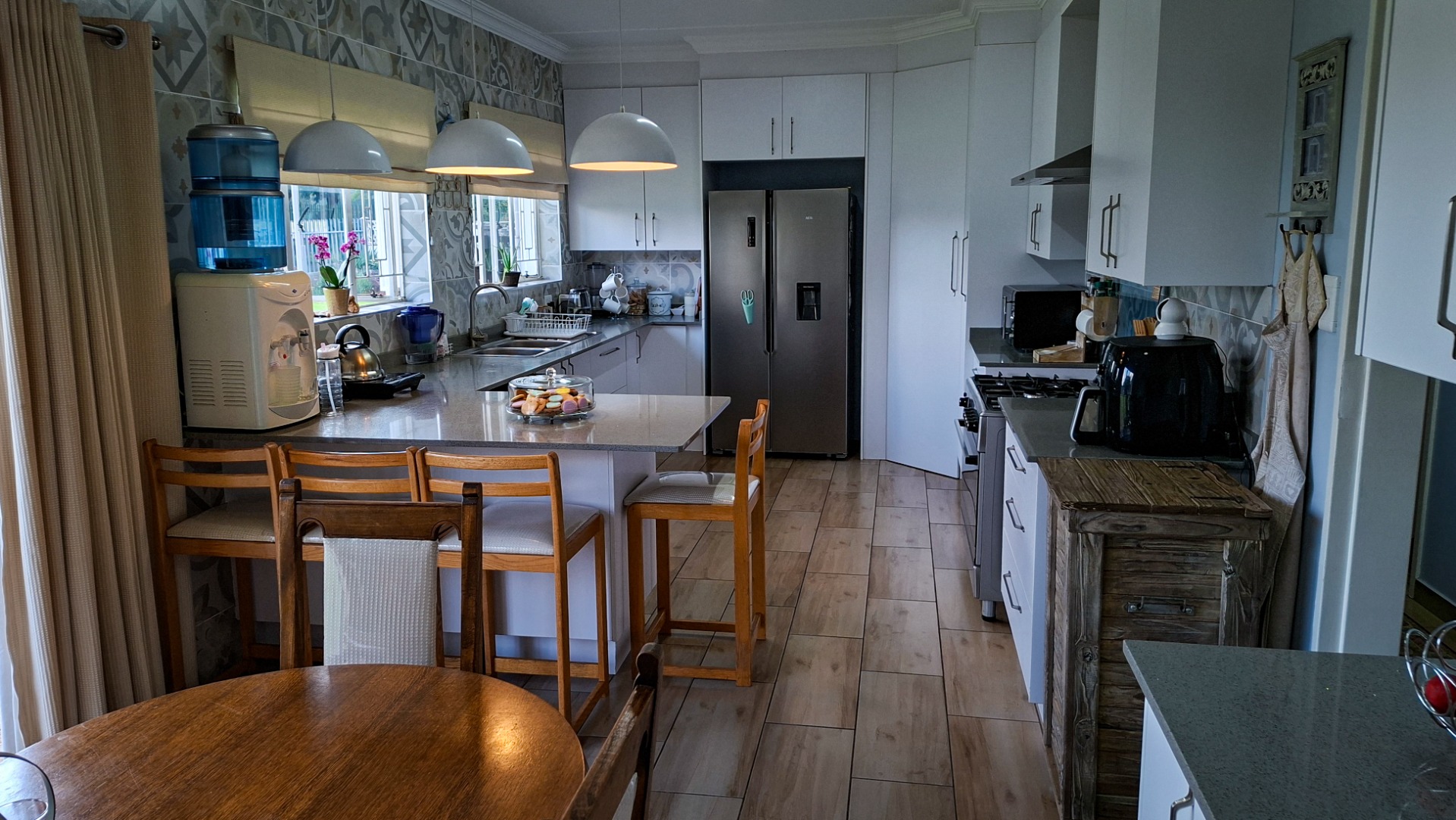 Emphasising modern living and sustainability, the residence is equipped with solar panels and a battery inverter, significantly enhancing energy efficiency and providing resilience against power interruptions. A borehole, irrigation system, and sprinkler system ensure the lush garden remains vibrant with minimal effort. Security is paramount, with an alarm system and a totally walled perimeter providing peace of mind. Fibre connectivity is also available, catering to contemporary digital demands.
