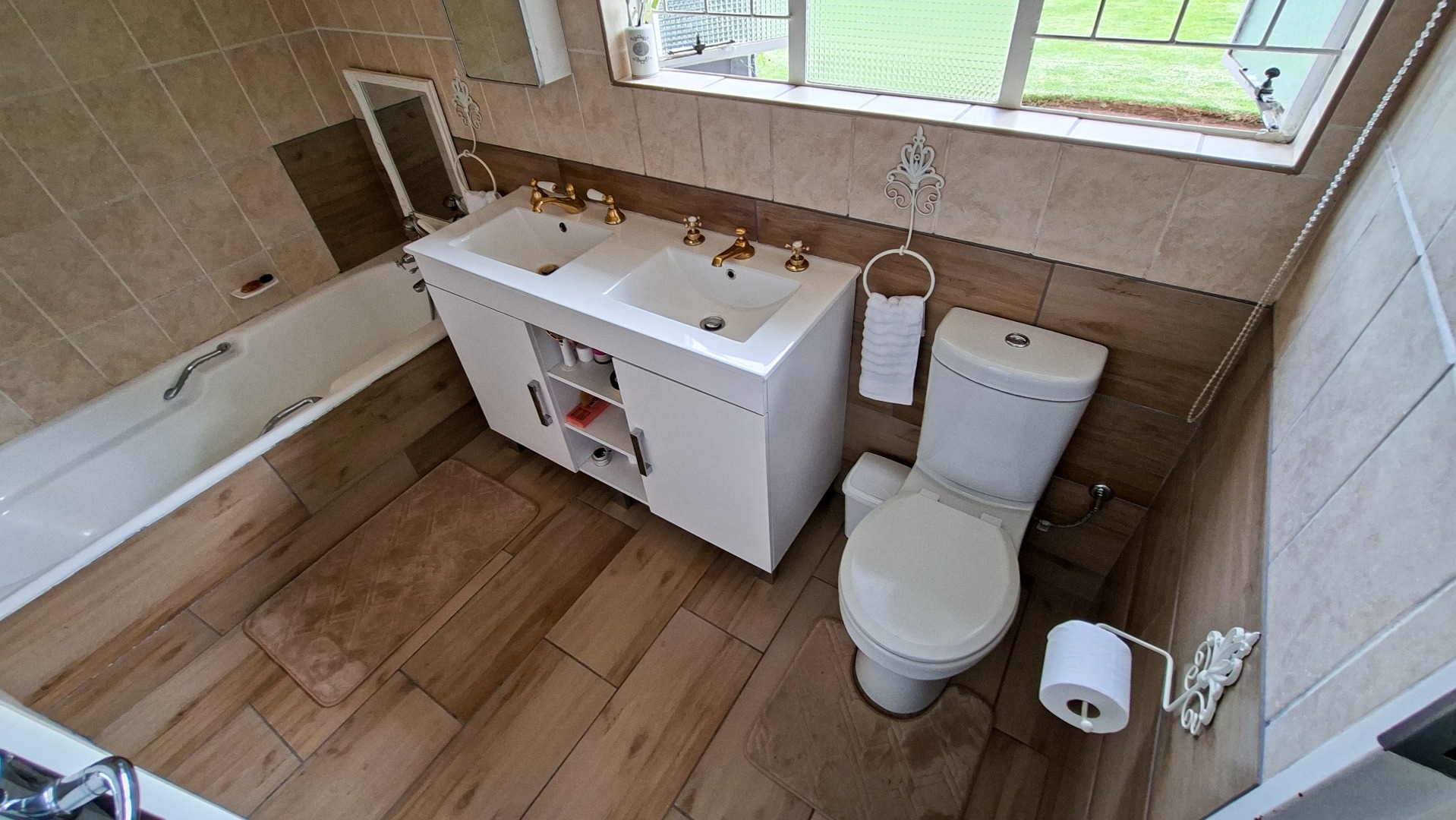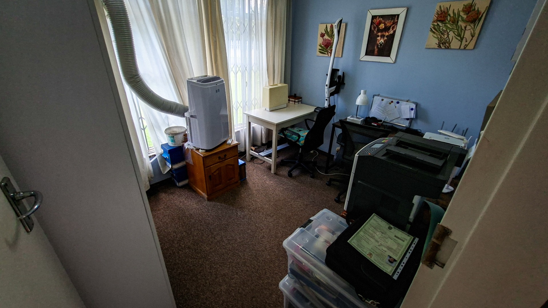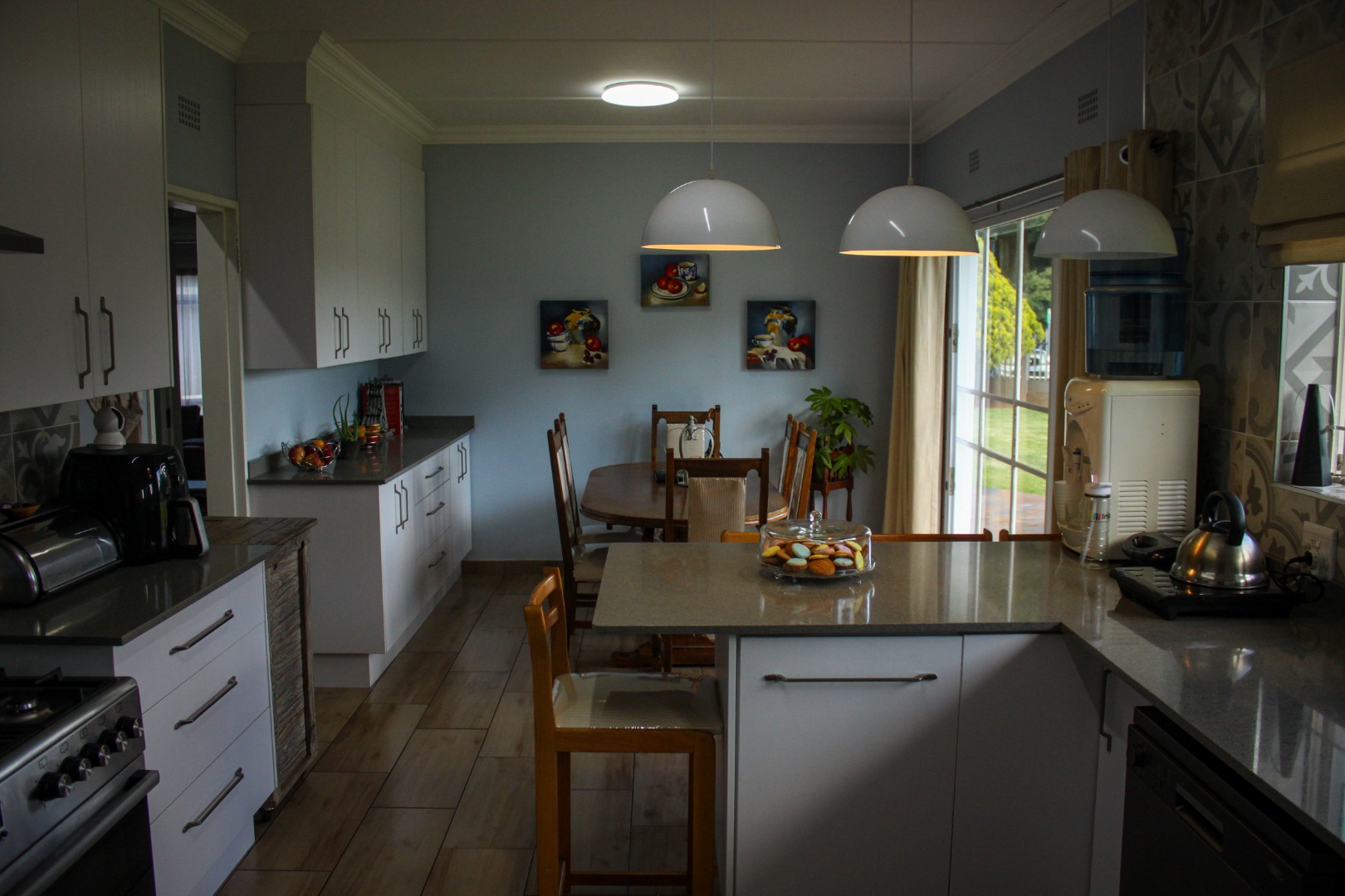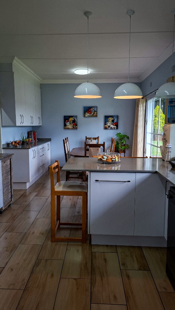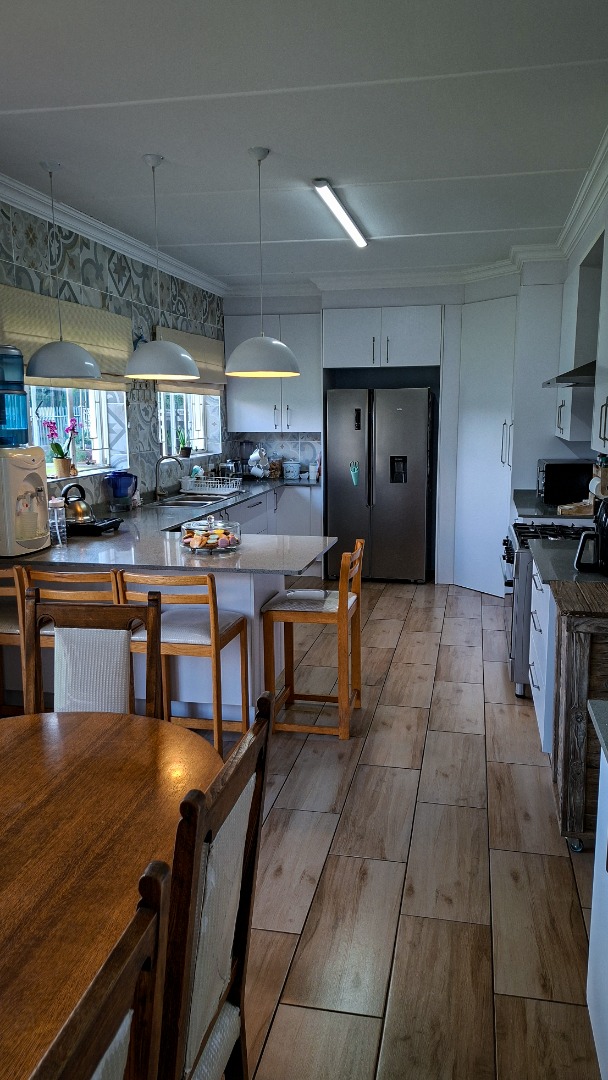 Emphasising modern living and sustainability, the residence is equipped with solar panels and a battery inverter, significantly enhancing energy efficiency and providing resilience against power interruptions. A borehole, irrigation system, and sprinkler system ensure the lush garden remains vibrant with minimal effort. Security is paramount, with an alarm system and a totally walled perimeter providing peace of mind. Fibre connectivity is also available, catering to contemporary digital demands.