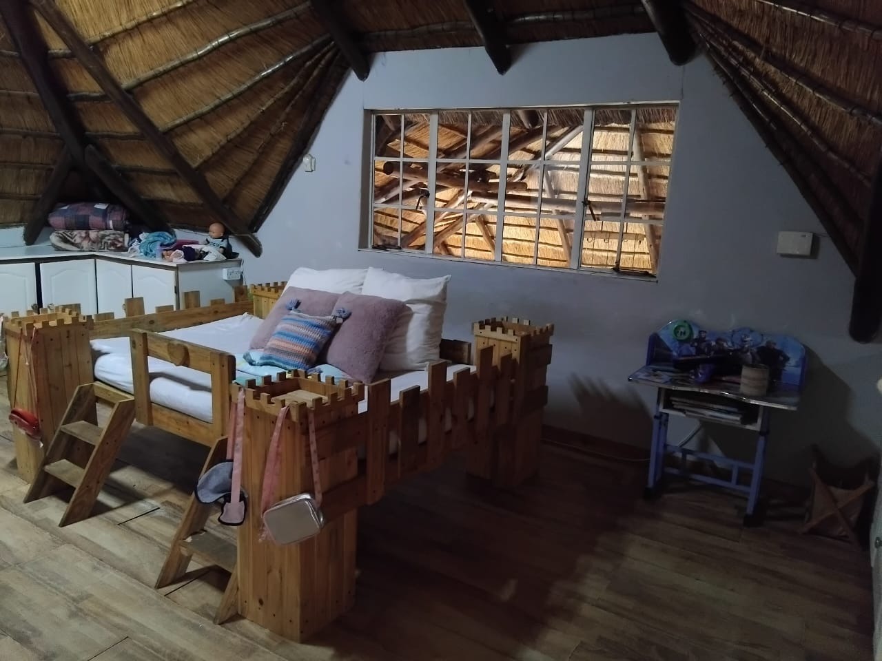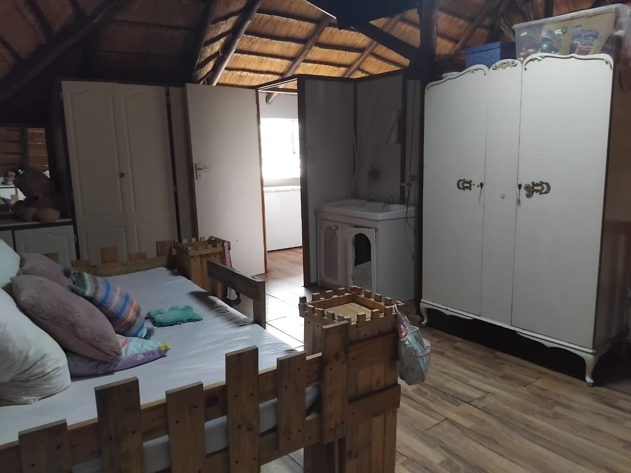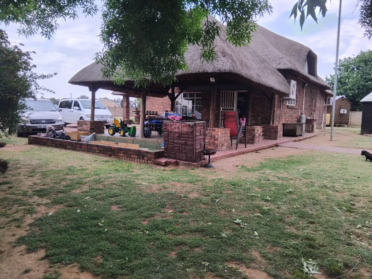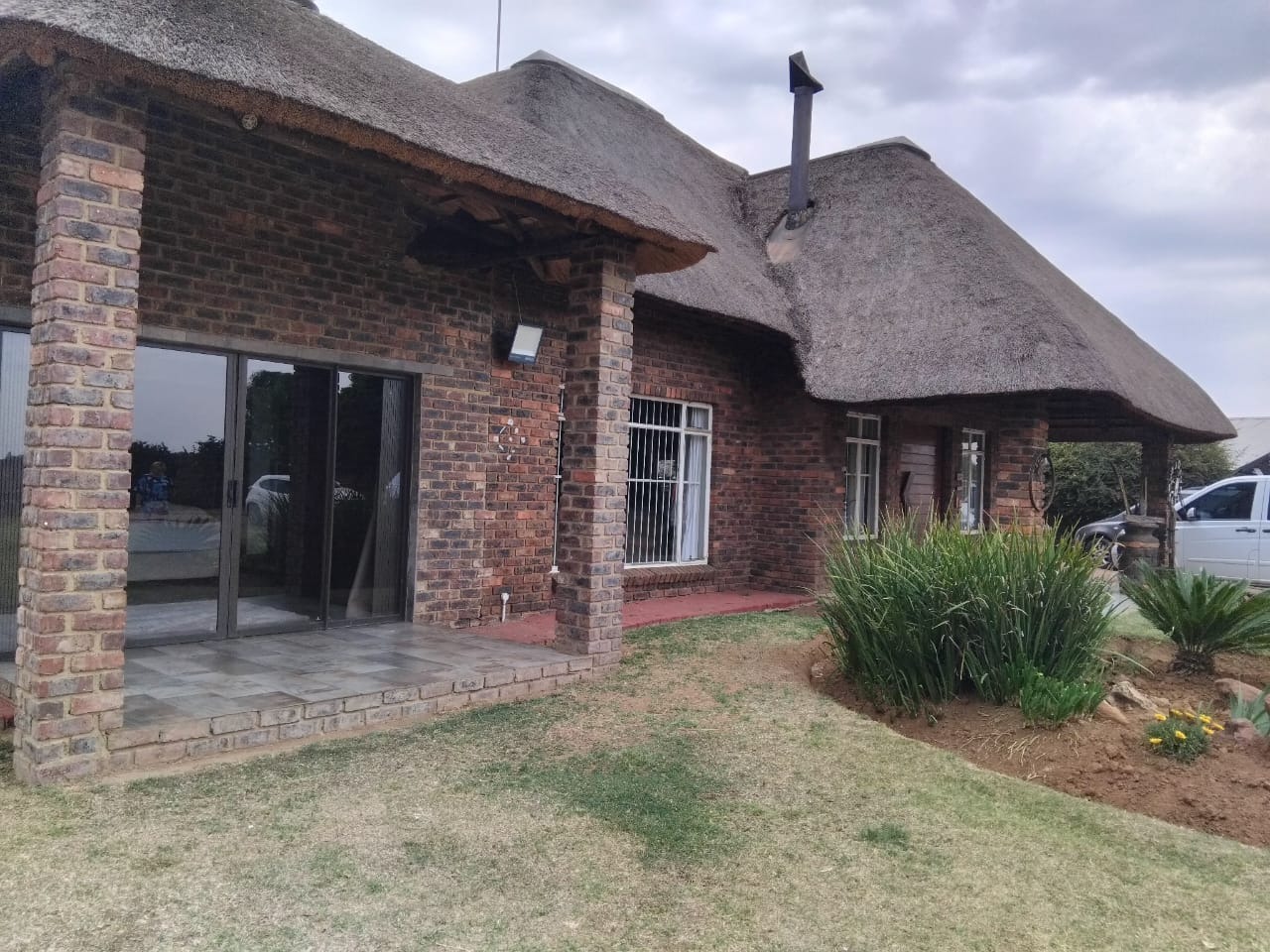 Come and discover this unique 2.142 ha property in Meyerton, offering a perfect blend of relaxed country living and smart investment potential. At its heart is the main house with 3 bedrooms and 2 bathrooms, including a spacious en-suite. The open-plan kitchen and living area flow effortlessly into the cozy lounge with a fireplace, perfect for cooler evenings. The thatched roof and durable face-brick exterior give the home real character, complemented by a well-kept garden, sliding doors, and a sparkling swimming pool.