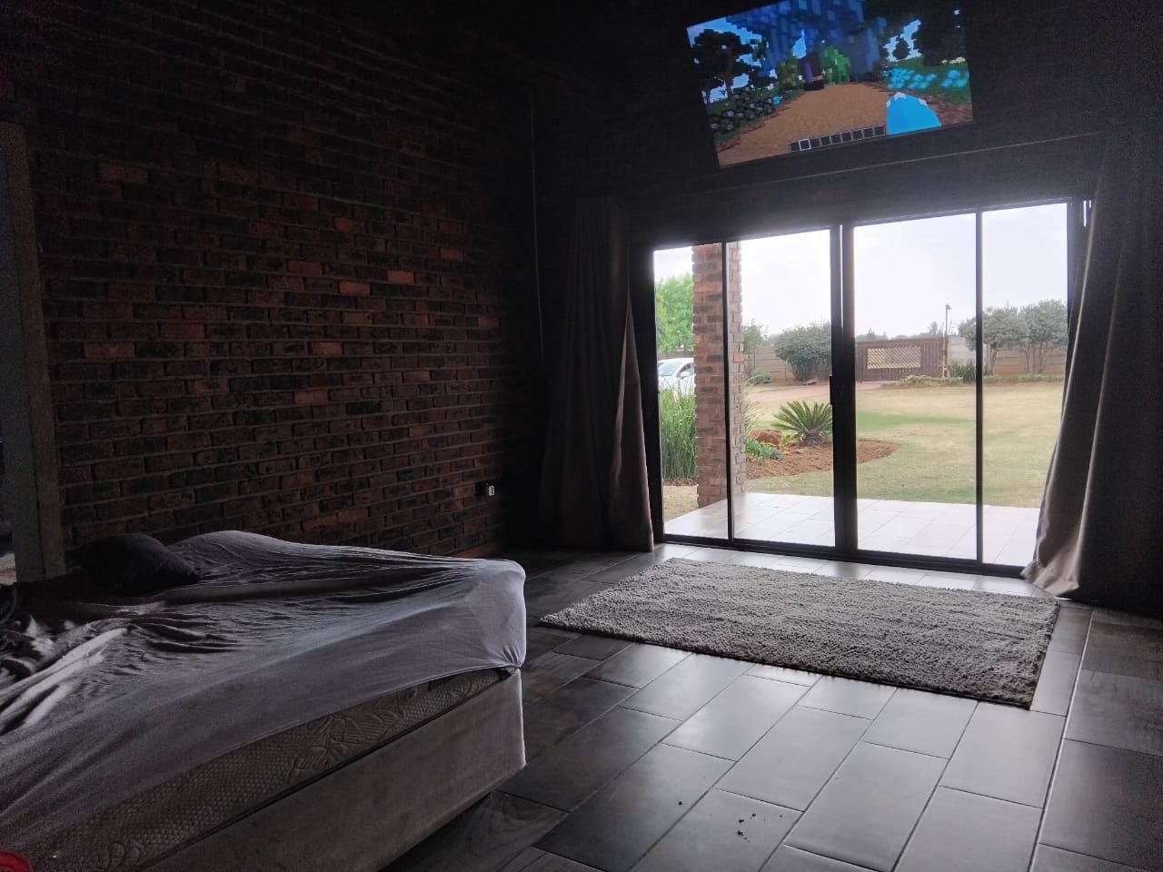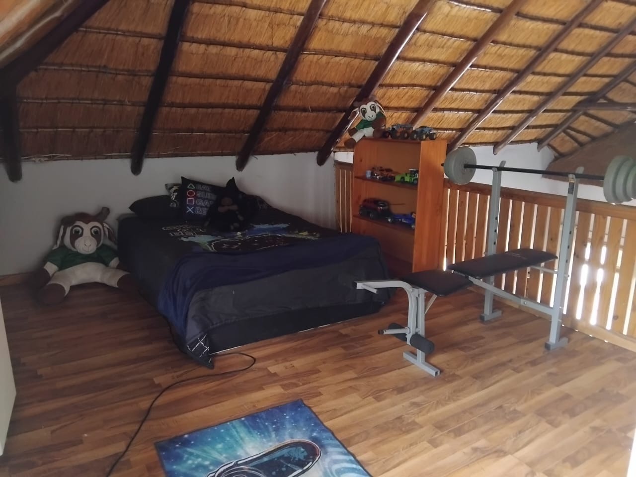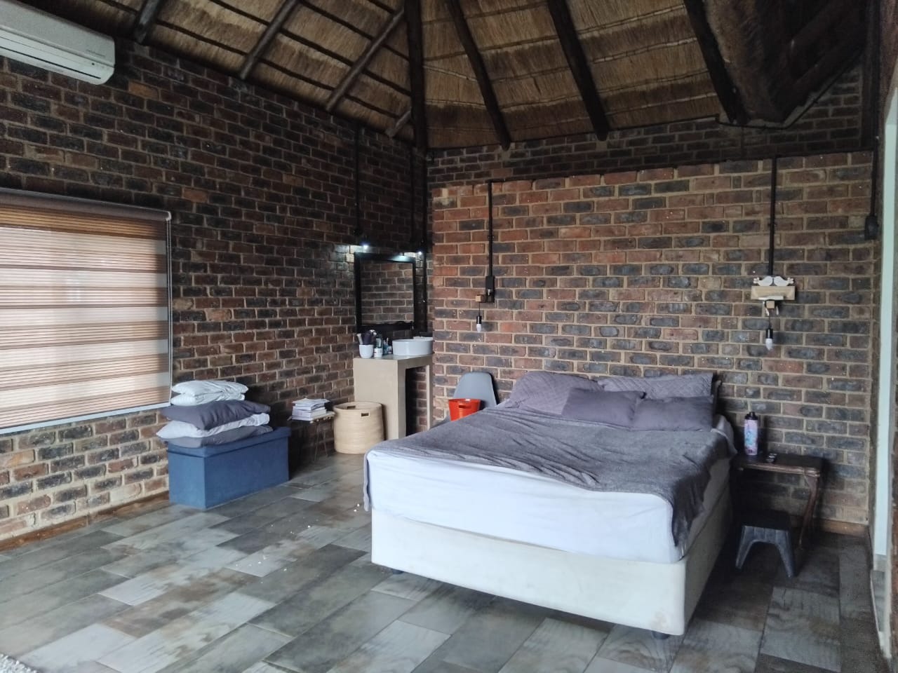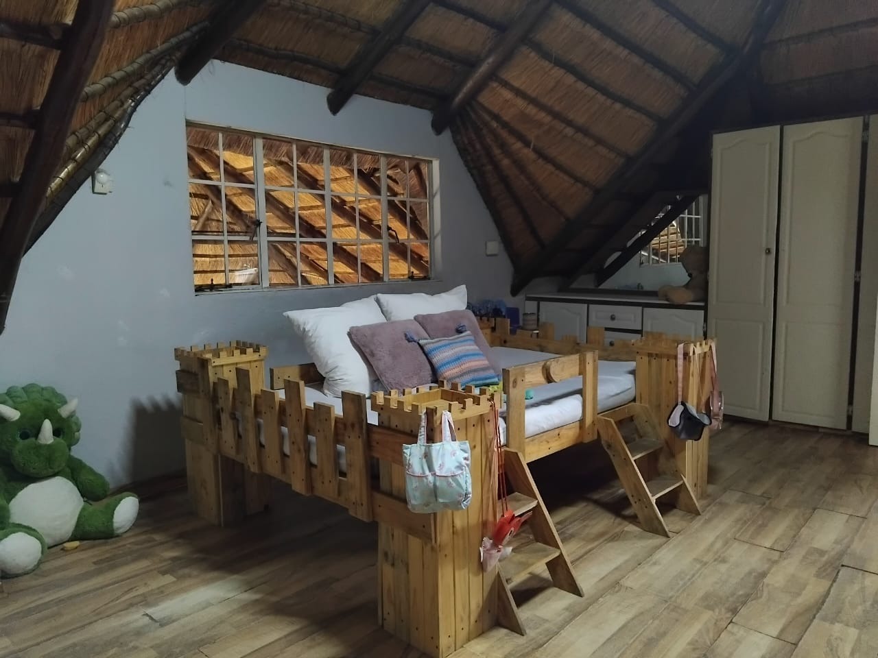 Come and discover this unique 2.142 ha property in Meyerton, offering a perfect blend of relaxed country living and smart investment potential. At its heart is the main house with 3 bedrooms and 2 bathrooms, including a spacious en-suite. The open-plan kitchen and living area flow effortlessly into the cozy lounge with a fireplace, perfect for cooler evenings. The thatched roof and durable face-brick exterior give the home real character, complemented by a well-kept garden, sliding doors, and a sparkling swimming pool.