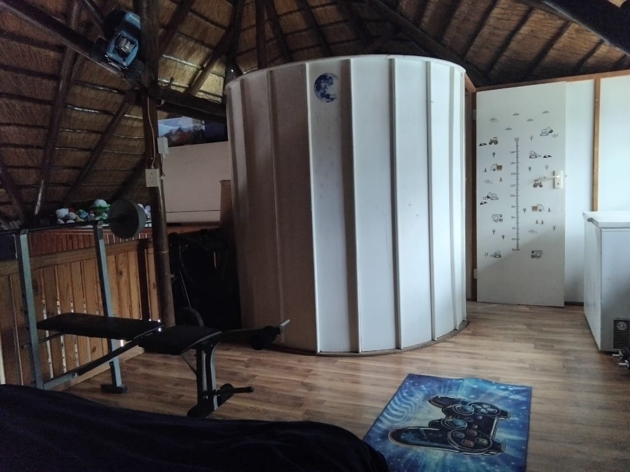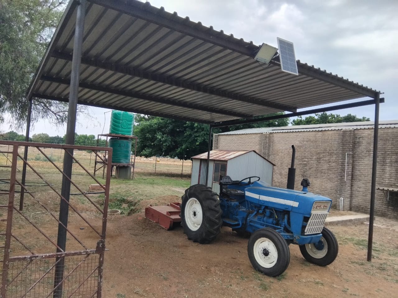 Main House: 3 bedrooms, 2 bathrooms, open-plan kitchen & living, fireplace, swimming pool, Eskom power, borehole, underground irrigation, 2 storage units (6x12 m), no garage