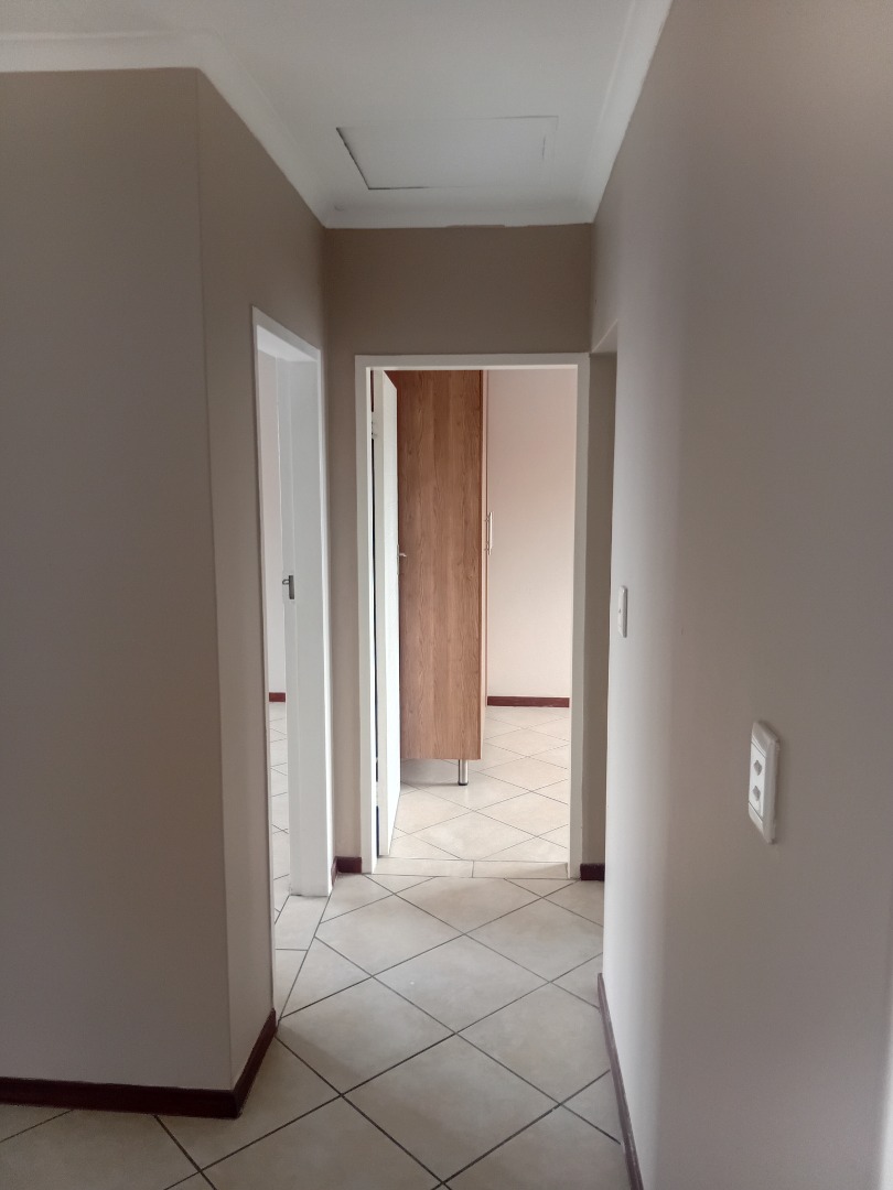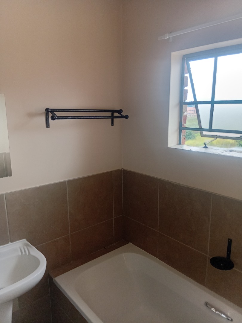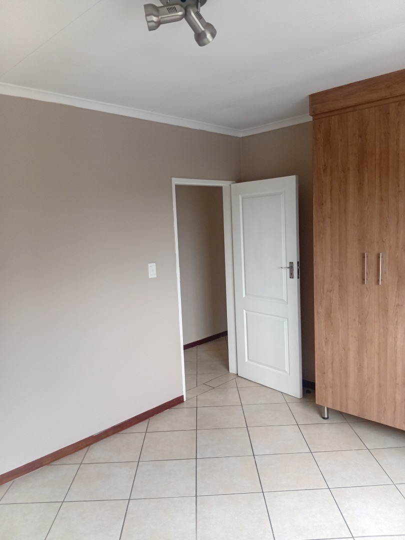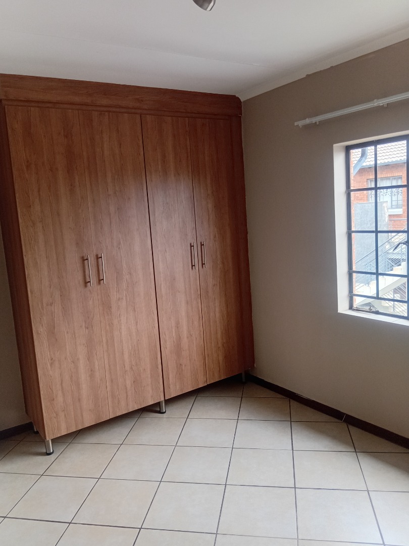 This meticulously appointed two-bedroom, one-bathroom residence, spanning 69 square metres, offers a contemporary living experience within a secure complex. The property presents a durable brick exterior with a modern wooden entry door, complemented by a tiled roof and a welcoming tiled porch featuring sturdy metal railings, contributing to its robust kerb appeal. Unit 212 is designed for functional elegance, providing a comfortable and secure environment. Upon entry, the interior reveals a thoughtfully designed layout featuring pristine tiled flooring throughout, ensuring both durability and ease of maintenance. The living spaces are adorned with neutral painted walls and crown molding, creating a sophisticated backdrop for personal customisation. The modern kitchen is a focal point, boasting ample light wood-grain cabinetry, dark granite countertops, and a tiled backsplash. It is equipped with an integrated electric hob and oven, facilitating a seamless culinary experience. The residence comprises two well-proportioned bedrooms, each offering a tranquil retreat with neutral wall colours and tiled floors. The single, well-appointed bathroom serves both bedrooms, maintaining the property's cohesive design aesthetic. Natural light permeates the living areas through well-placed windows, some fitted with security bars for enhanced peace of mind. Outdoor and lifestyle amenities include a communal swimming pool and a garden area, providing recreational opportunities within the complex. The property benefits from one dedicated parking bay, ensuring convenience for residents. Security is paramount, with the complex featuring an access gate and overall security measures typical of a modern residential development. Sagewood, situated in the vibrant city of Midrand, offers a strategic location with excellent connectivity to major business hubs and essential amenities. This area is renowned for its blend of residential tranquility and urban convenience, making it a desirable address for discerning individuals seeking a balanced lifestyle. Key Features: * Two Bedrooms, One Bathroom * 69 sqm Floor Size * Modern Kitchen with Granite Countertops * Integrated Electric Hob and Oven * Tiled Flooring Throughout * Communal Swimming Pool and Garden * One Dedicated Parking Bay * Secure Complex with Access Gate